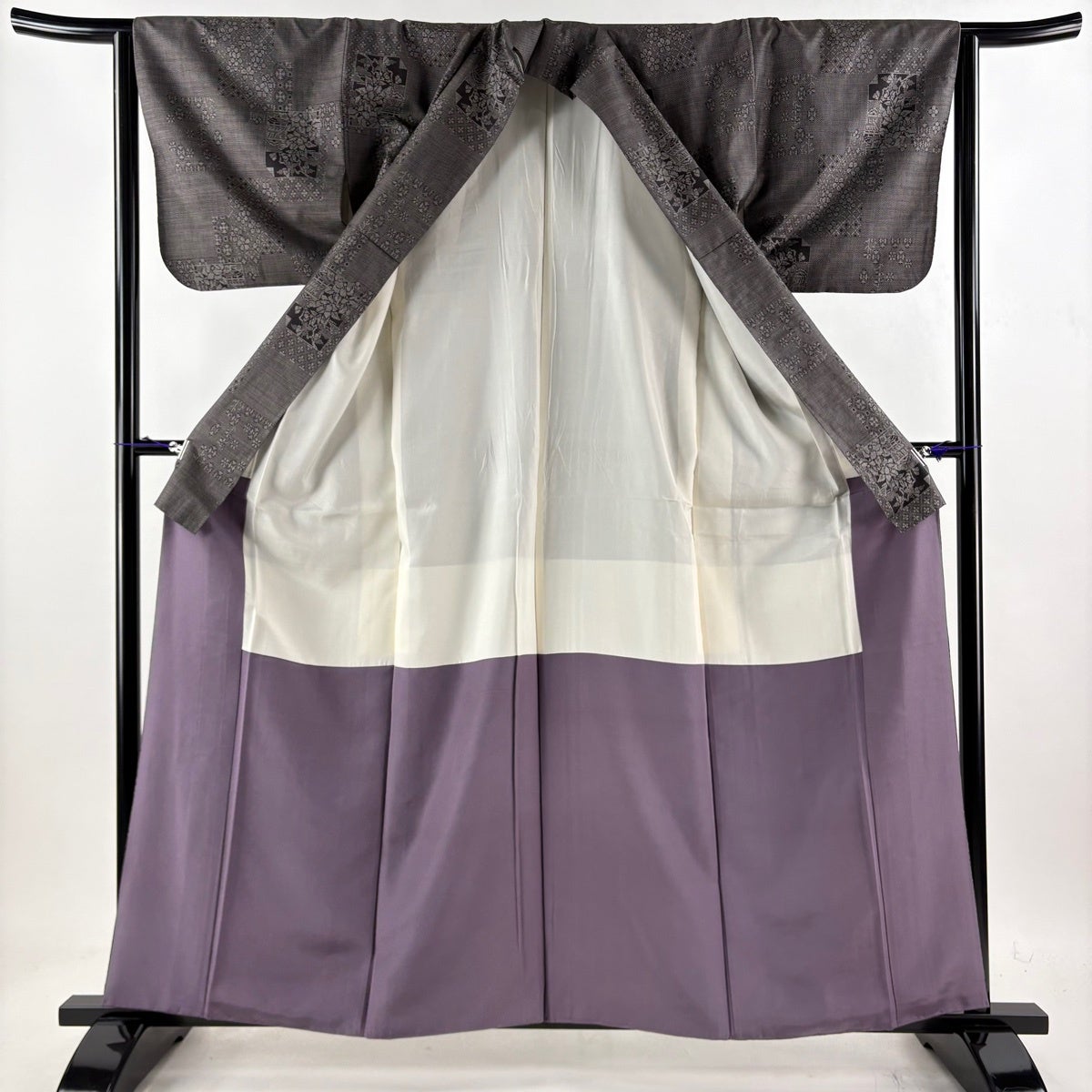紬 身丈157cm 裄丈64cm M 袷 華文 菱文 焦茶色 正絹 秀品