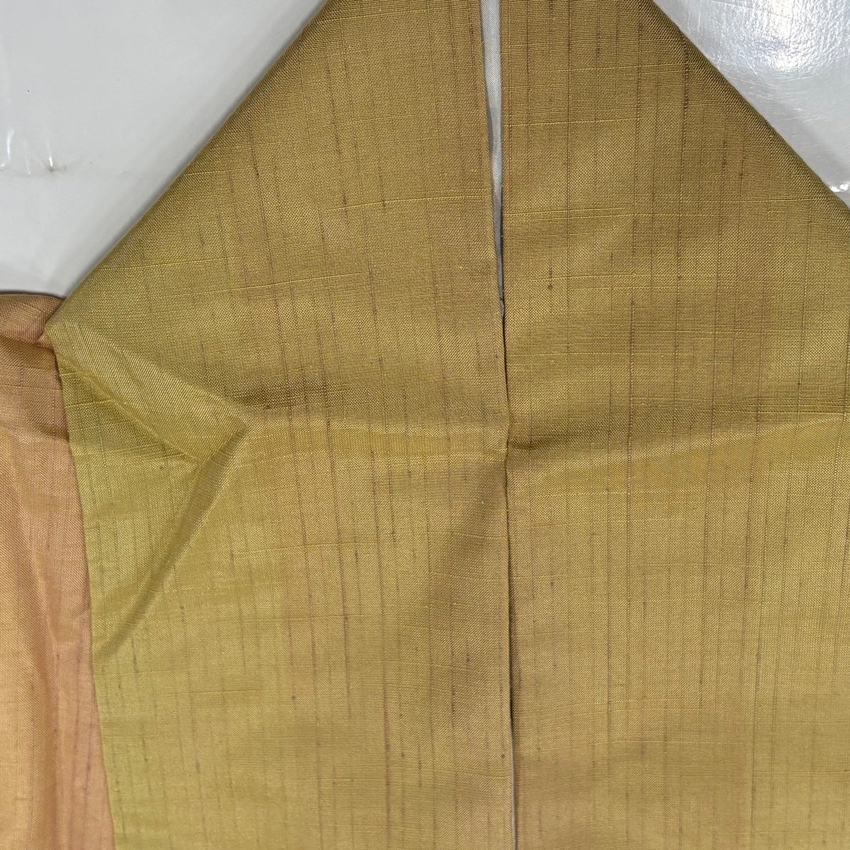 【美品】 紬 身丈166cm 裄丈67cm M 袷 横縞 薄黄 正絹 名品