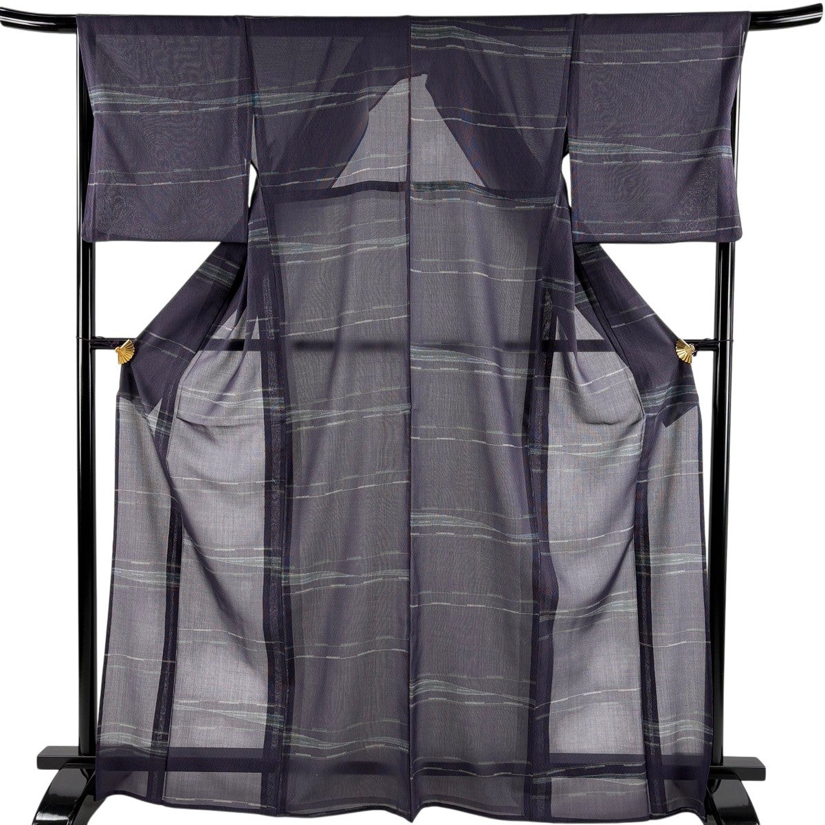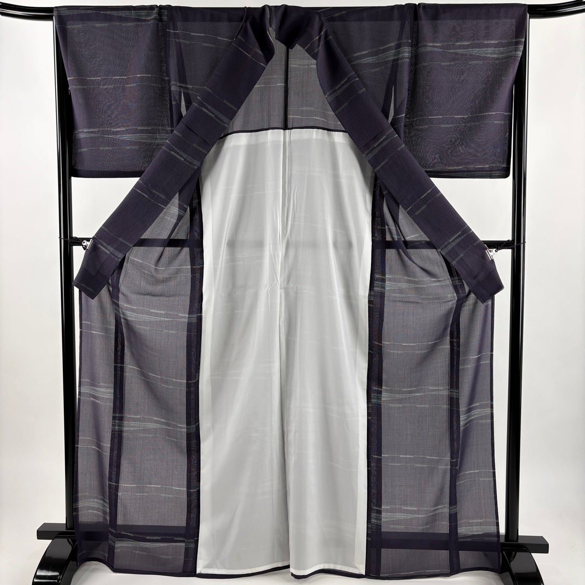 紬 身丈160cm 裄丈64.5cm M 袷 落款あり 濃紫 正絹 秀品