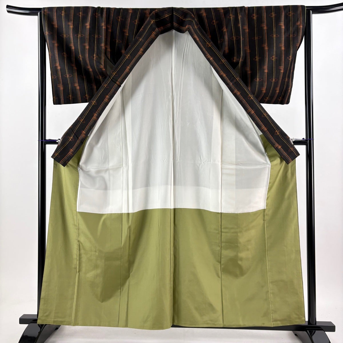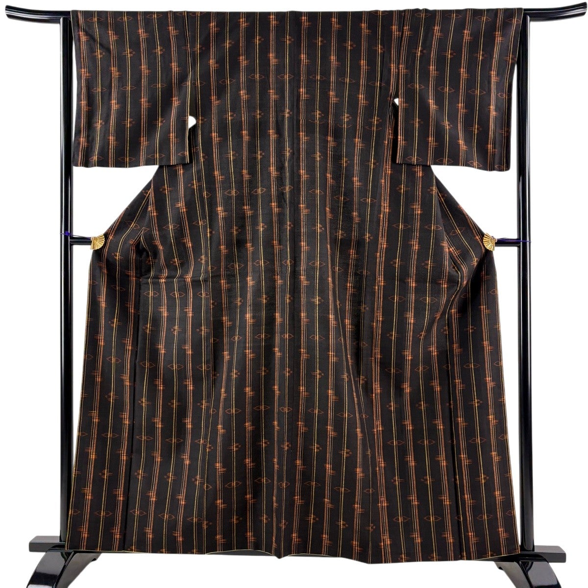 紬 身丈168.5cm 裄丈66cm M 袷 蔦 縦縞 焦茶色 正絹 秀品