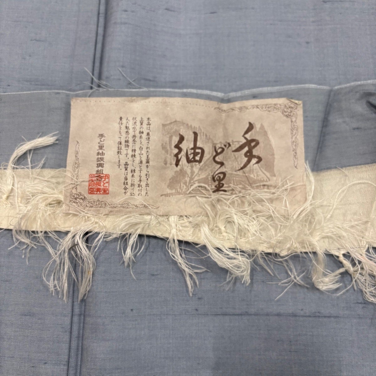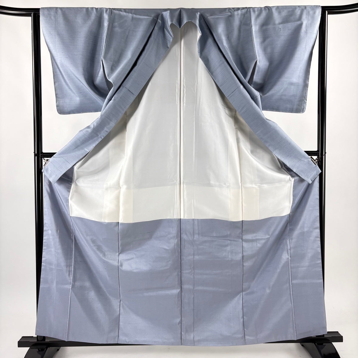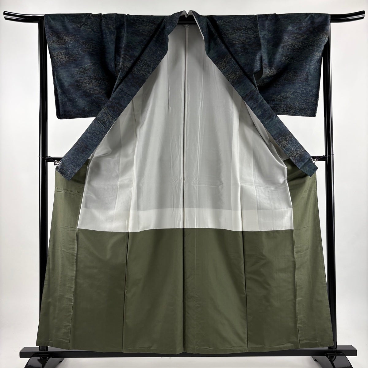 【美品】 紬 身丈159cm 裄丈65.5cm M 袷 霞 灰緑 正絹 秀品
