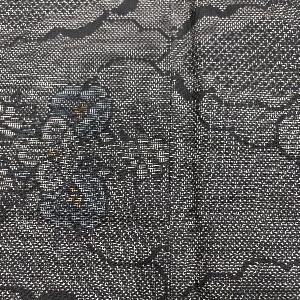 紬 身丈160cm 裄丈63.5cm S 袷 色紙 草花 黒灰 正絹 優品