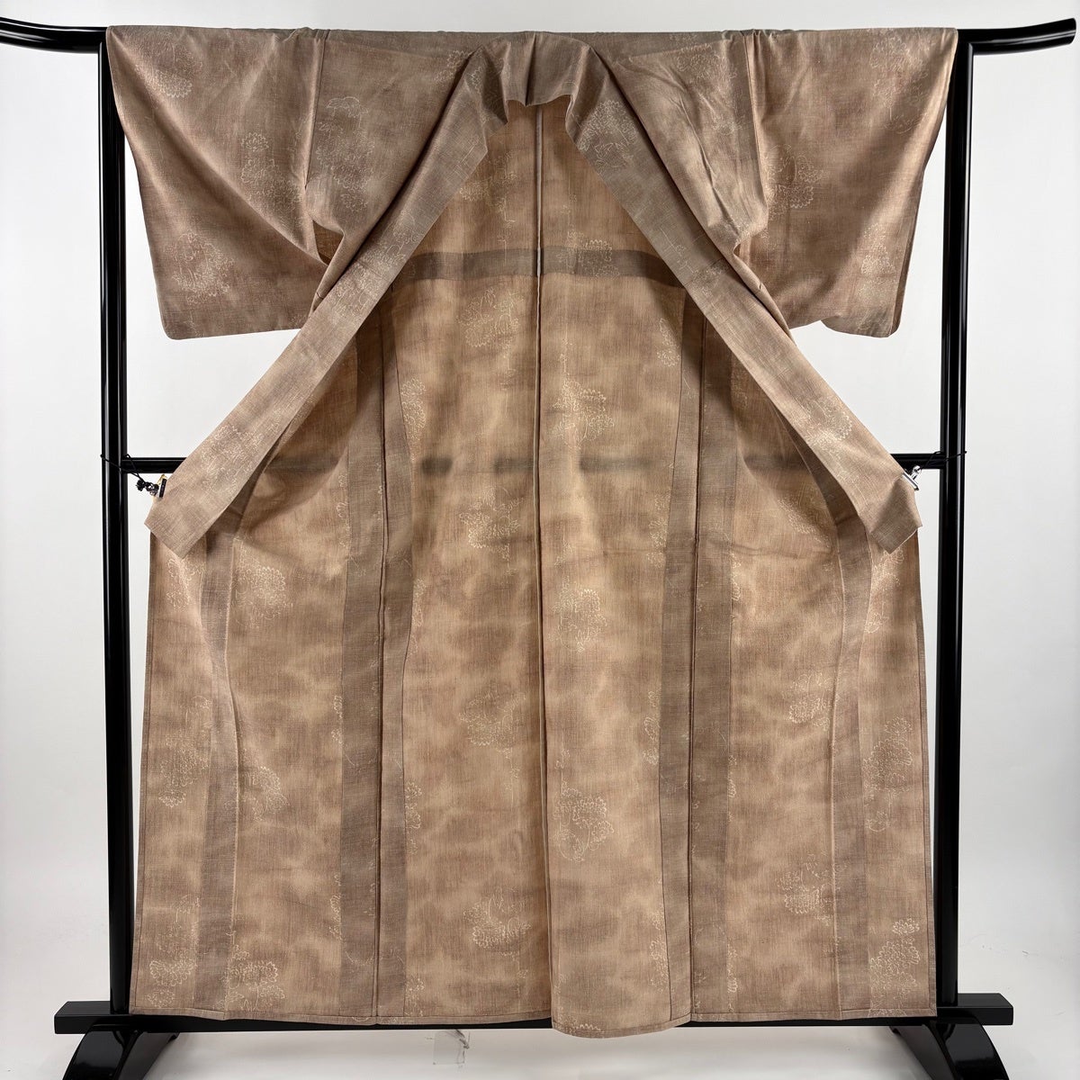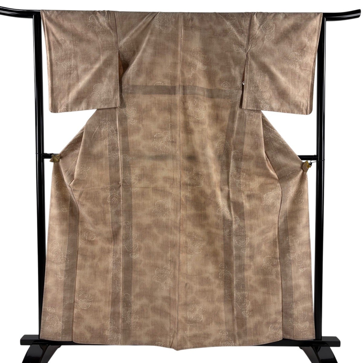 【美品】 紬 身丈159cm 裄丈66cm M 袷 唐草 雲 灰茶 正絹 秀品