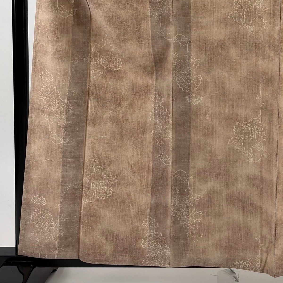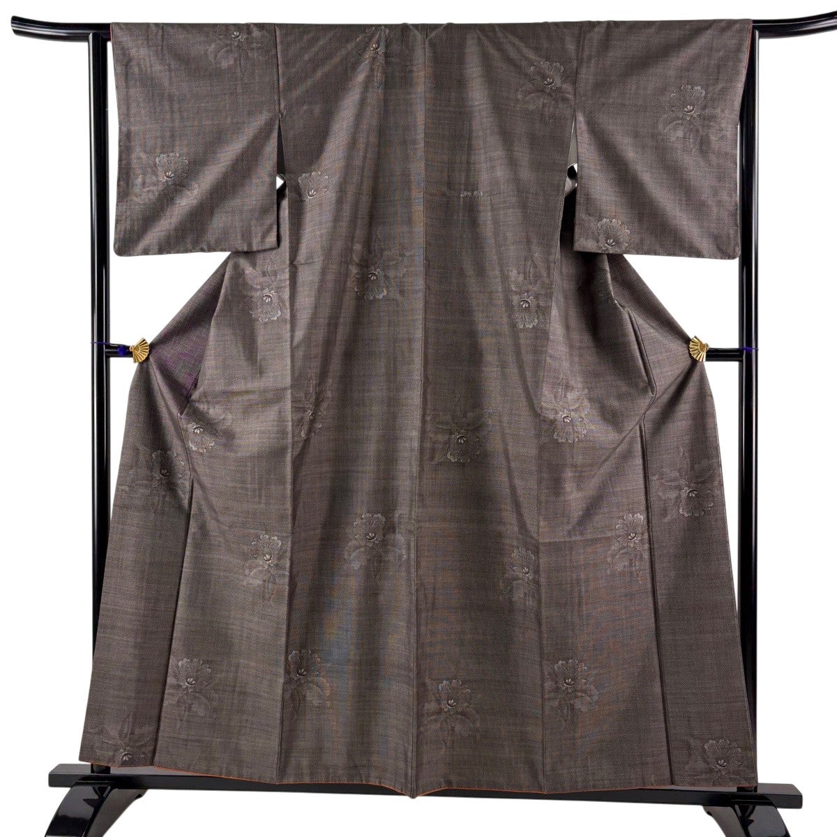 【美品】 紬 身丈155cm 裄丈65cm M 袷 草花 縞 焦茶色 正絹 秀品