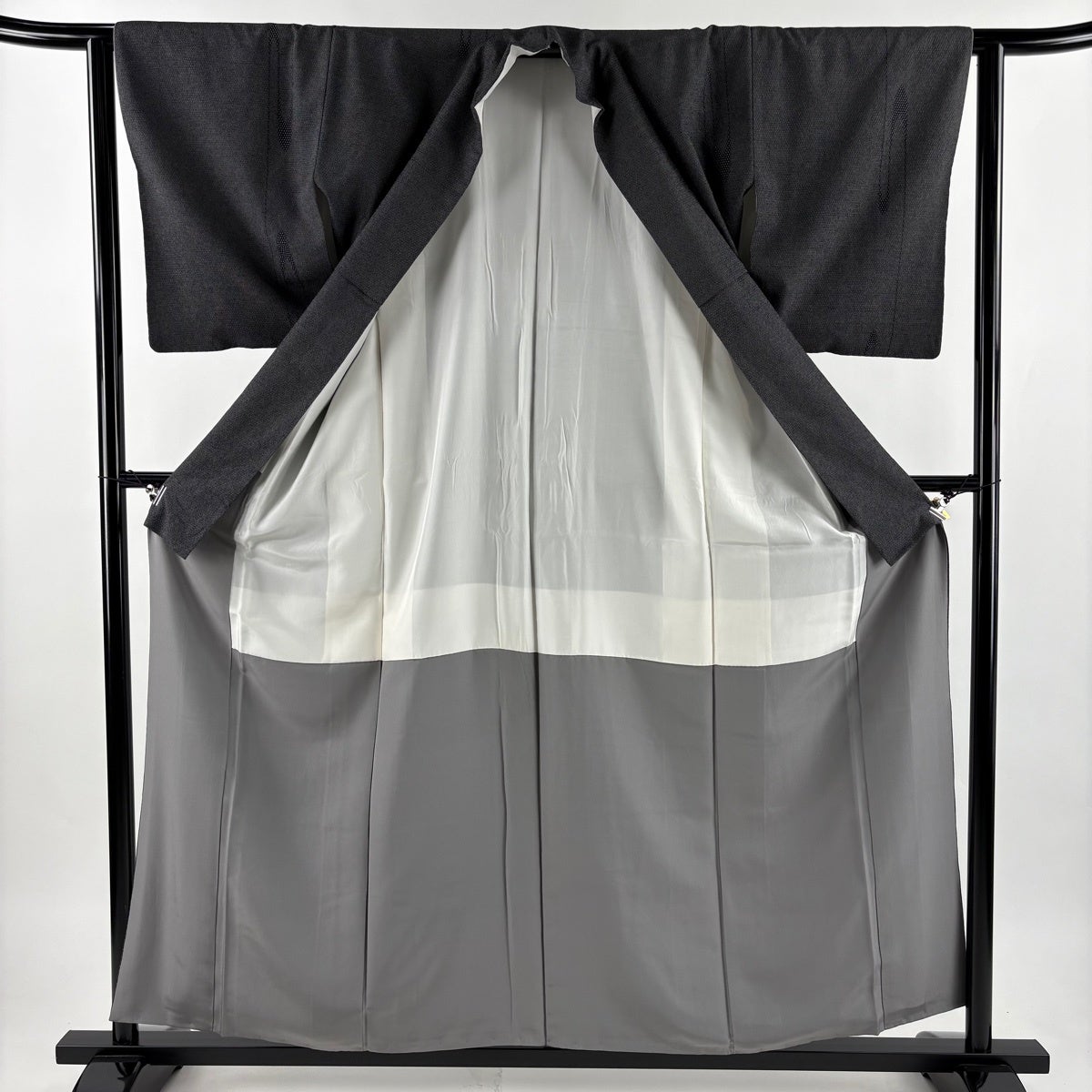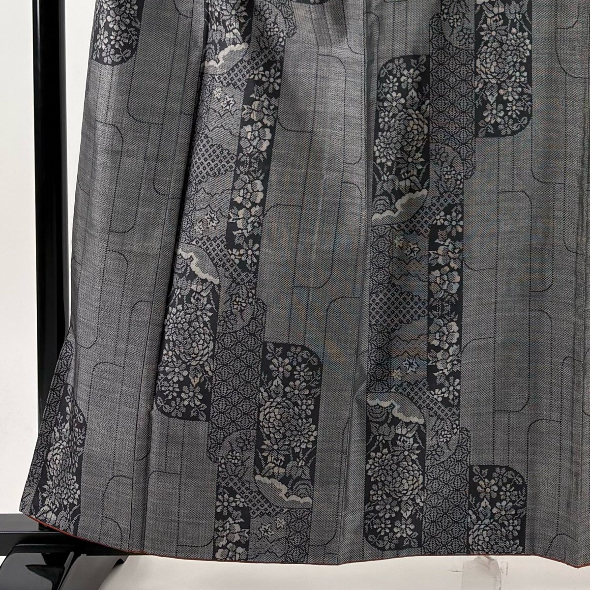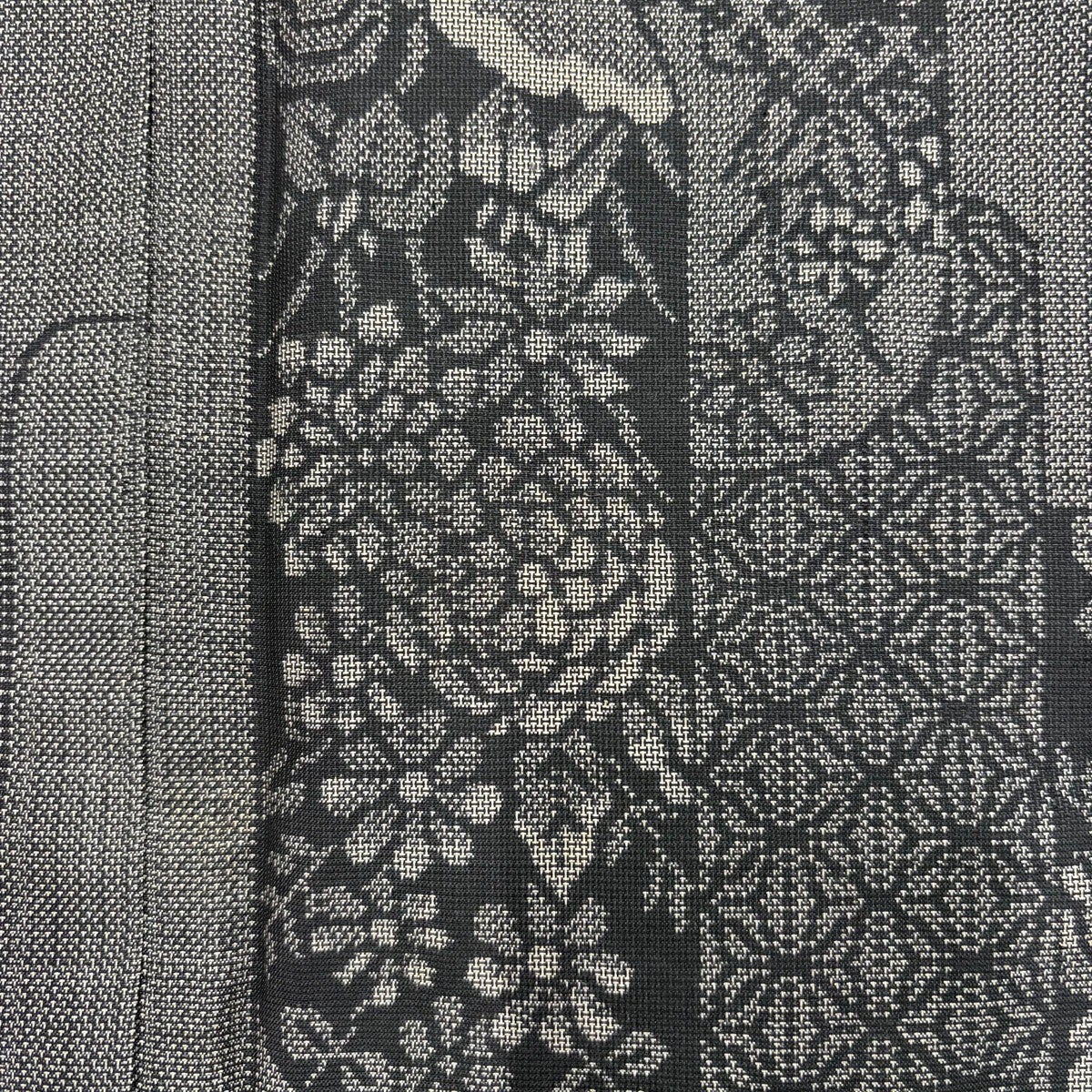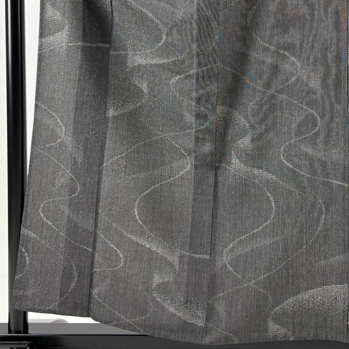 【美品】 紬 身丈156cm 裄丈62cm S 単衣 幾何学 灰色 正絹 秀品