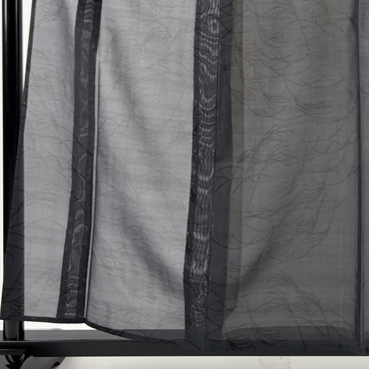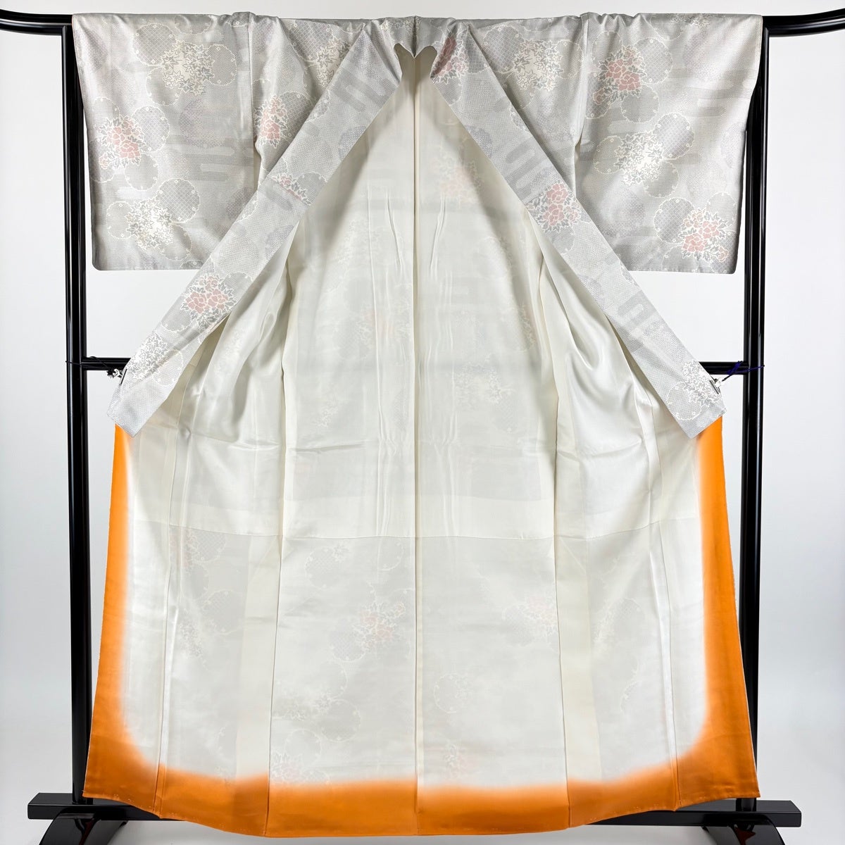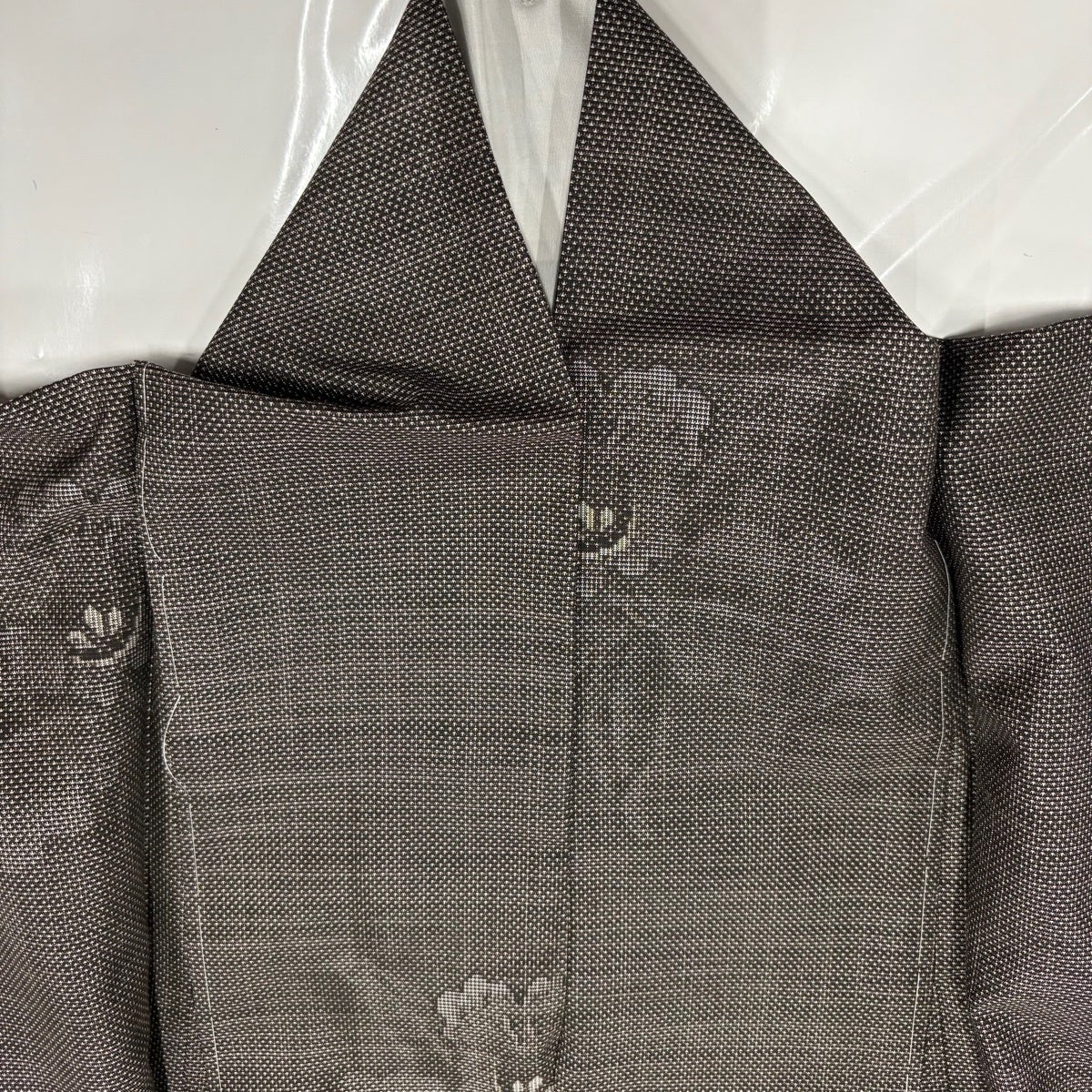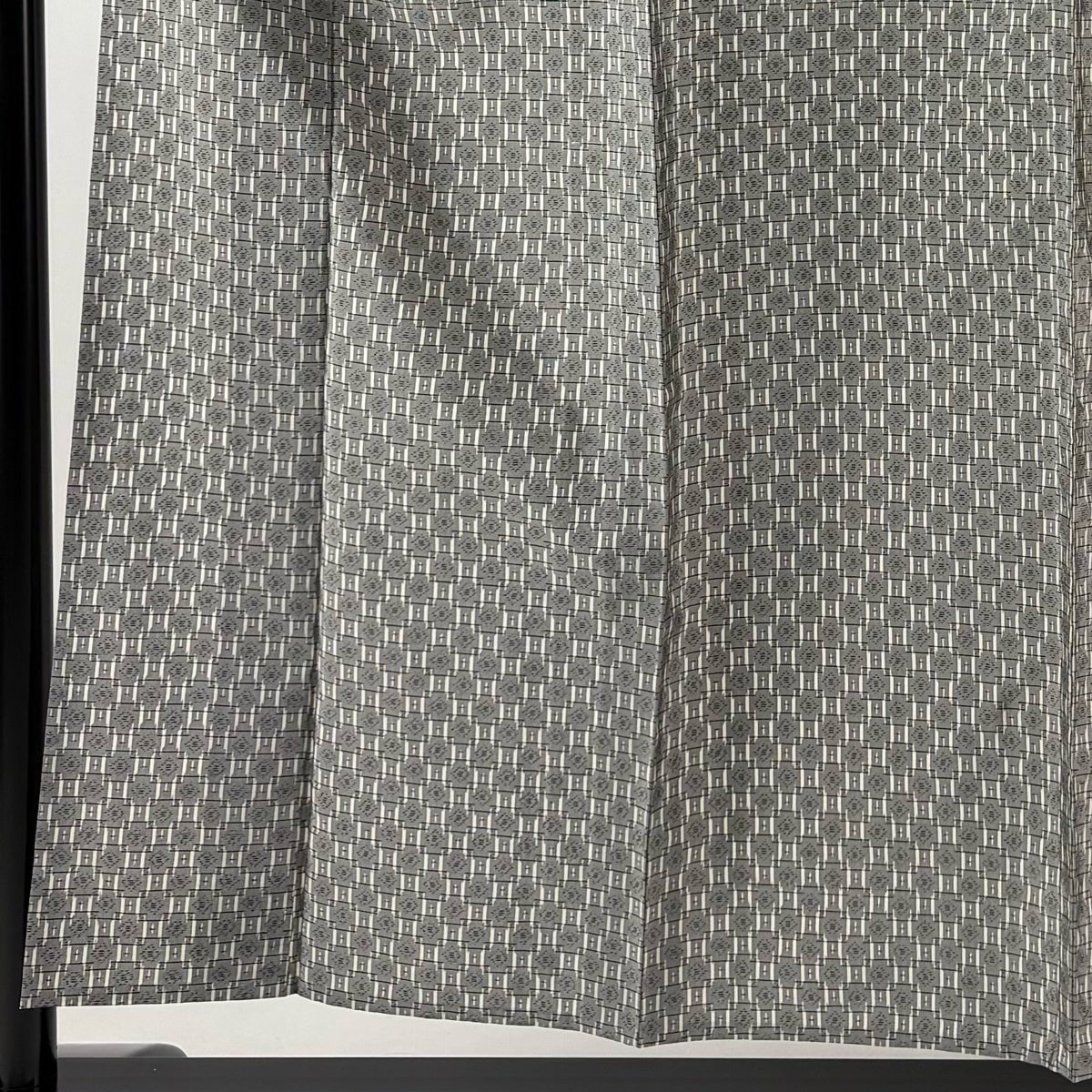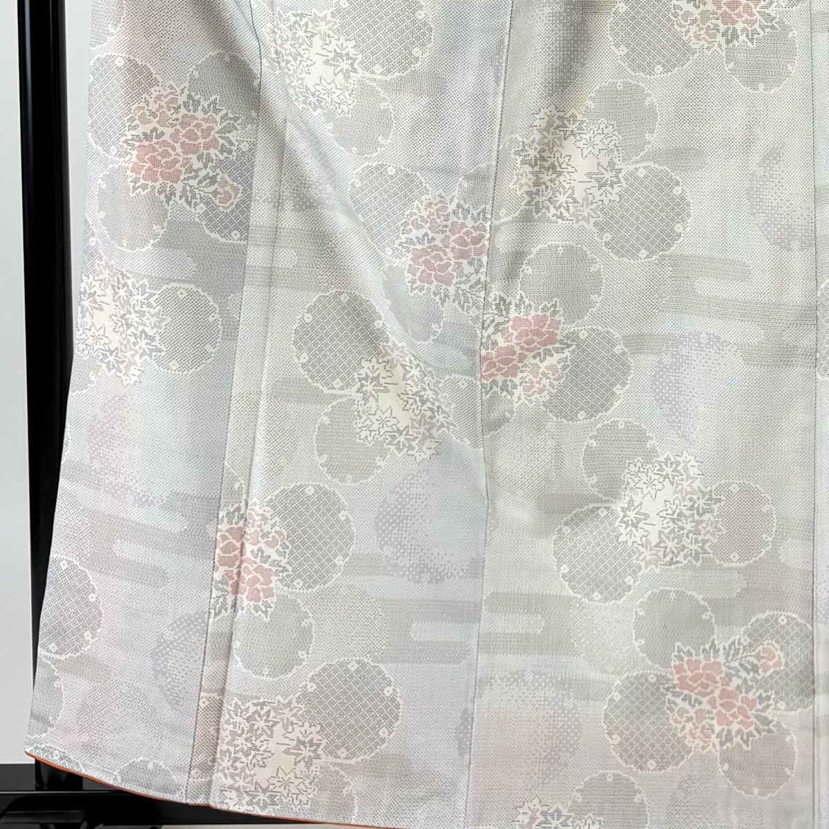 【美品】 紬 身丈156cm 裄丈62cm S 単衣 幾何学 灰色 正絹 秀品