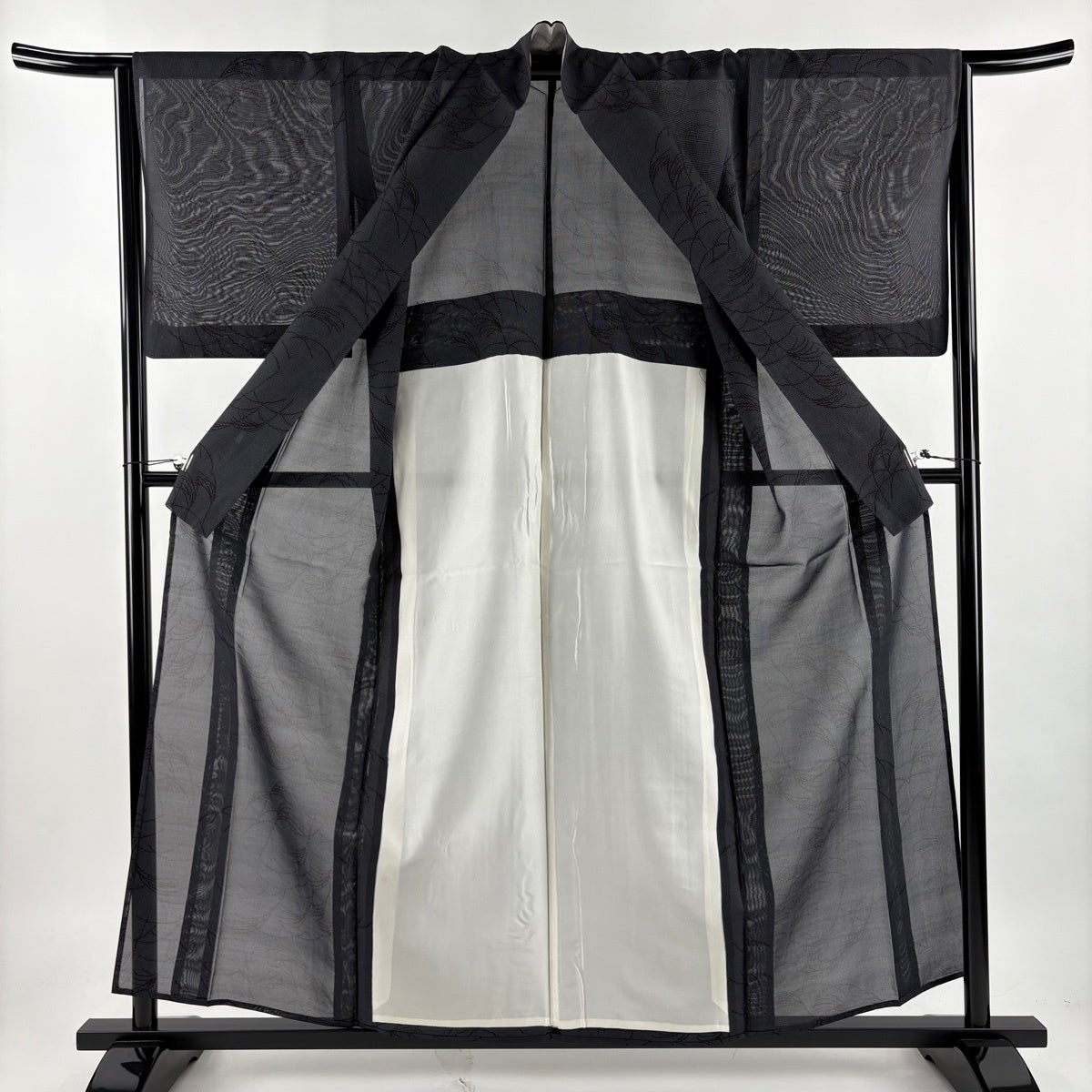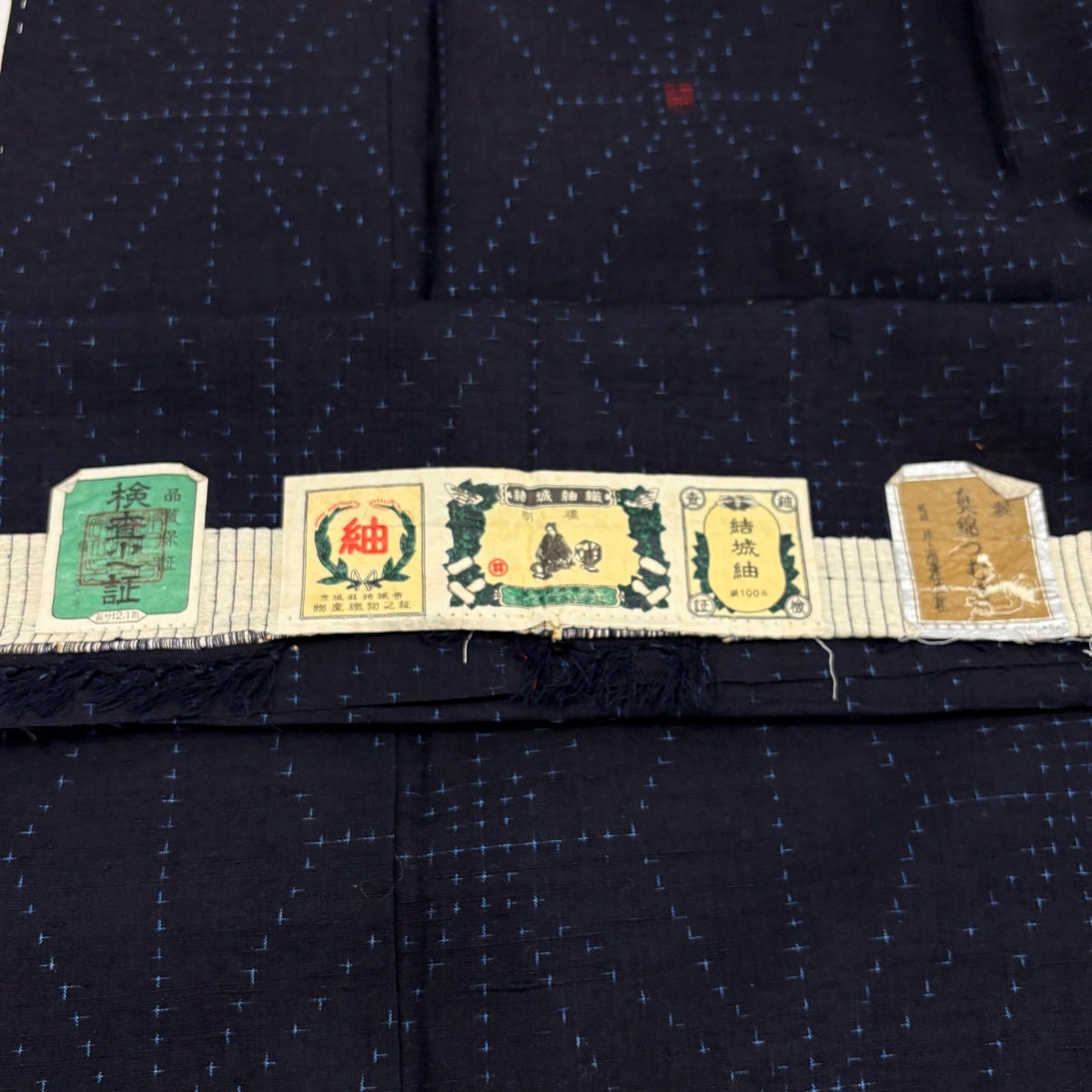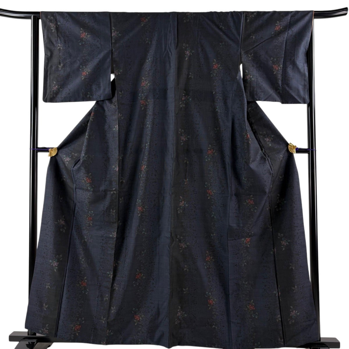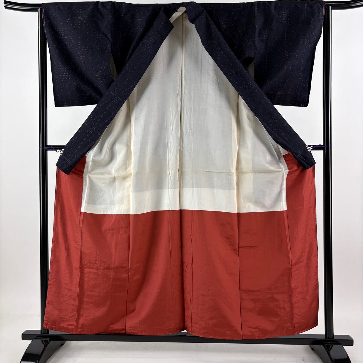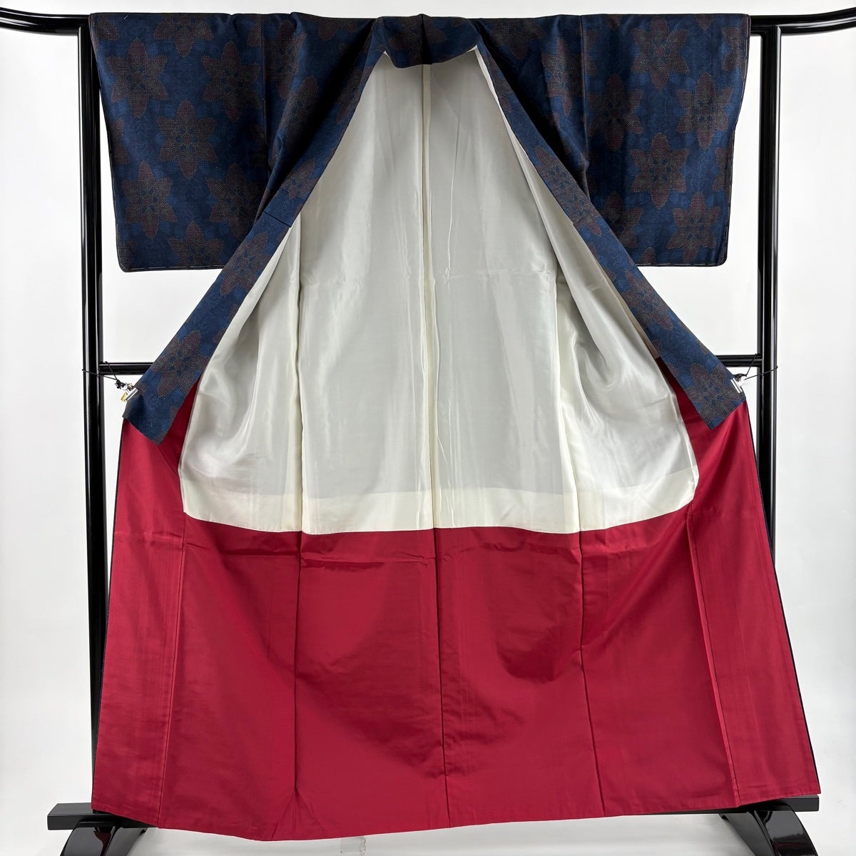 紬 身丈155.5cm 裄丈62cm S 薄物 夏紬 幾何学 紺色 正絹 優品