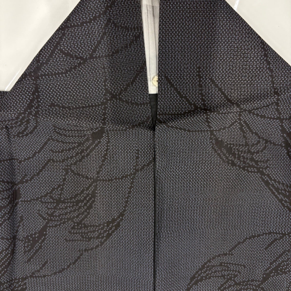 【美品】 紬 身丈160cm 裄丈64cm M 袷 幾何学 焦茶色 正絹 秀品