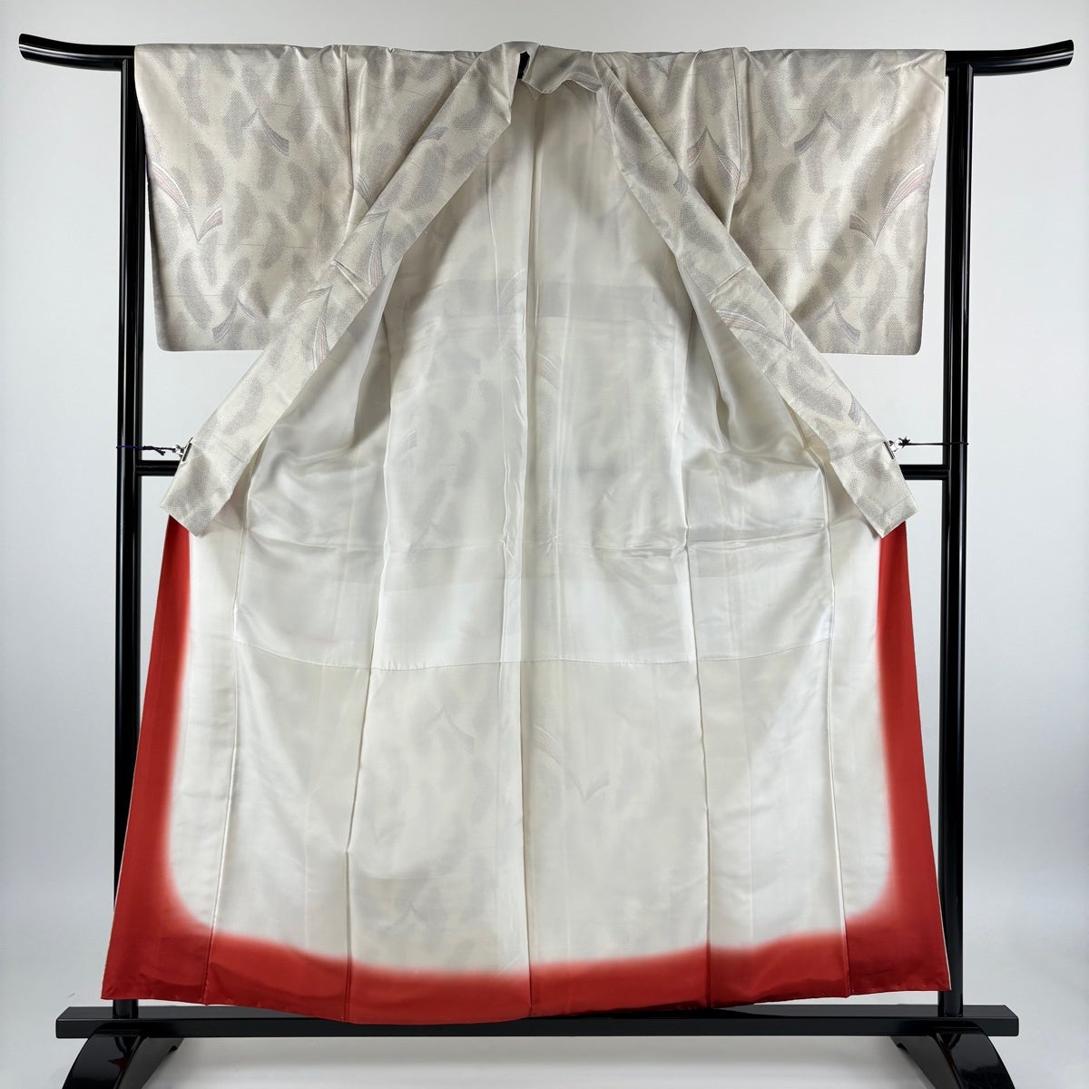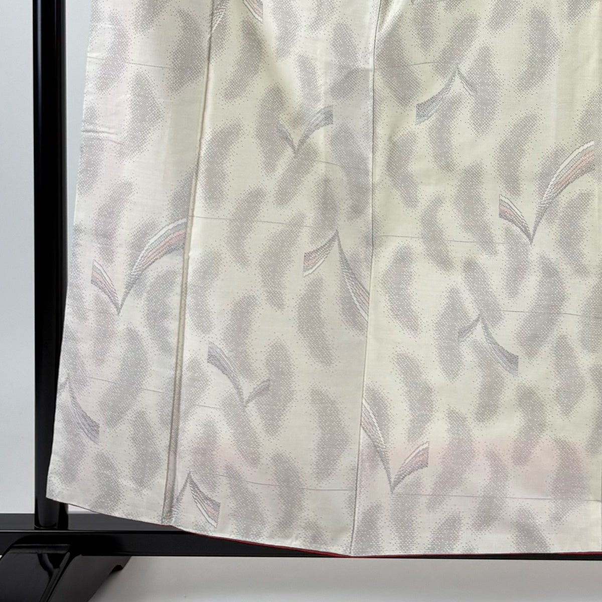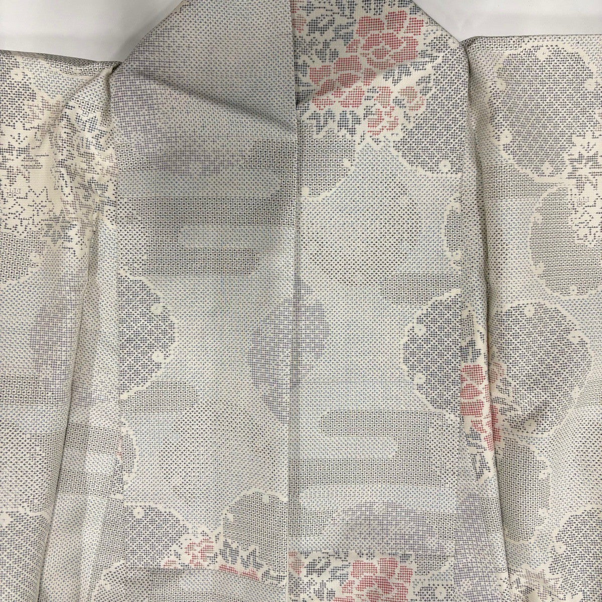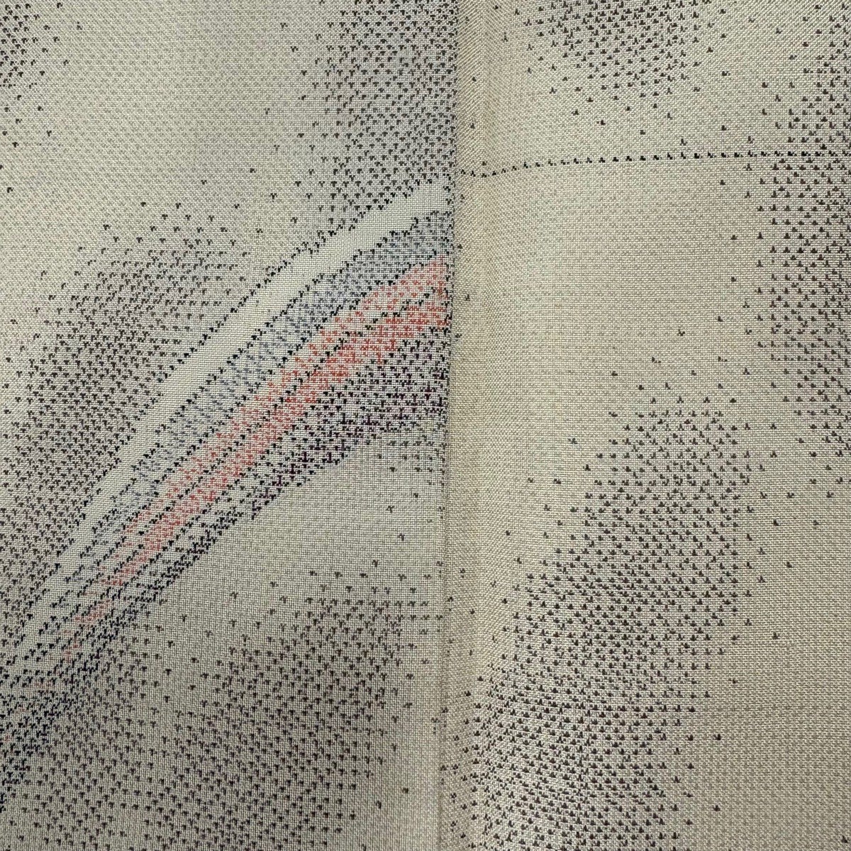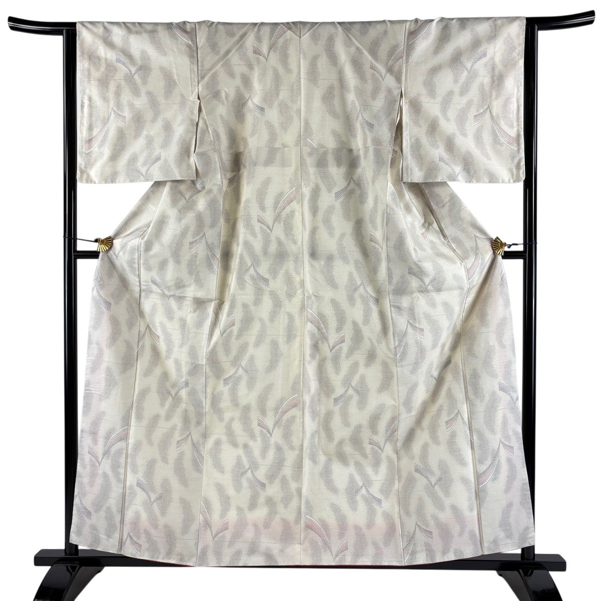 紬 身丈158.5cm 裄丈64cm M 袷 幾何学模様 クリーム 正絹 秀品