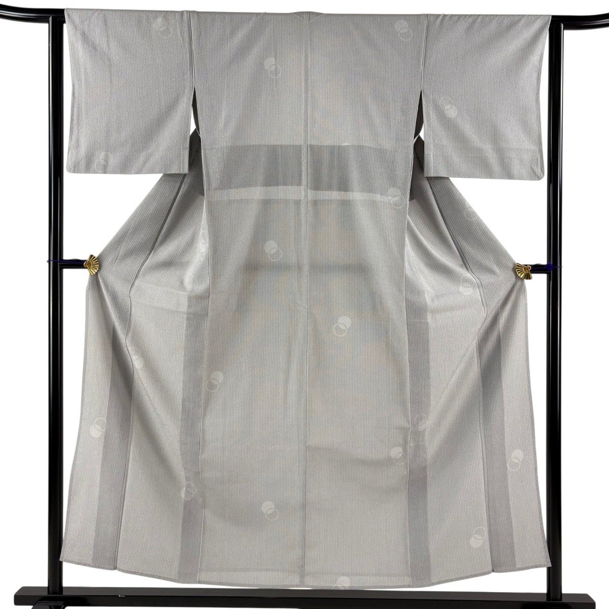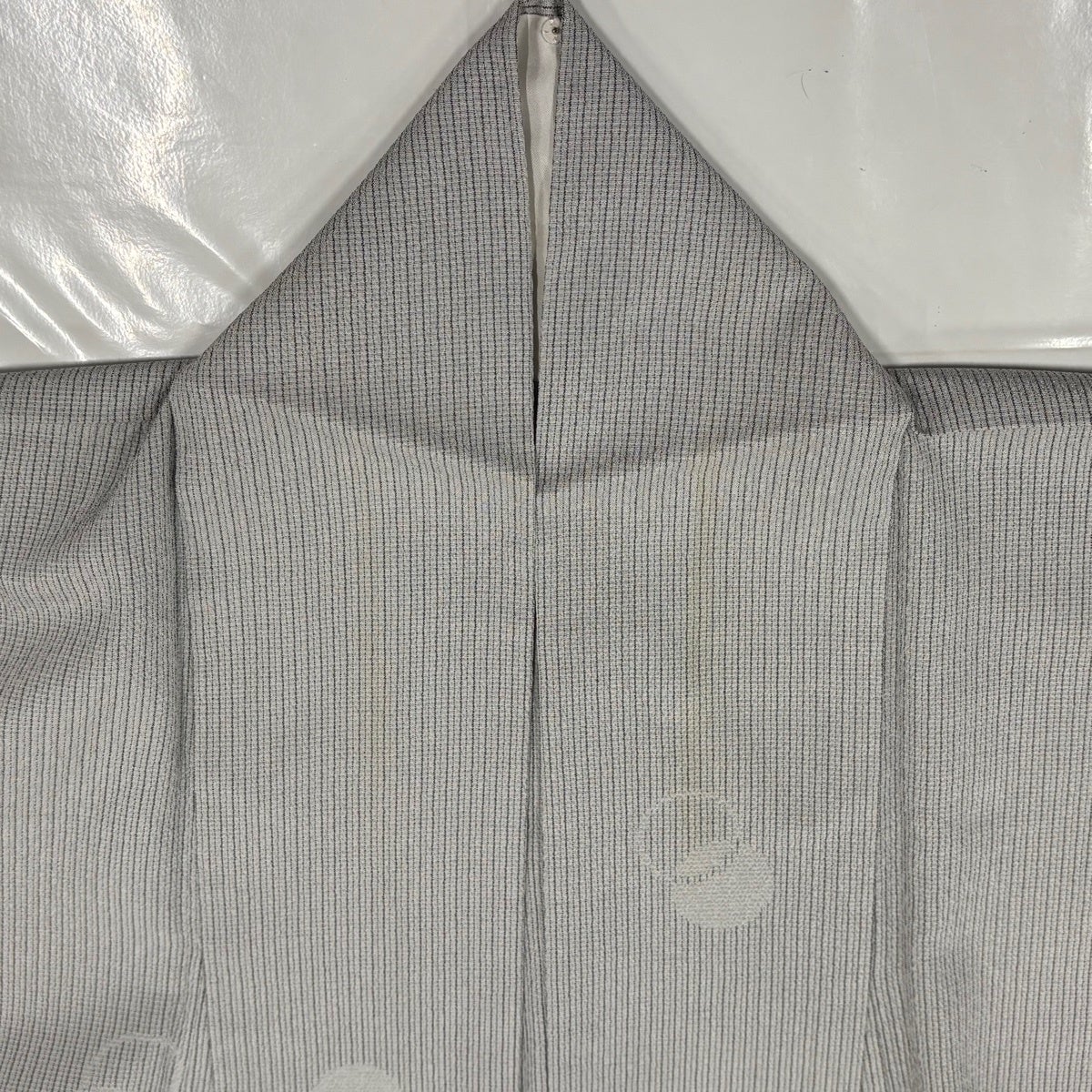 【美品】 紬 身丈158cm 裄丈63.5cm S 単衣 縞 灰色 正絹 名品
