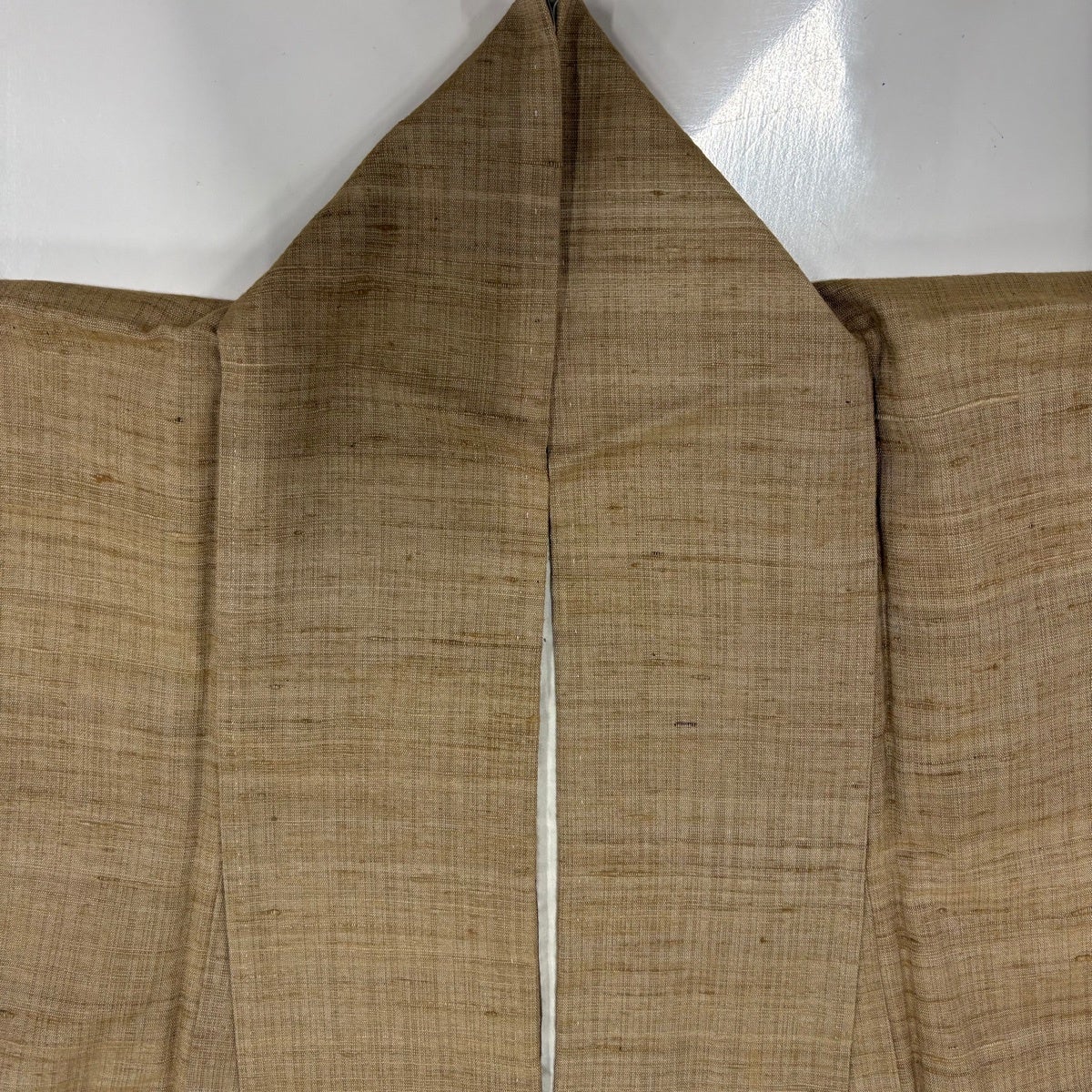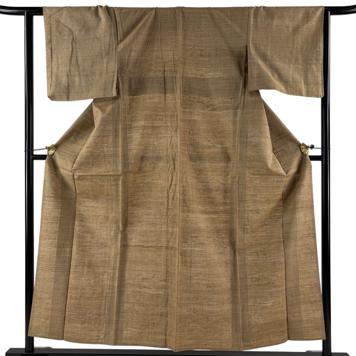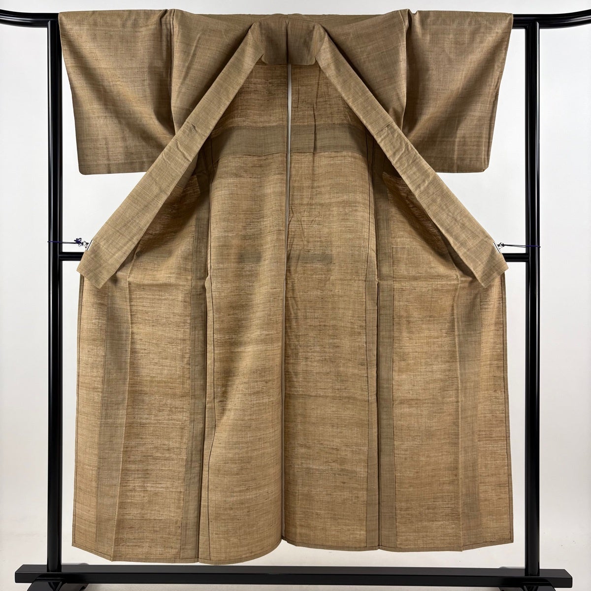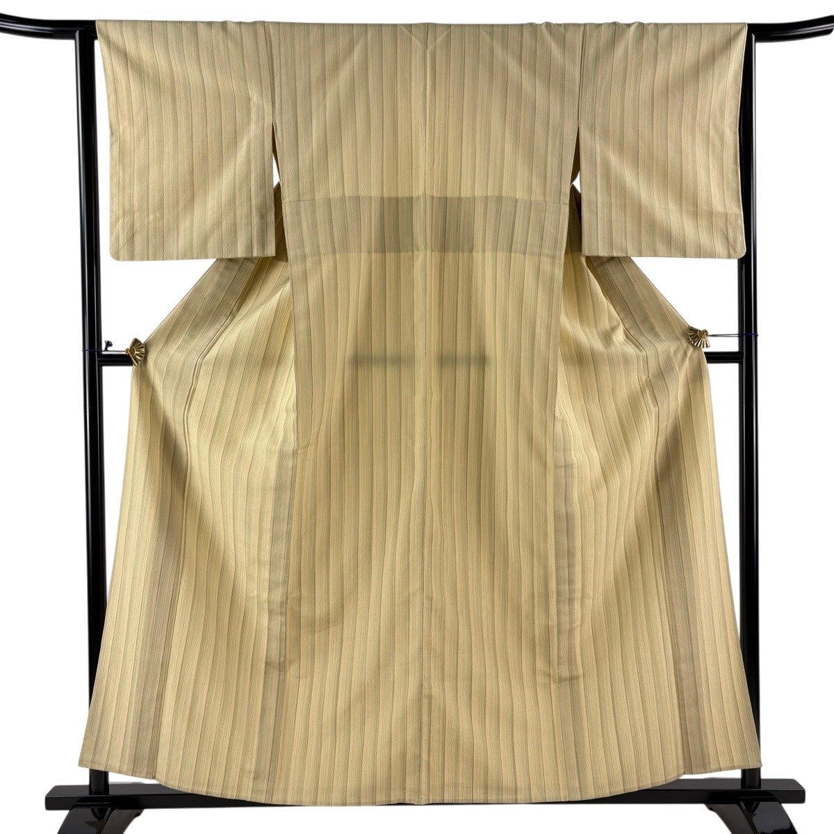 紬 身丈158.5cm 裄丈63cm S 単衣 縦縞 ベージュ 正絹 秀品