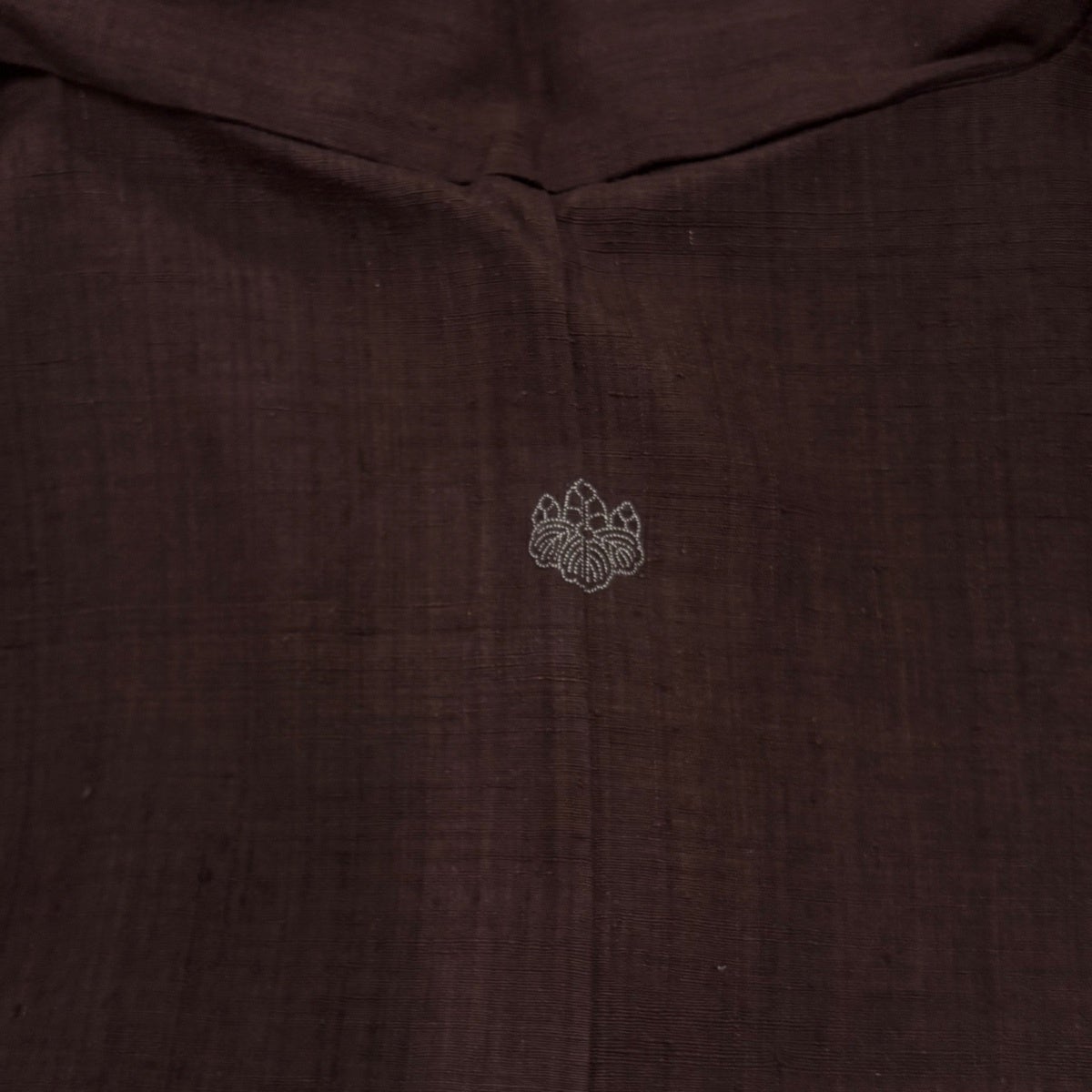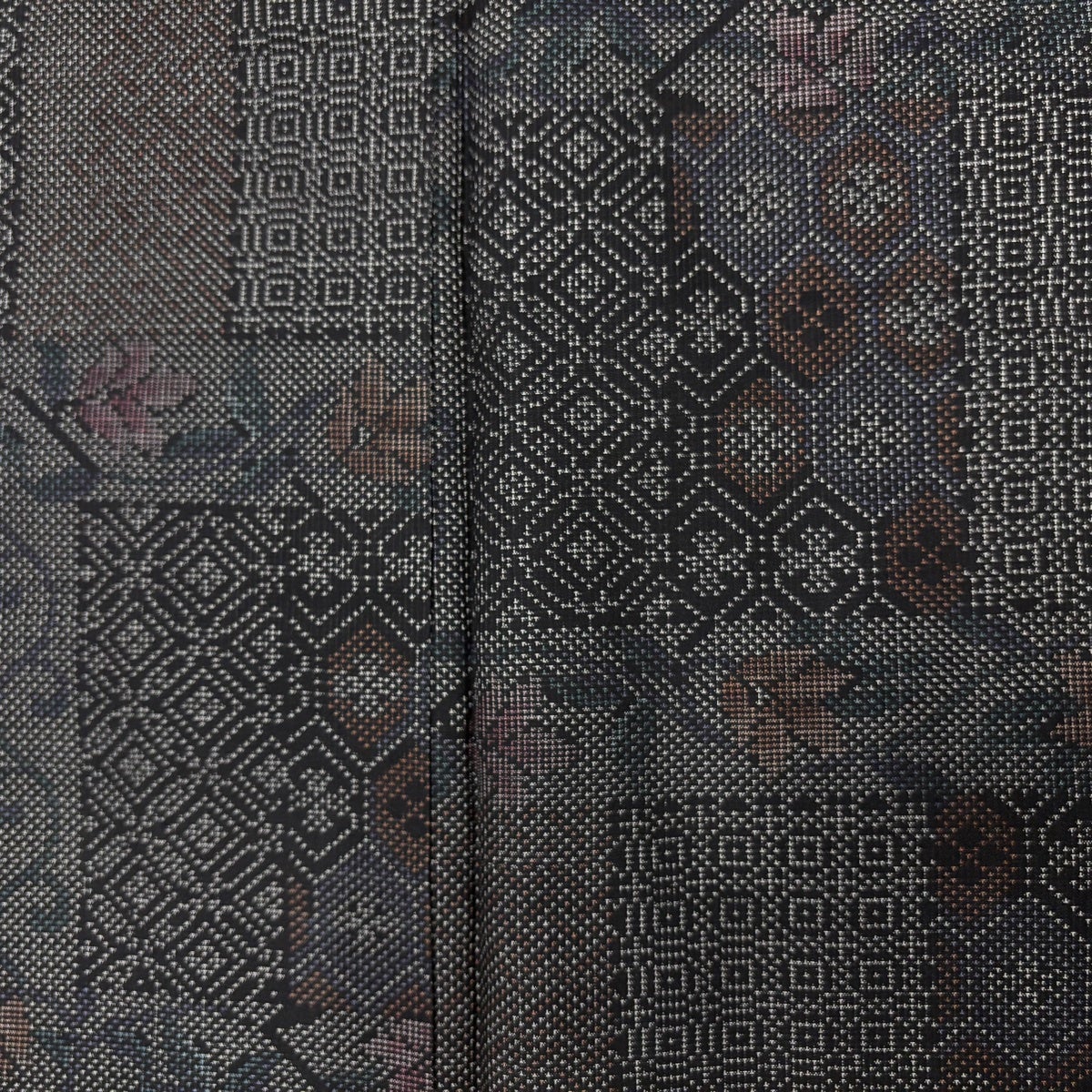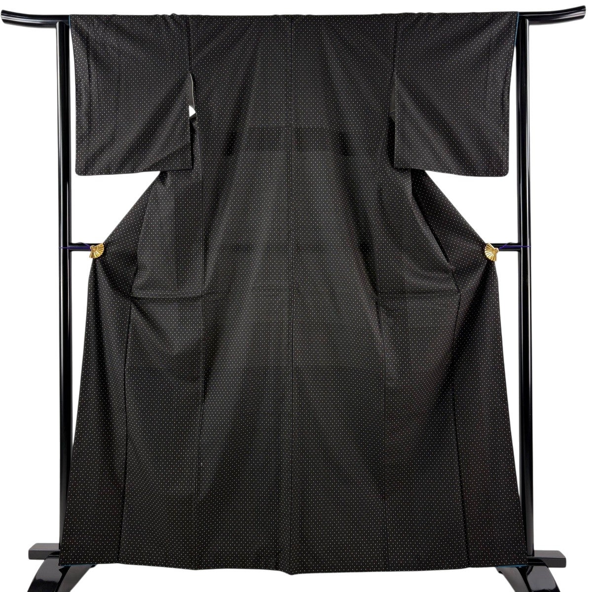紬 身丈155cm 裄丈62cm S 袷 麻の葉 短冊 6 焦茶色 正絹 秀品