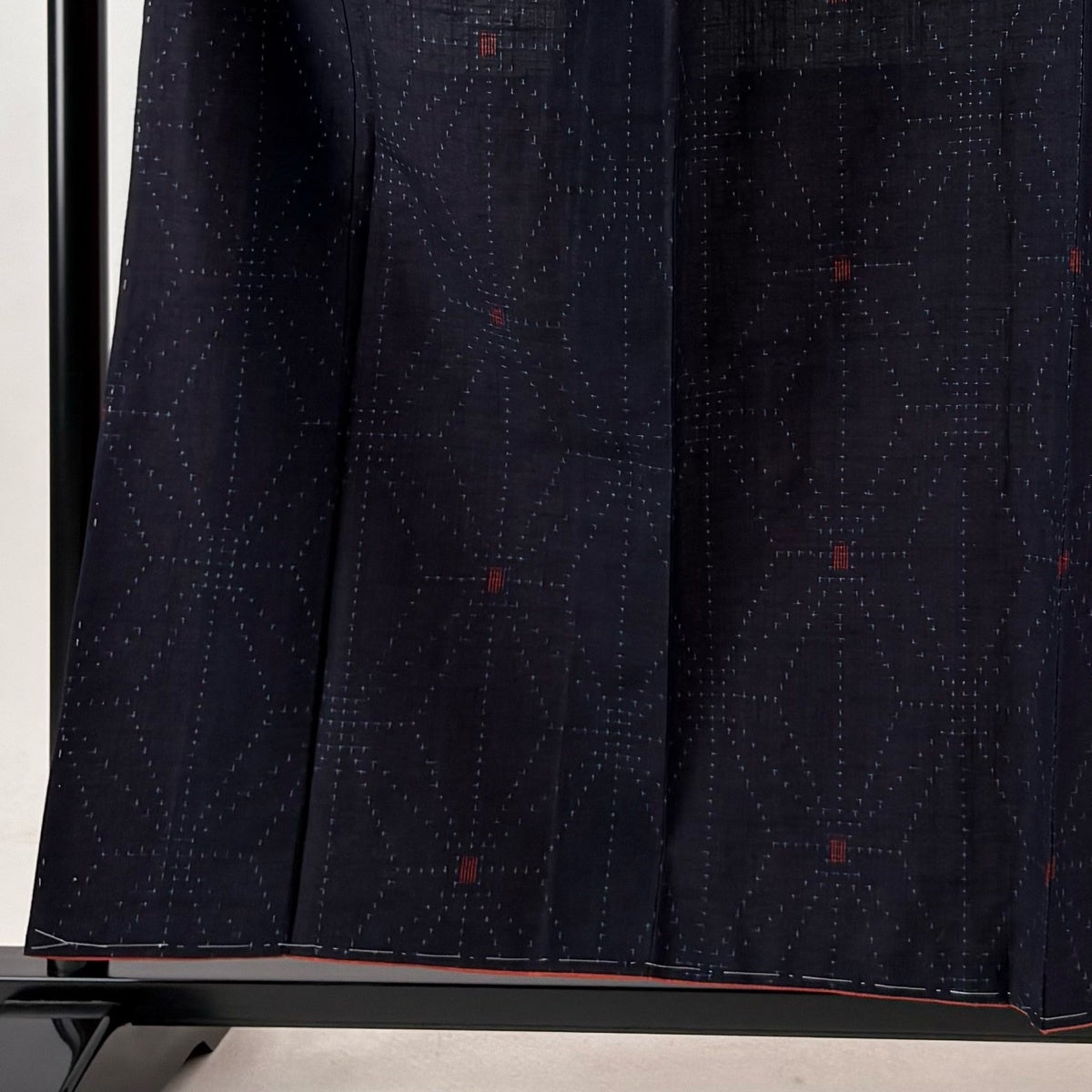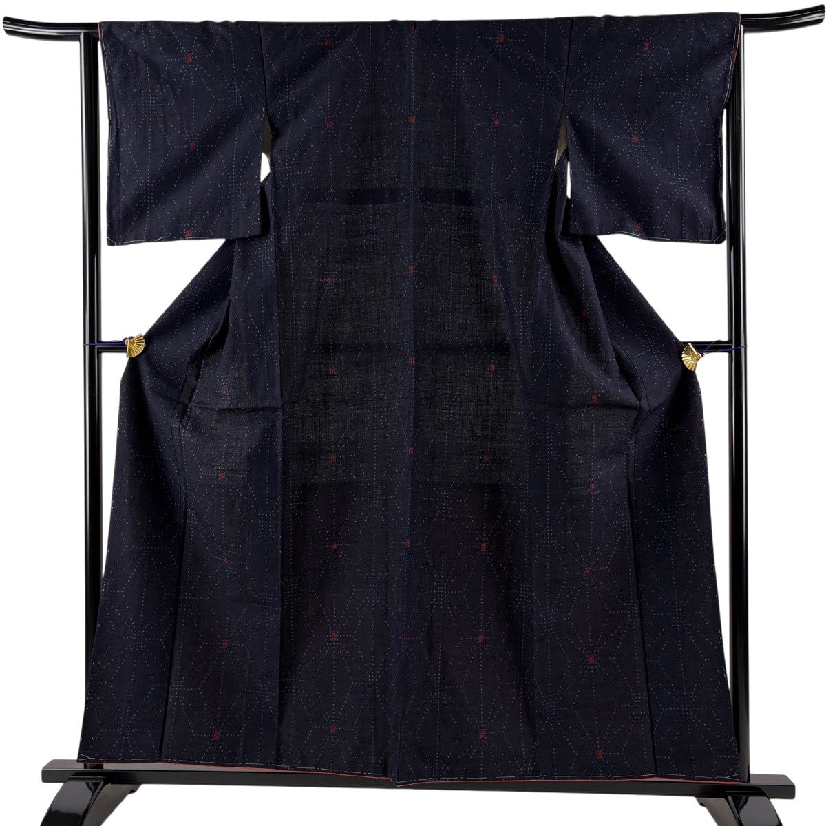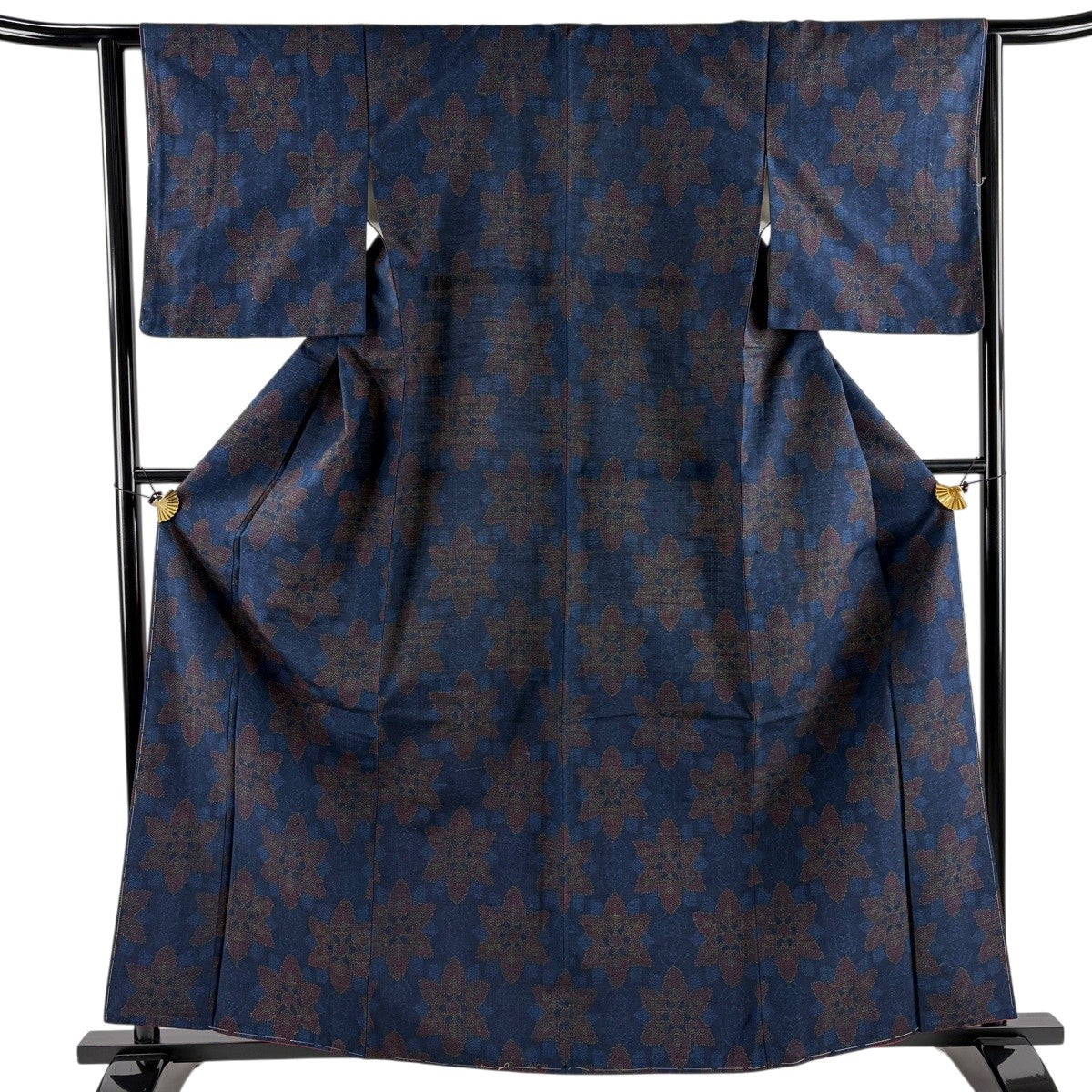 男着物 身丈141cm 裄丈65.5cm M 袷 紬 幾何学 濃紺 正絹 秀品