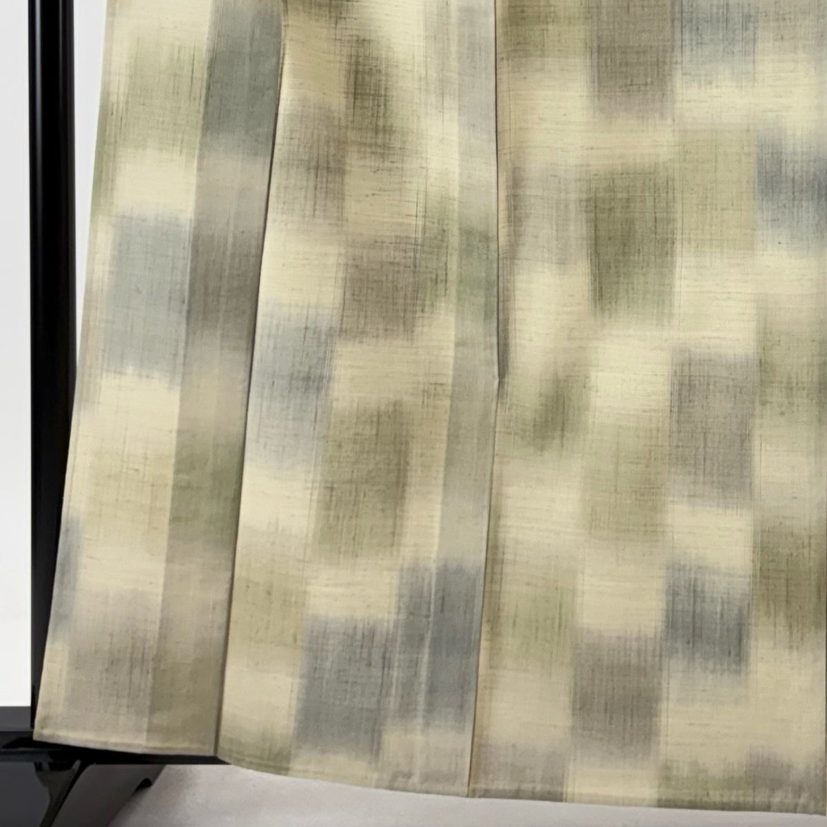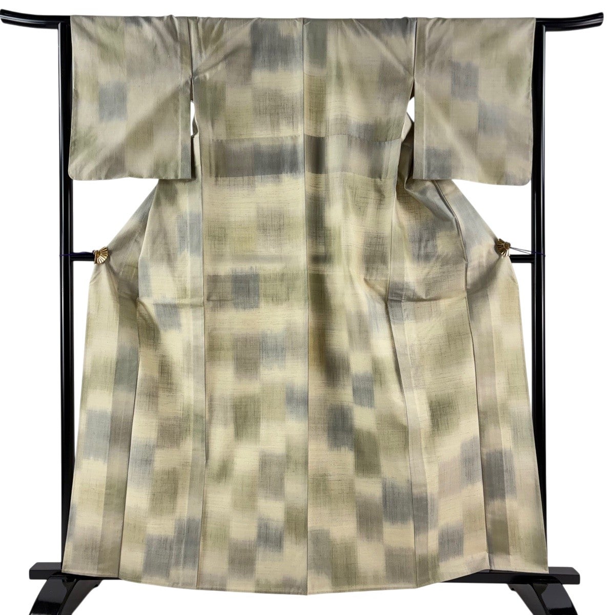 【美品】 紬 身丈163cm 裄丈63cm S 単衣 変わり市松 灰緑 正絹 秀品