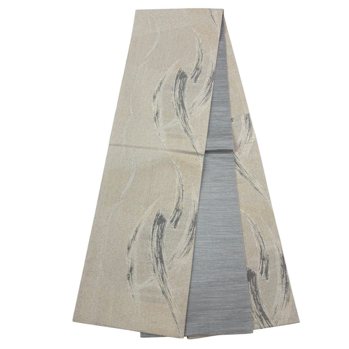 名古屋帯 秀品 夏帯 幾何学 刺繍 灰色 正絹
