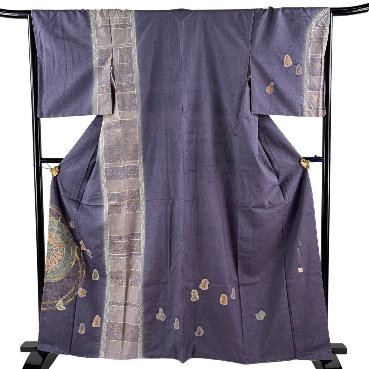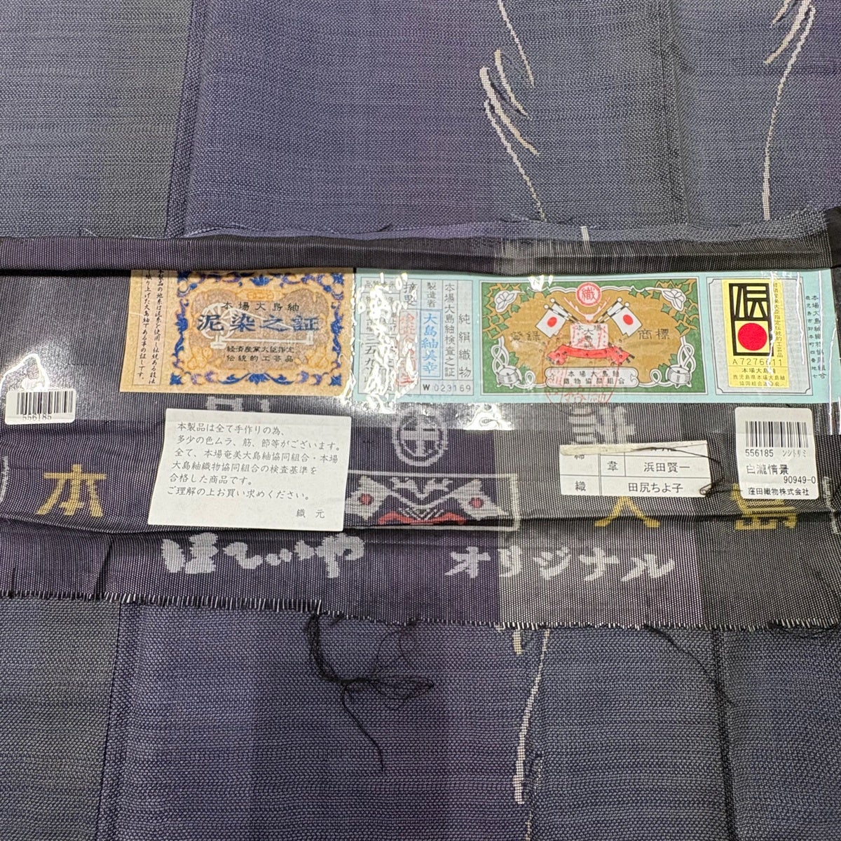大島紬 身丈164cm 裄丈67cm M 袷 ほていや 泥染 証紙あり 幾何学模様 灰紫 正絹 秀品