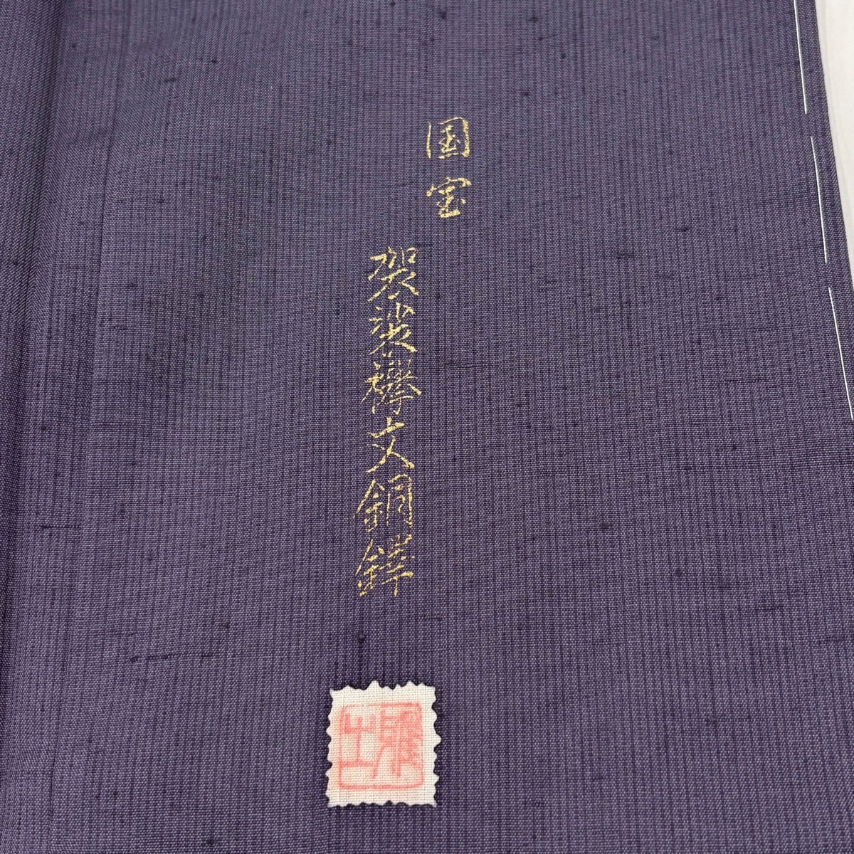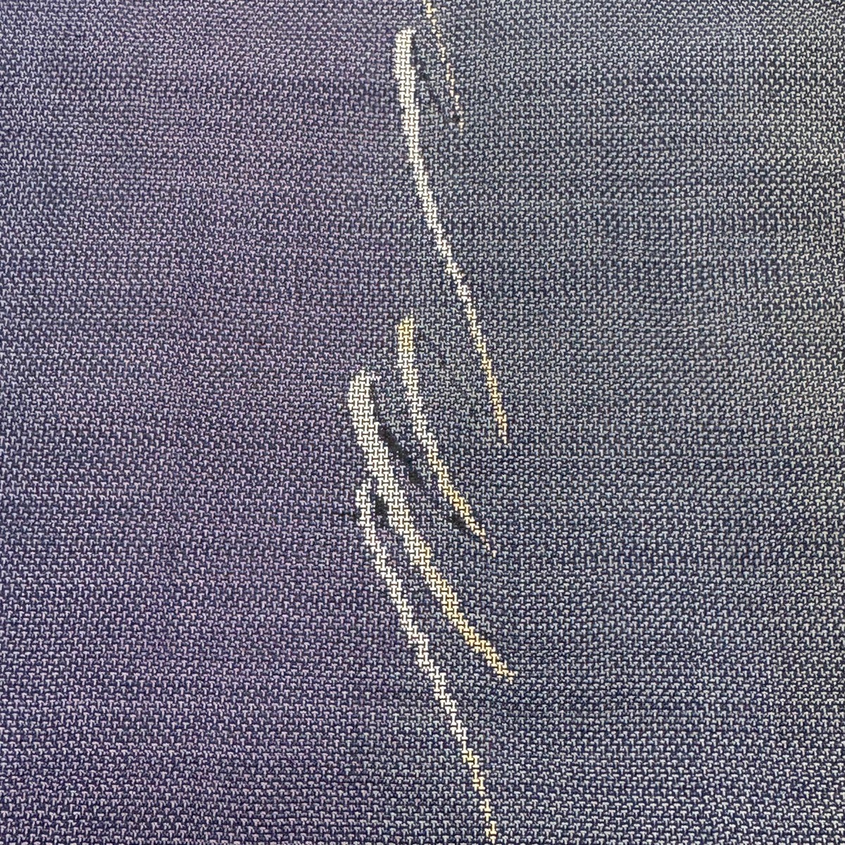 名古屋帯 優品 蝶 縦縞 金銀彩 縮緬 灰紫 正絹