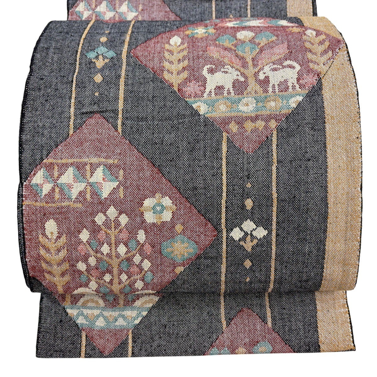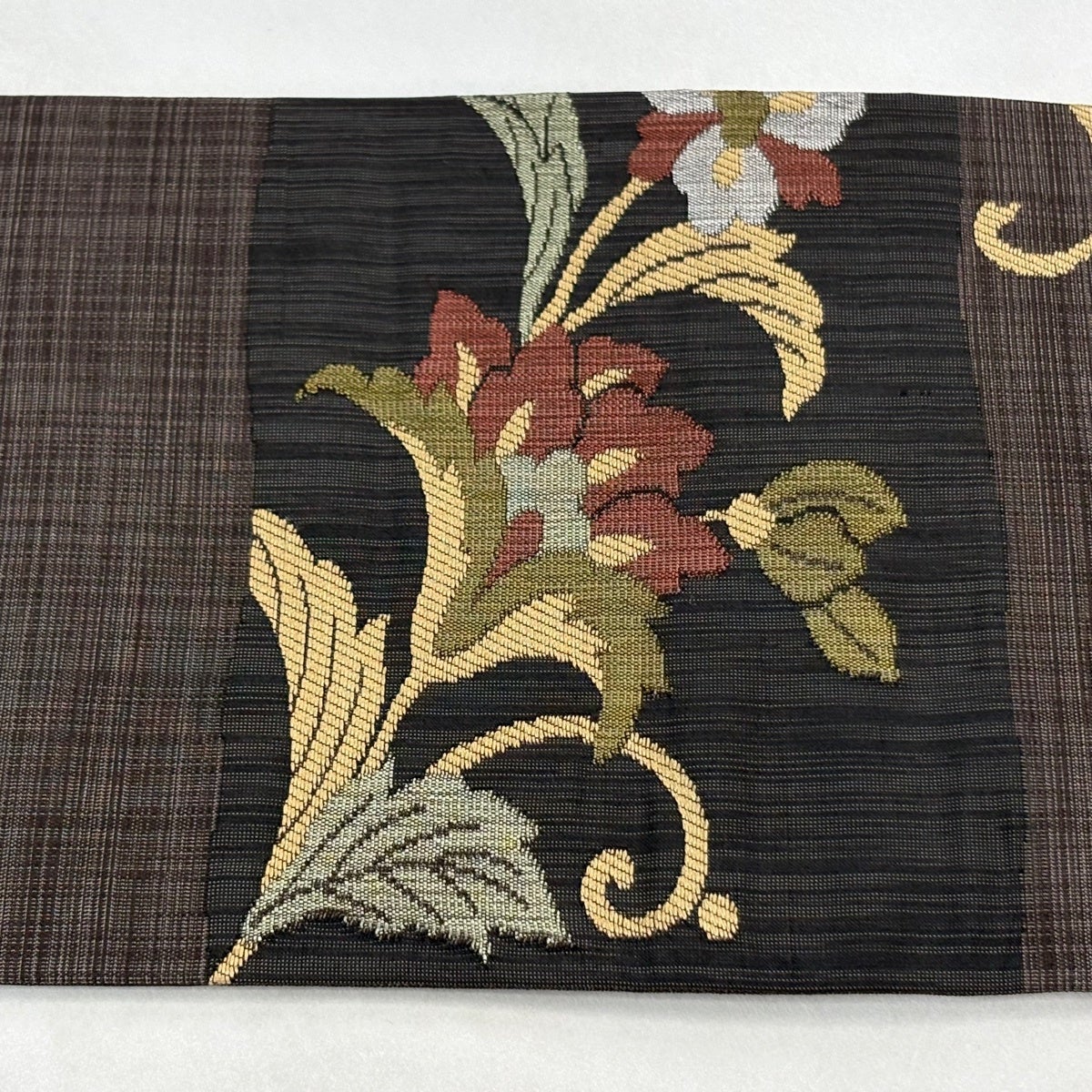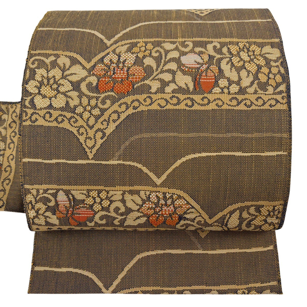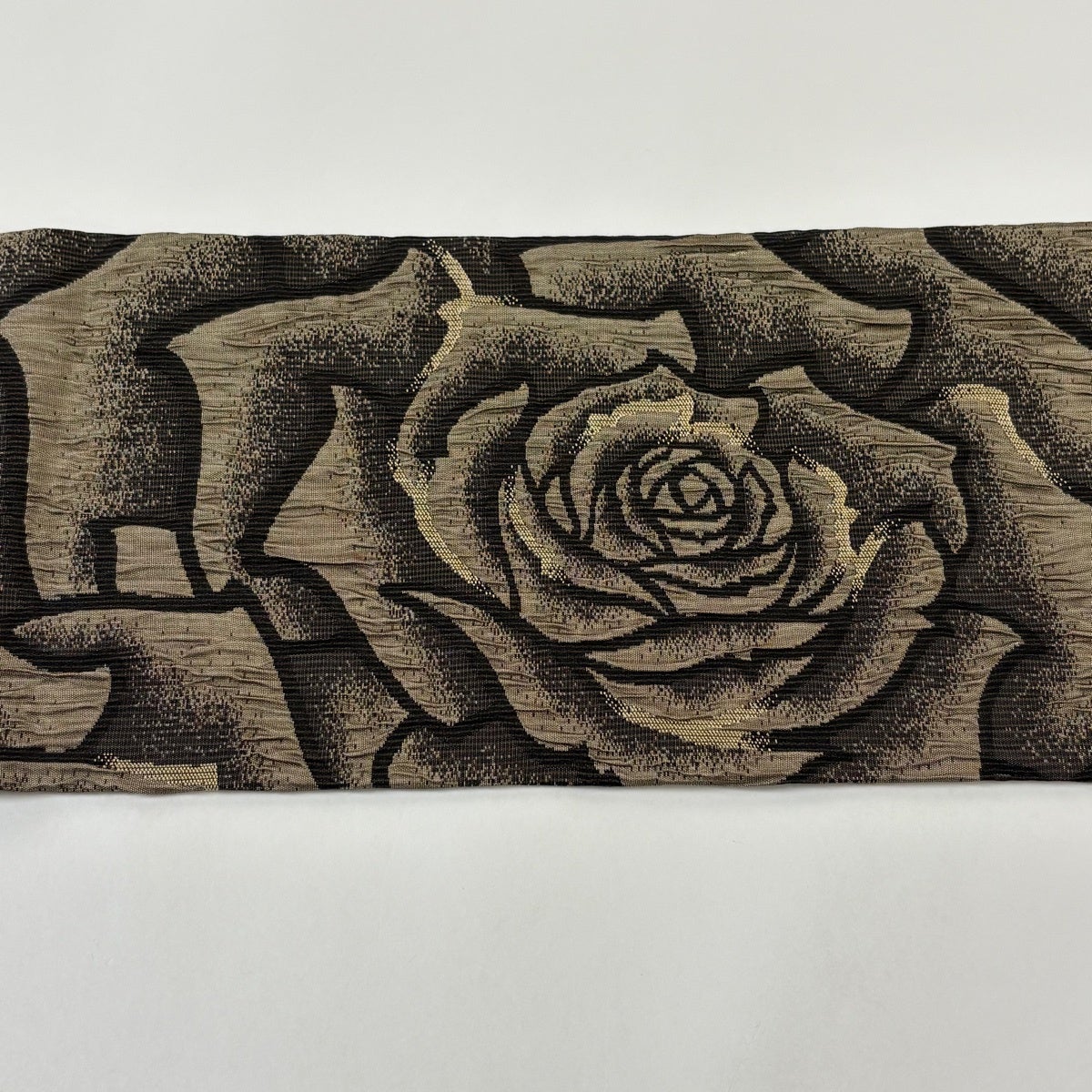 半幅帯 優品 薔薇 よろけ縞 箔 墨色 化繊