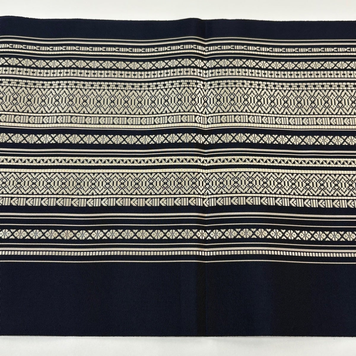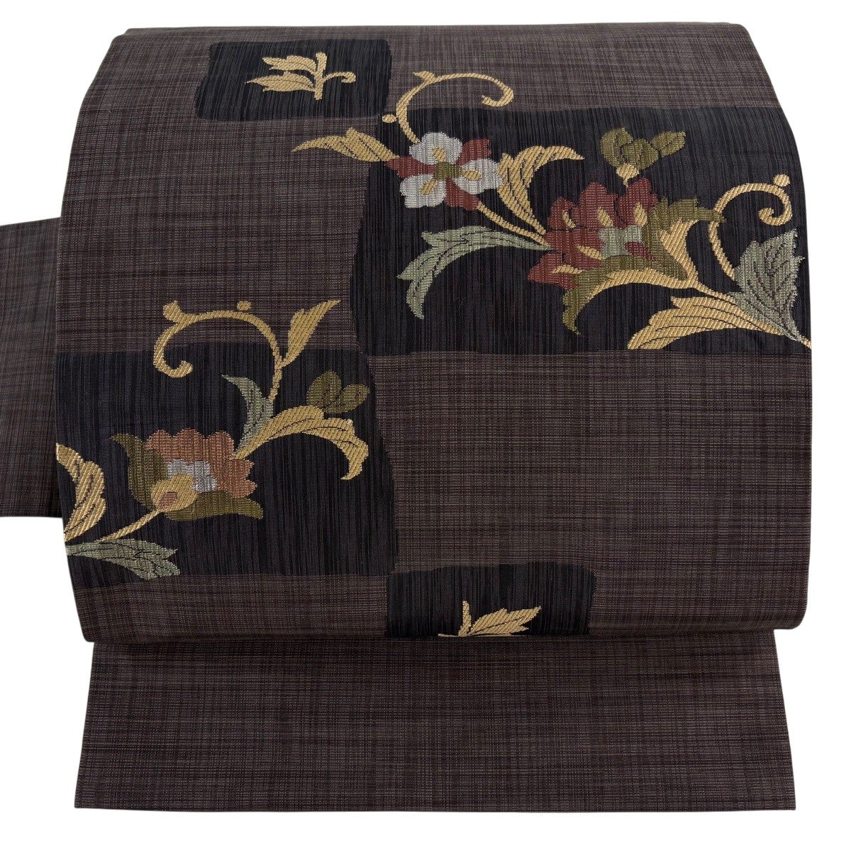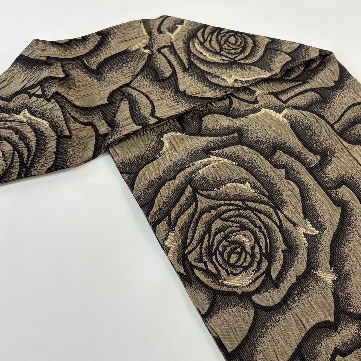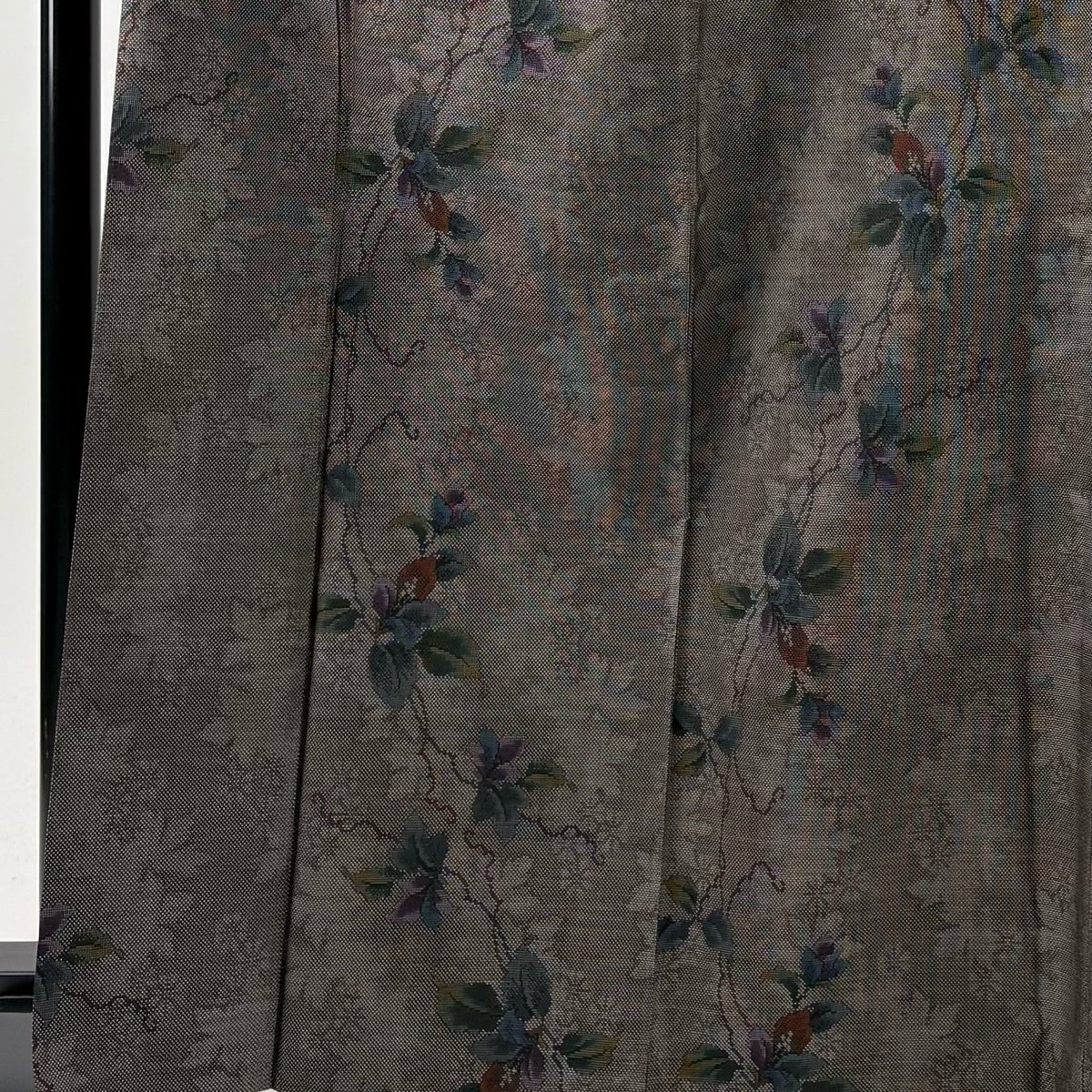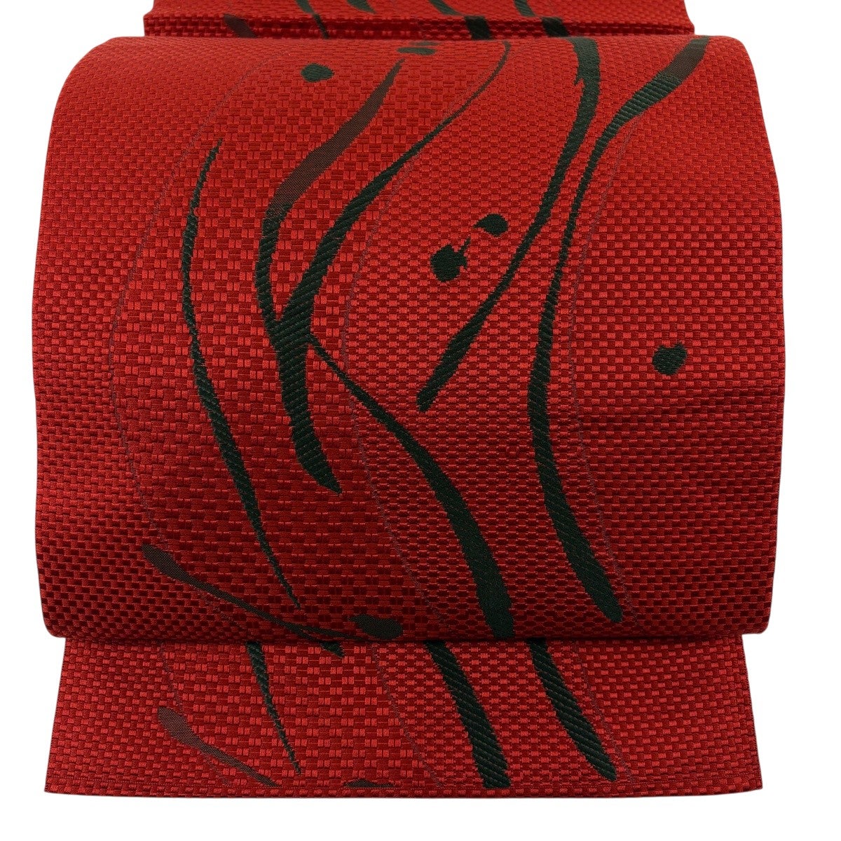 半幅帯 優品 薔薇 よろけ縞 箔 墨色 化繊