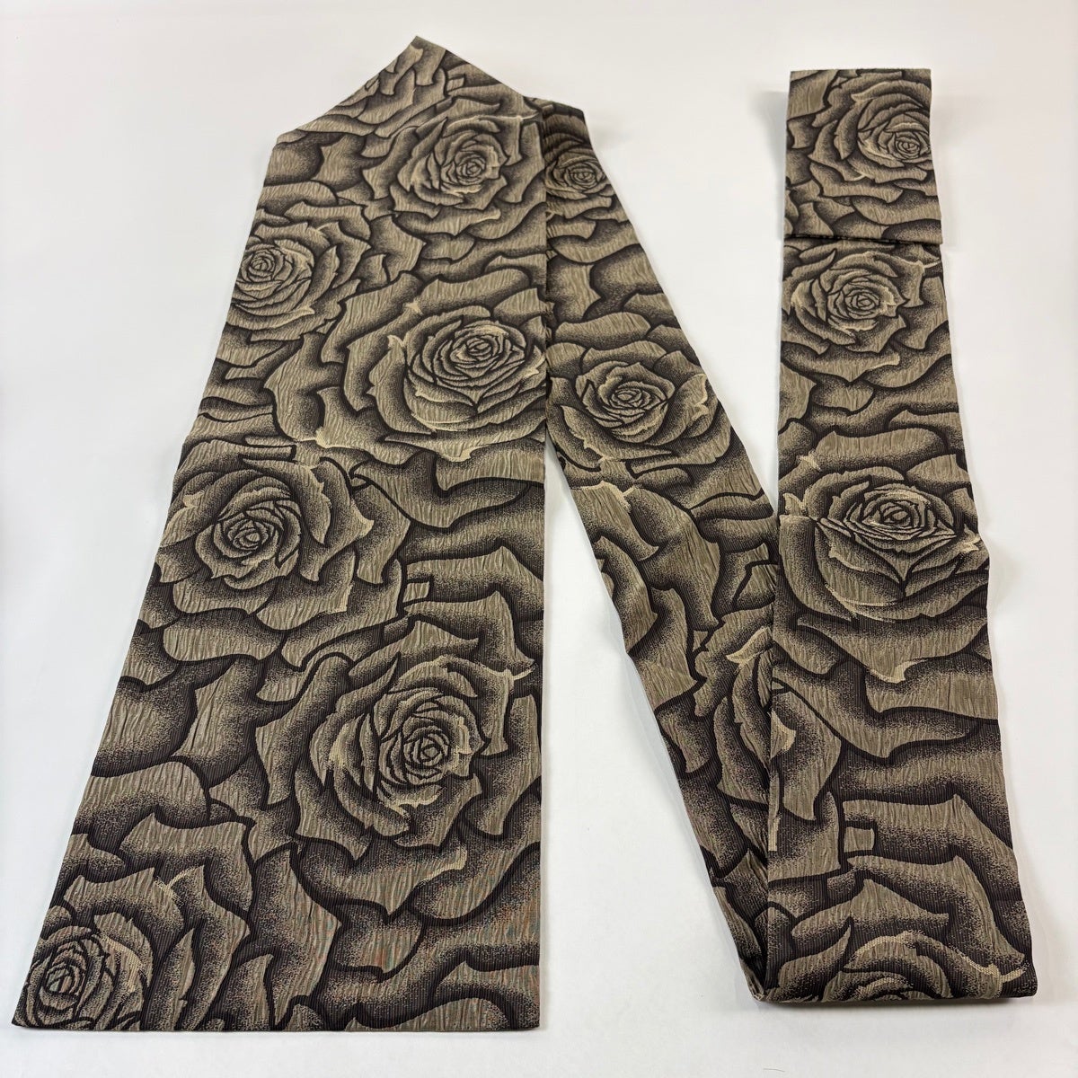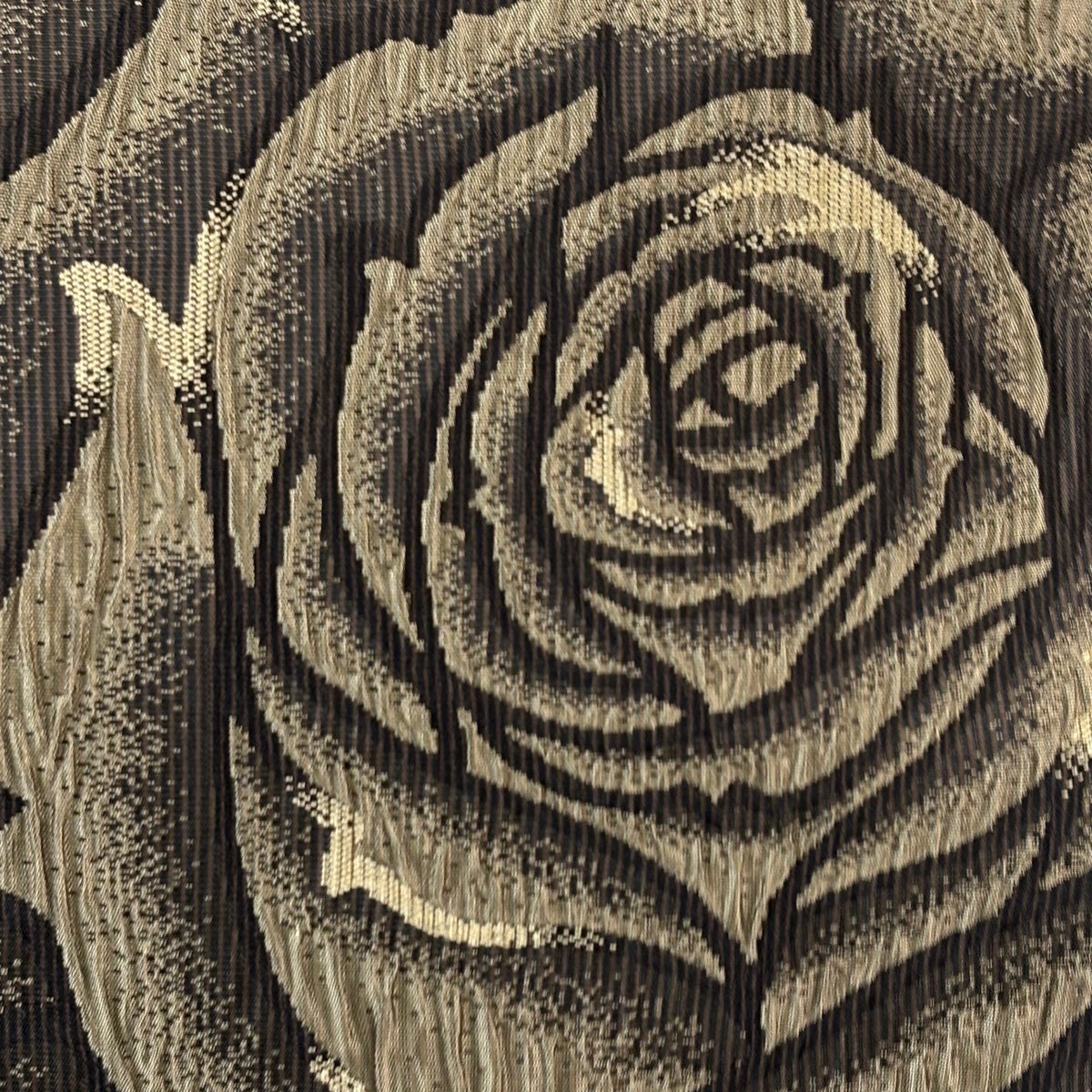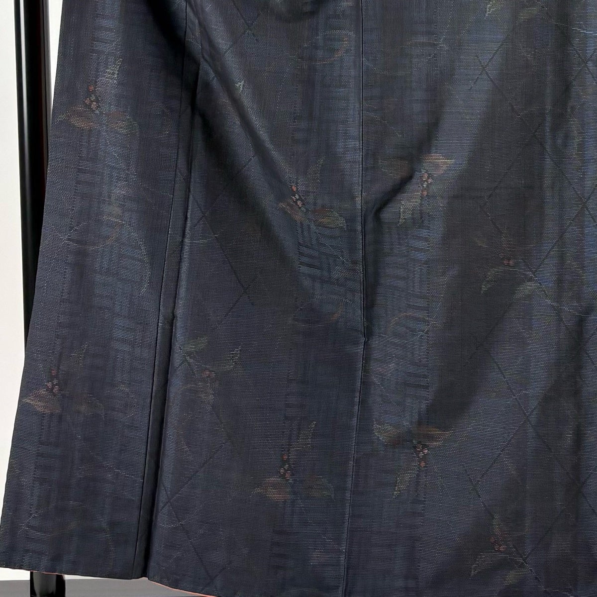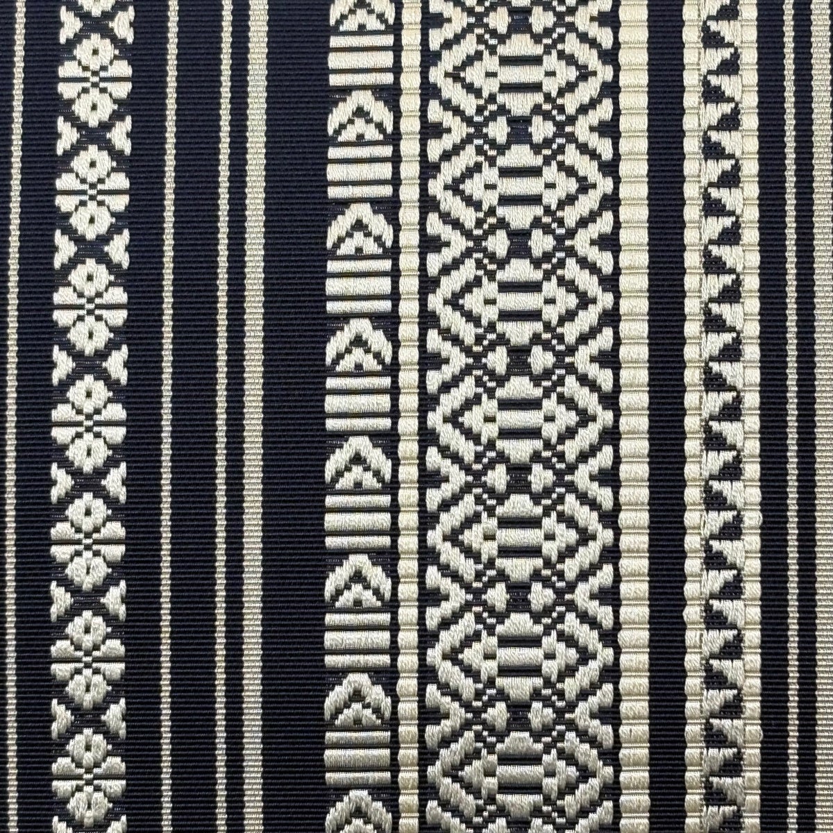 半幅帯 優品 薔薇 よろけ縞 箔 墨色 化繊