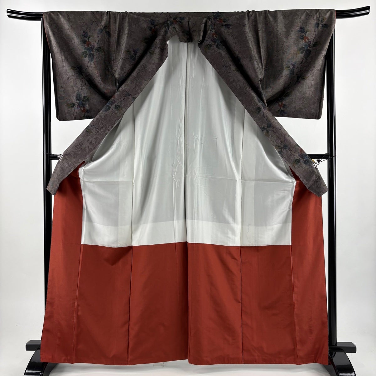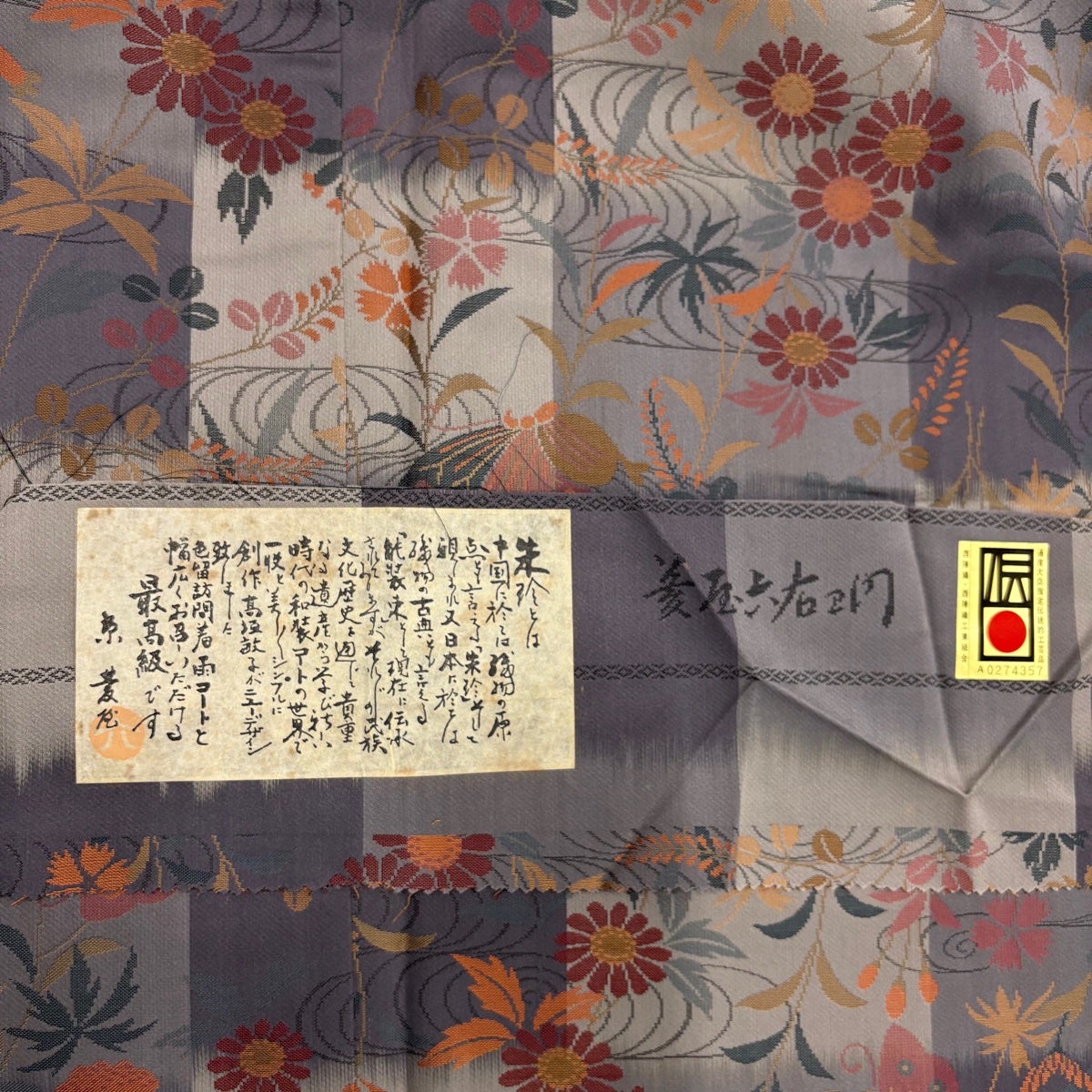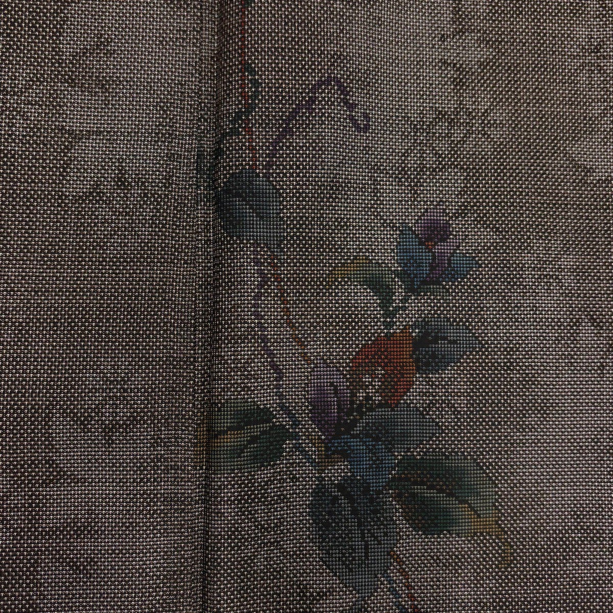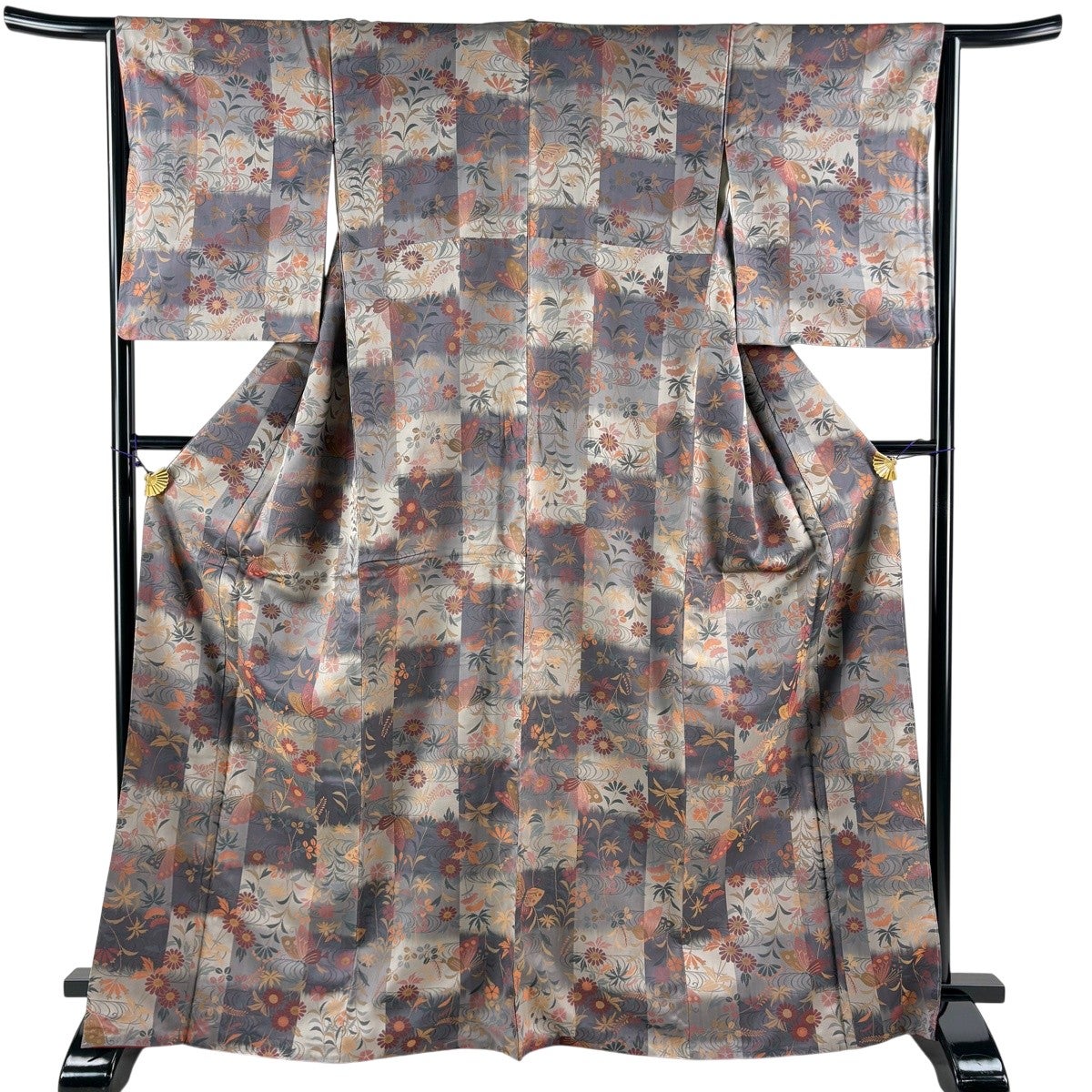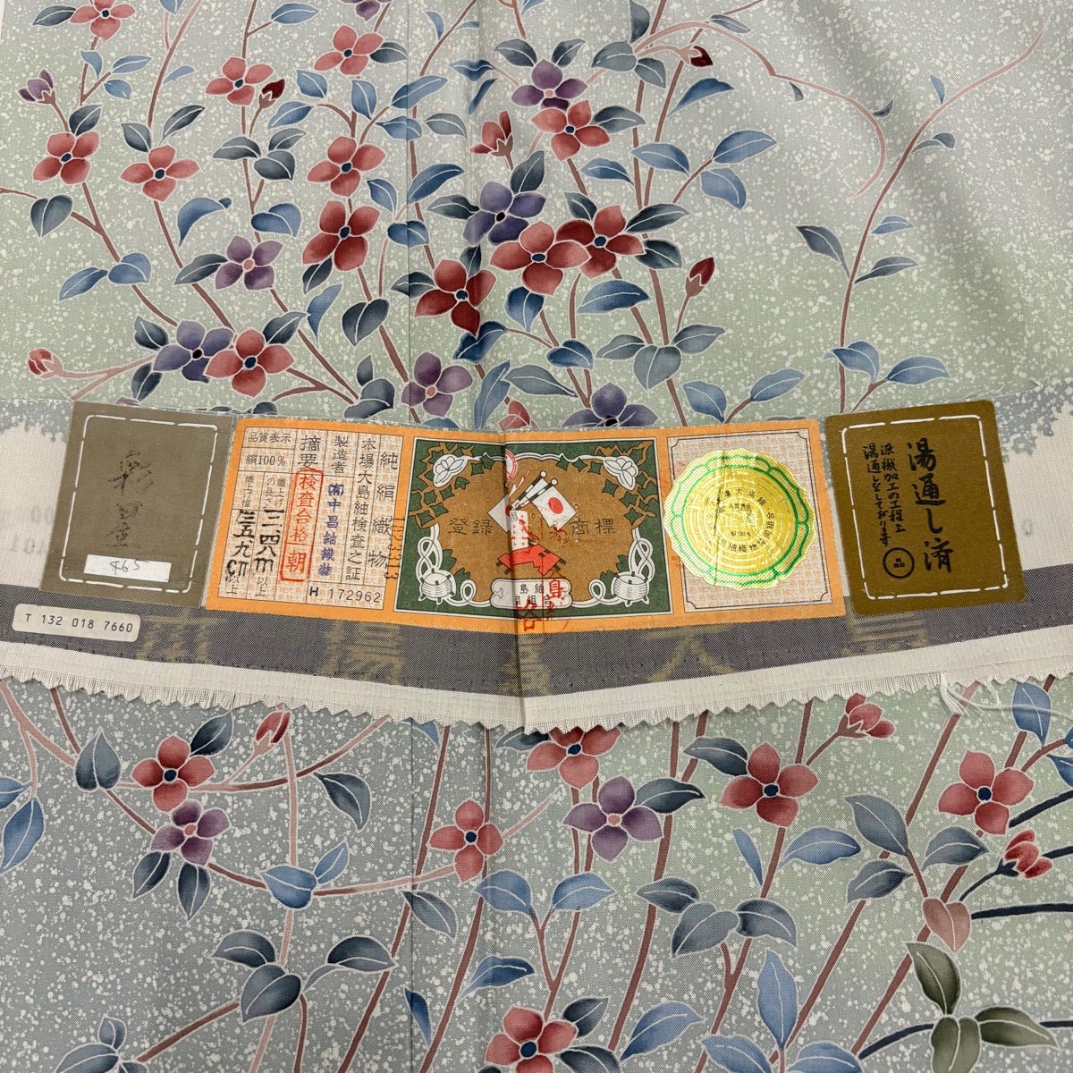【美品】 大島紬 身丈166.5cm 裄丈67cm M 袷 証紙あり 草花 シルエット 灰茶 正絹 秀品