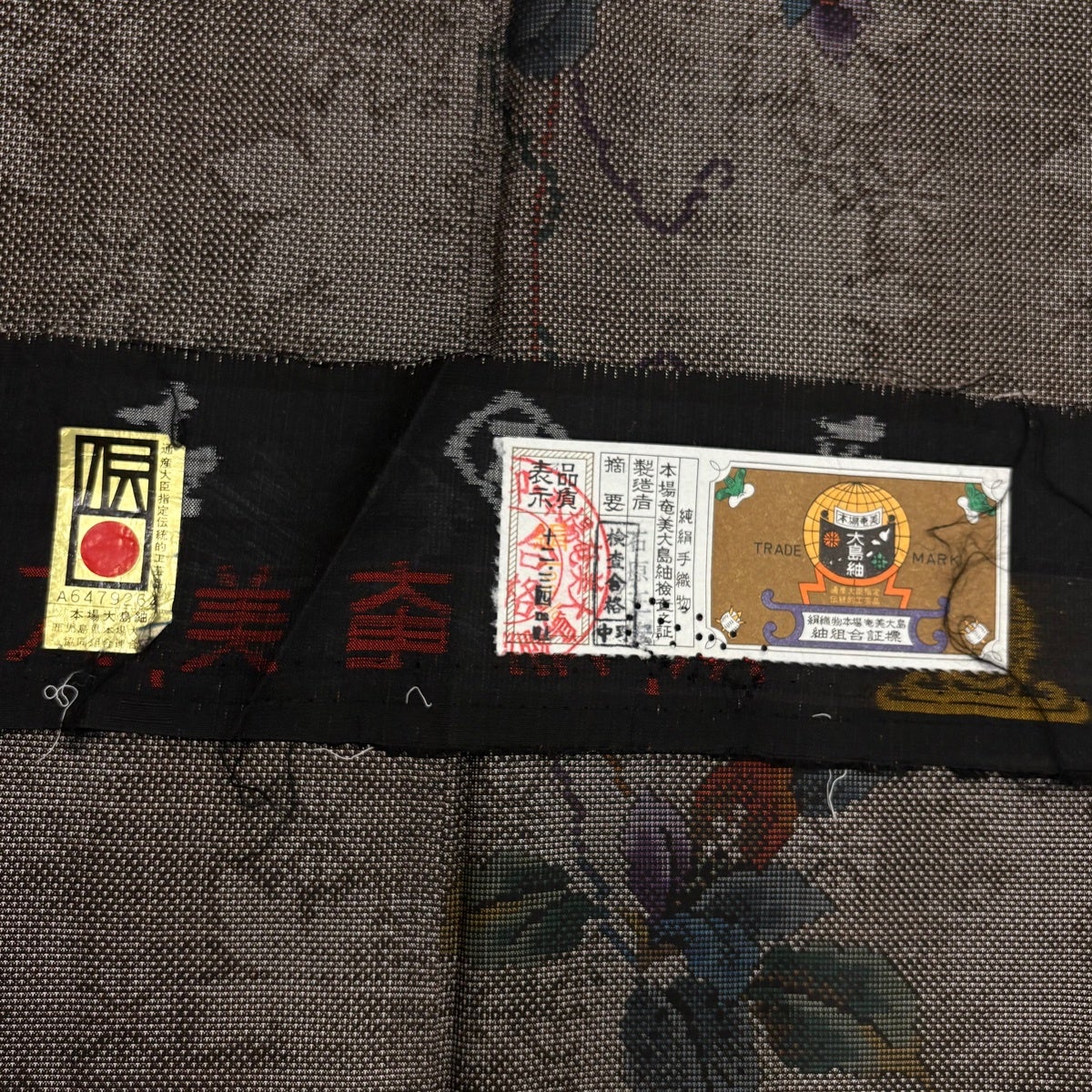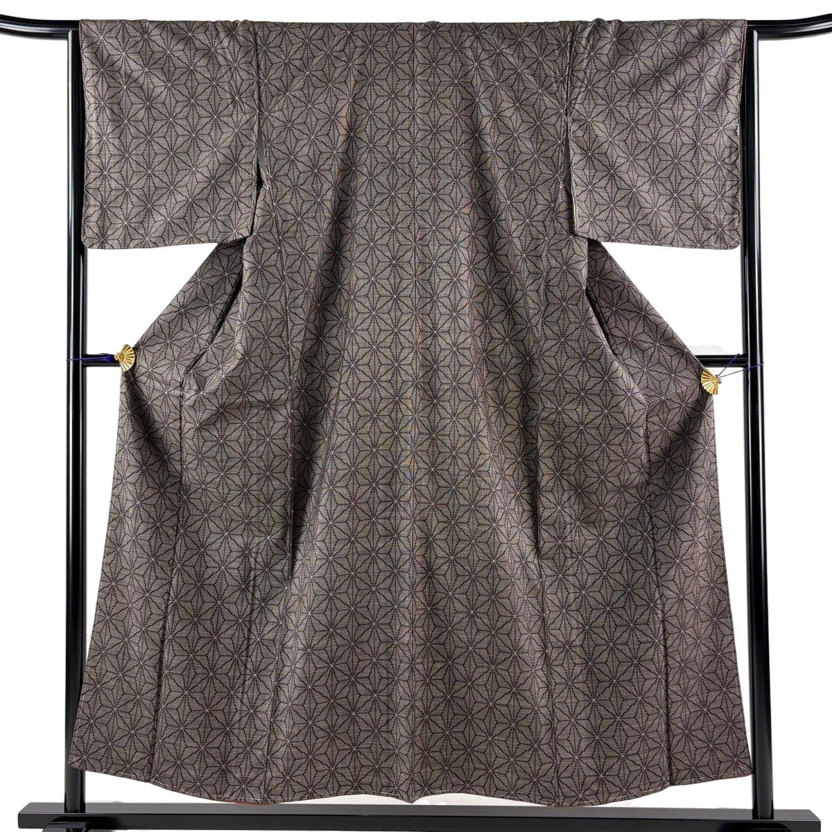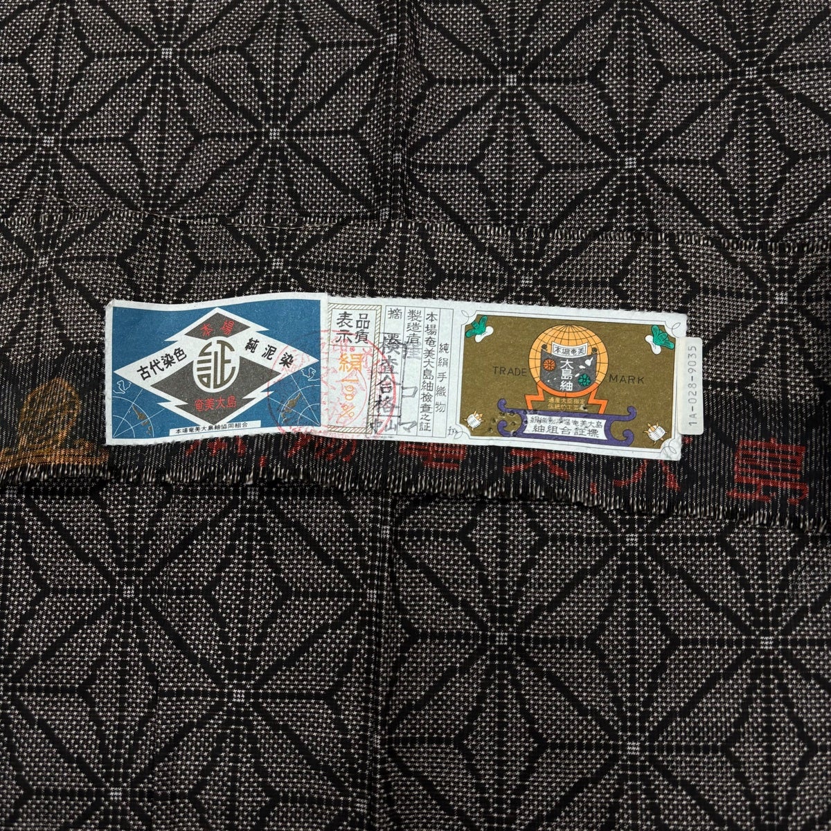 【美品】 大島紬 身丈154cm 裄丈65cm M 袷 純泥染 証紙あり 麻の葉 焦茶色 正絹 秀品