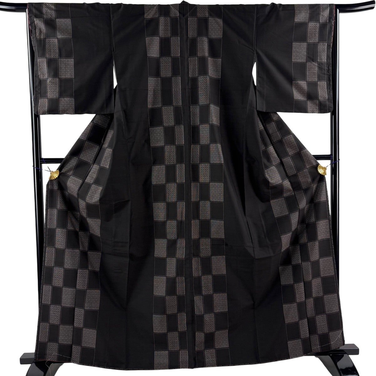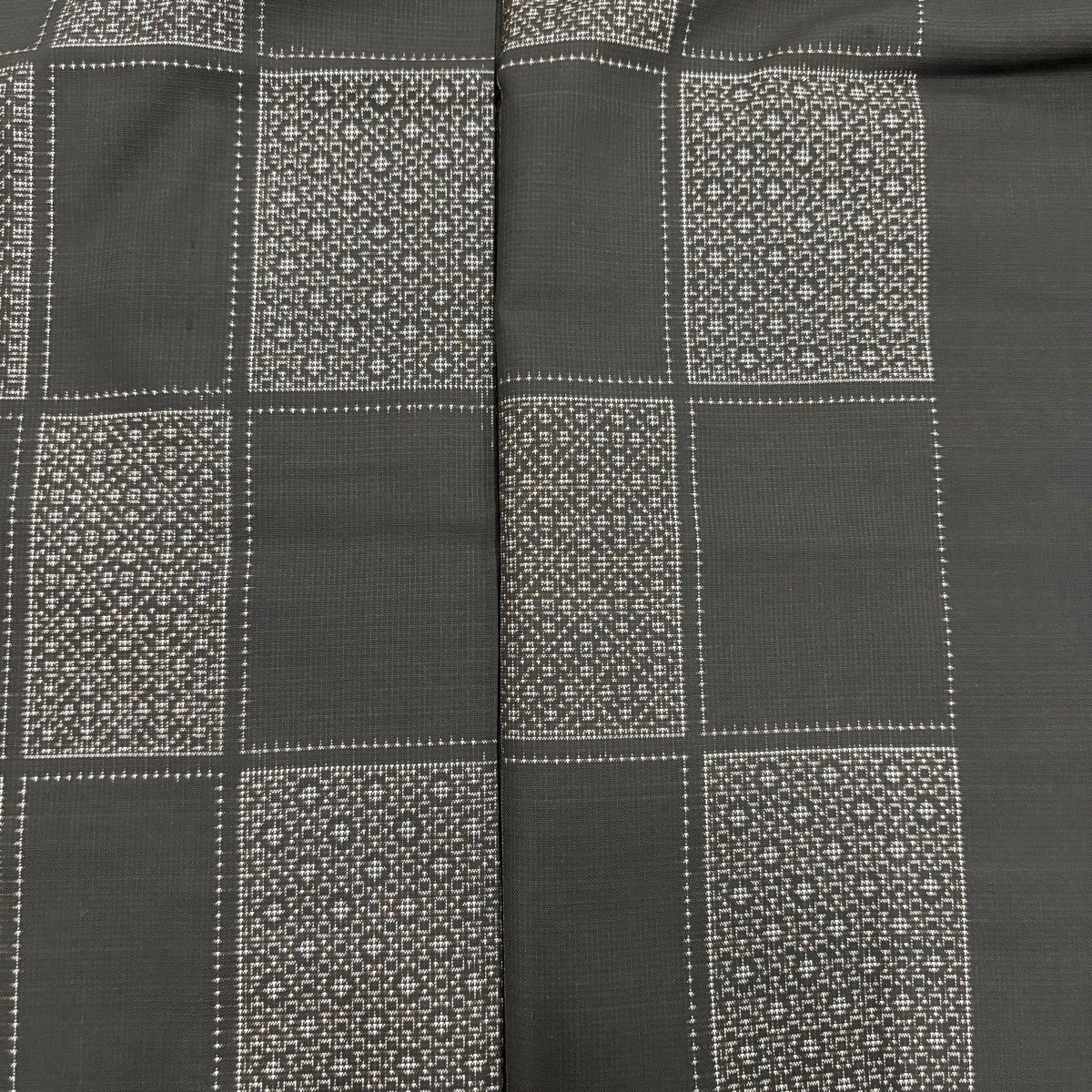 【美品】 大島紬 身丈163.5cm 裄丈66cm M 袷 純泥染 証紙あり 変わり市松 幾何学 焦茶色 正絹 秀品