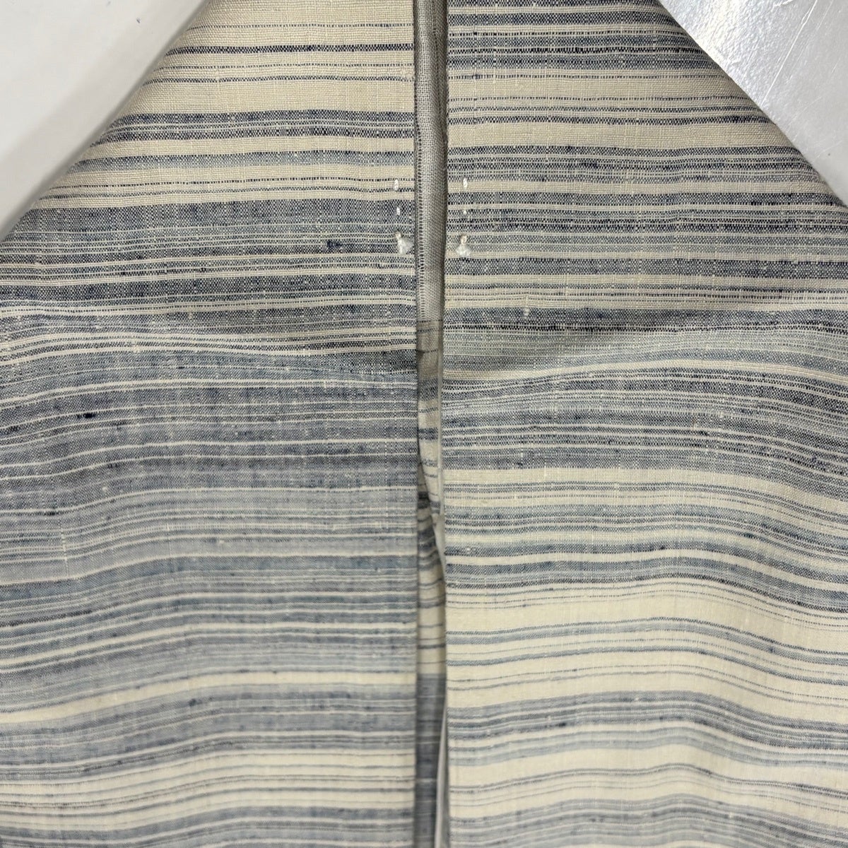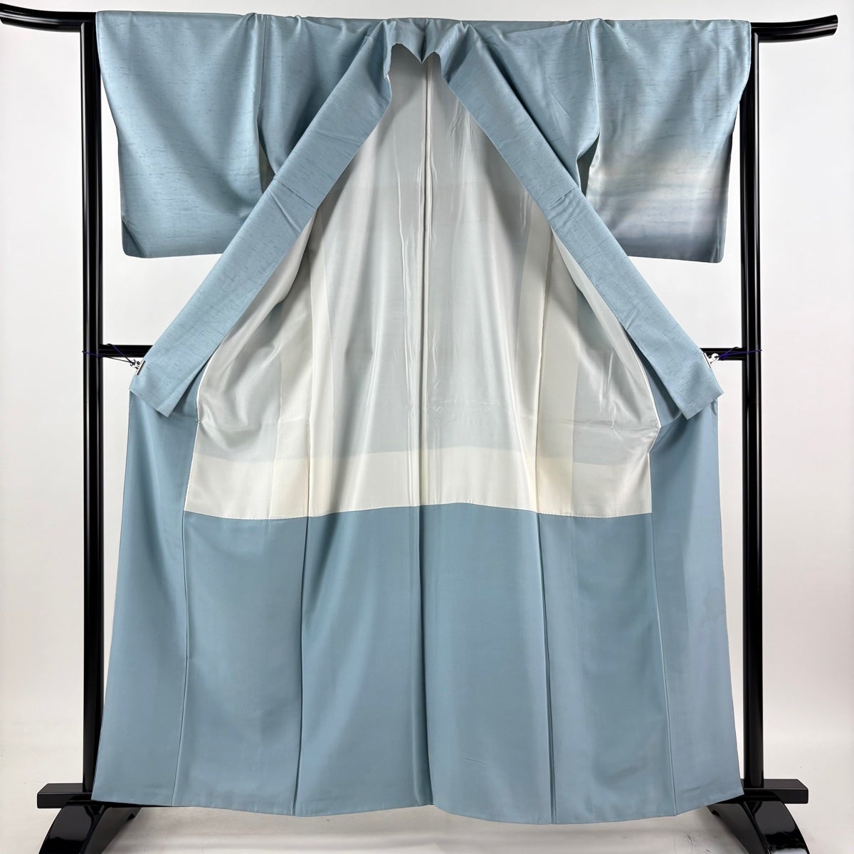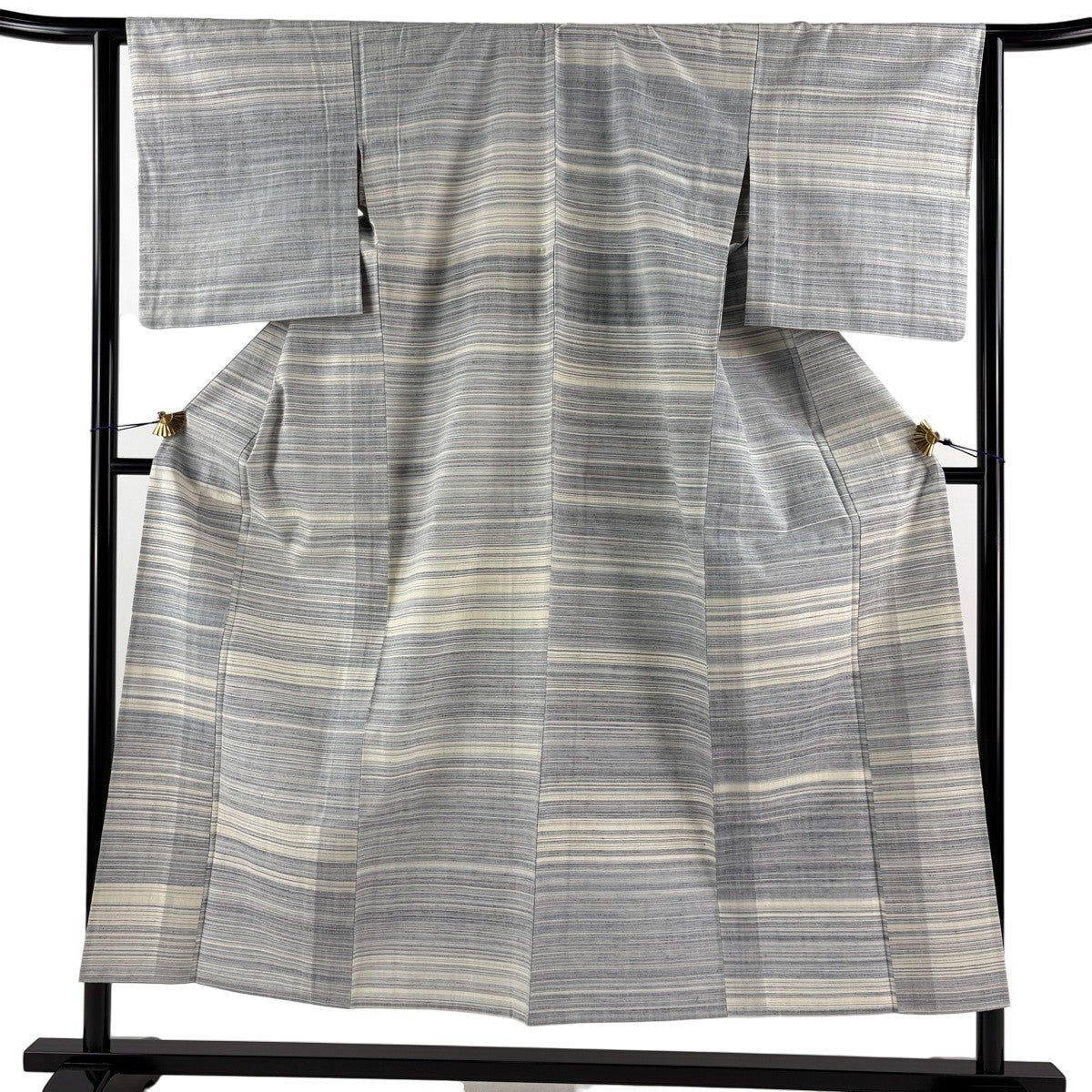 結城紬 身丈150.5cm 裄丈63.5cm S 単衣 本場結城紬 宮崎株式会社 証紙あり 縞 青灰色 正絹 逸品