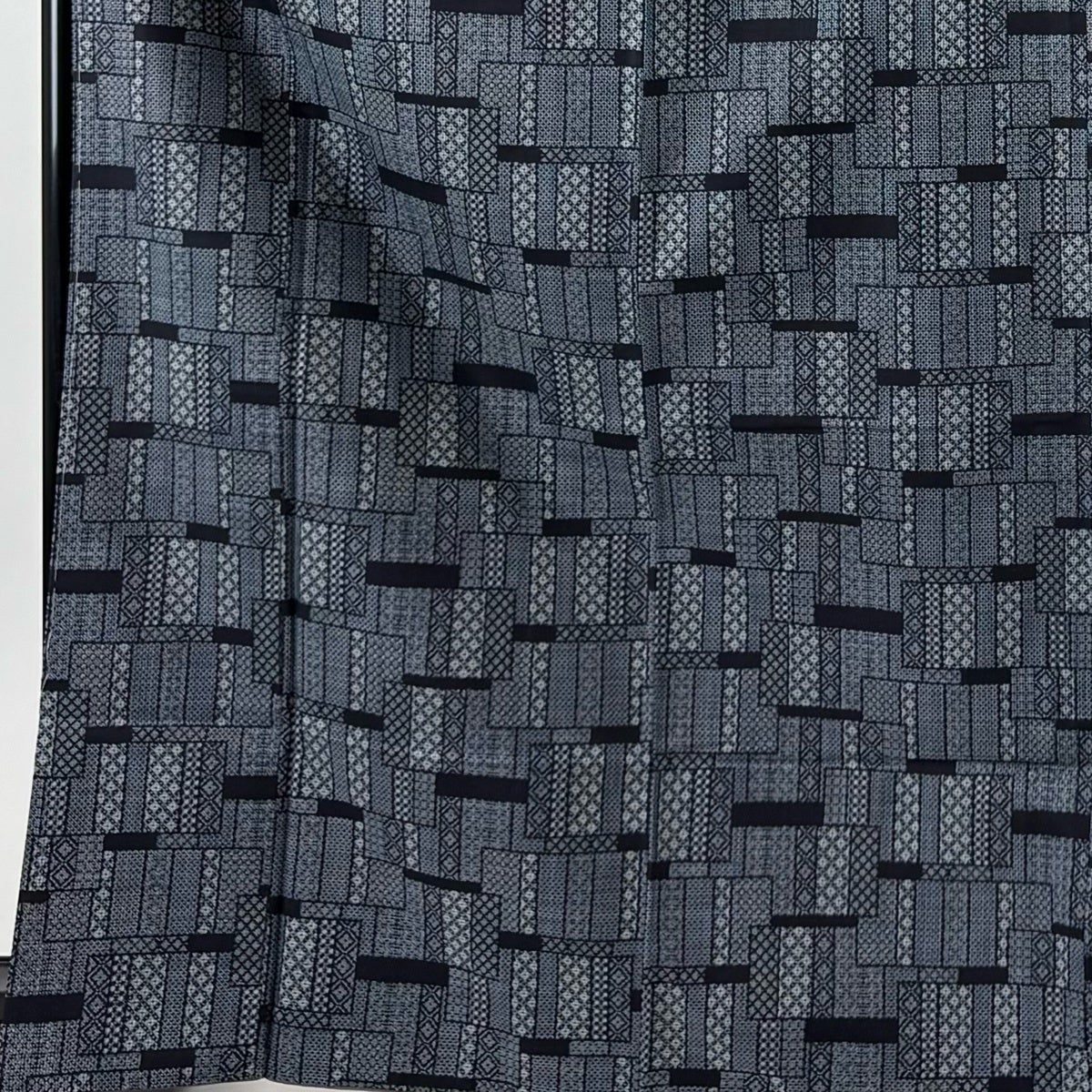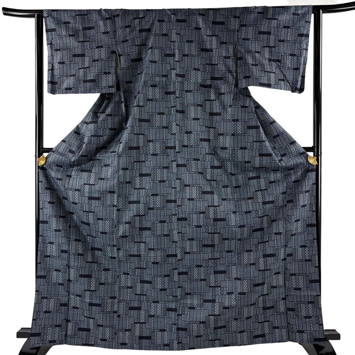 【美品】 大島紬 身丈167cm 裄丈62.5cm S 袷 証紙あり 幾何学模様 菱 青灰色 正絹 秀品