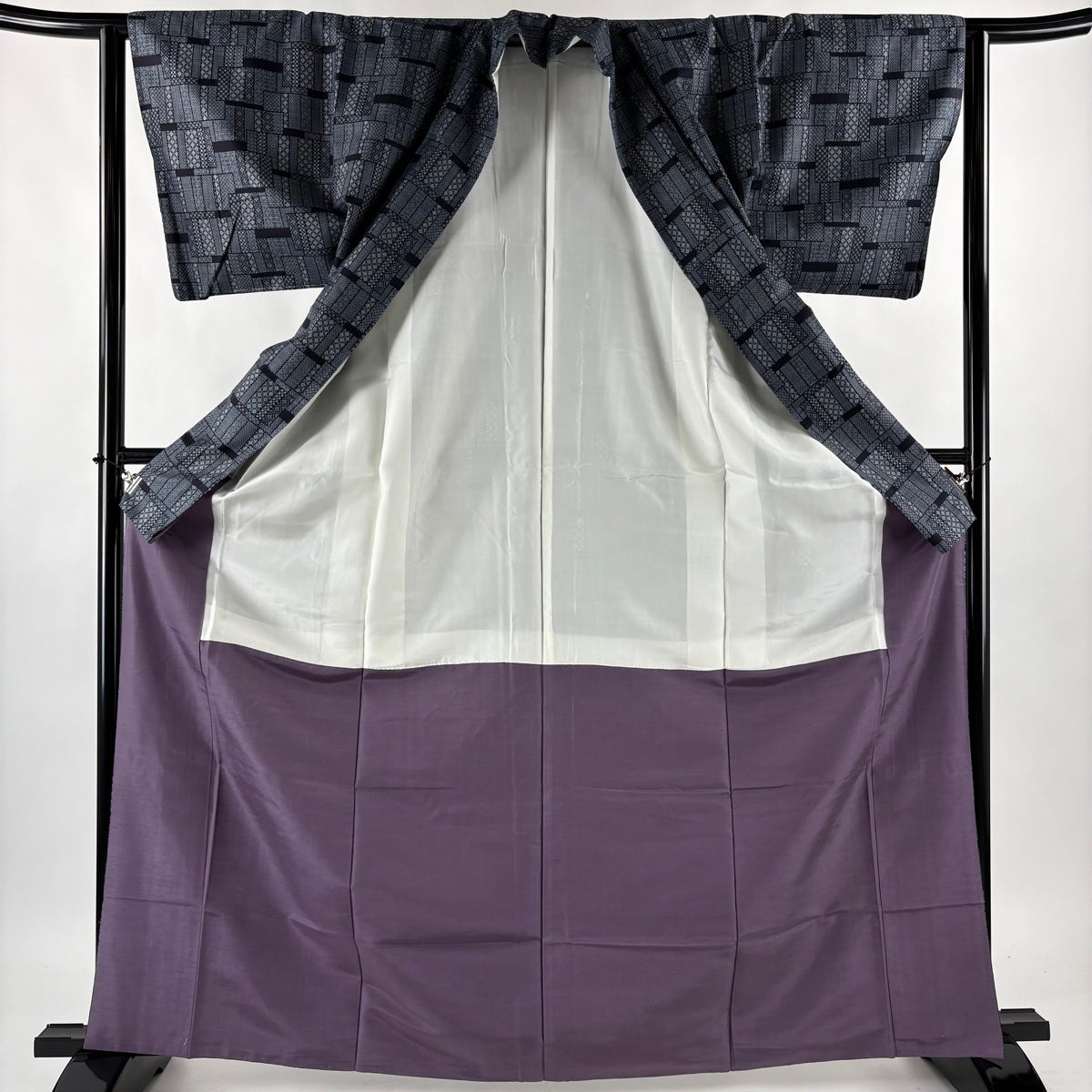 付下げ 身丈151.5cm 裄丈63.5cm S 袷 能州紬地 落款あり 渦巻き 幾何学模様 金銀糸 青紫 正絹 名品
