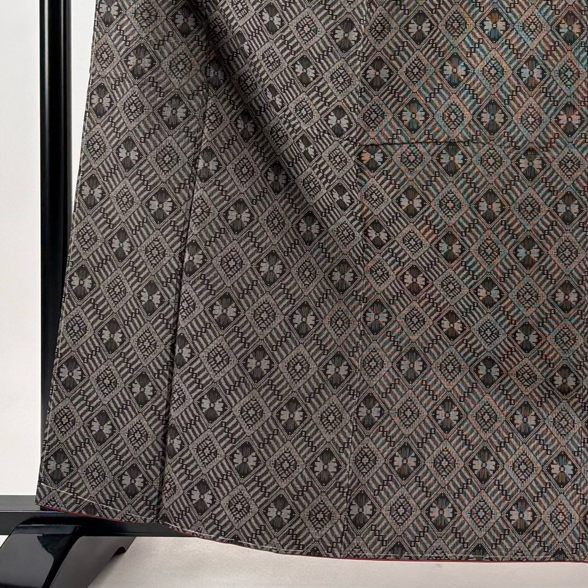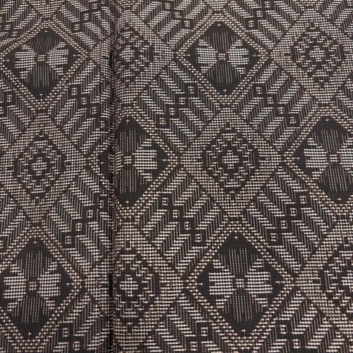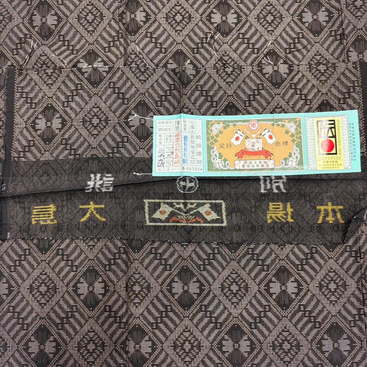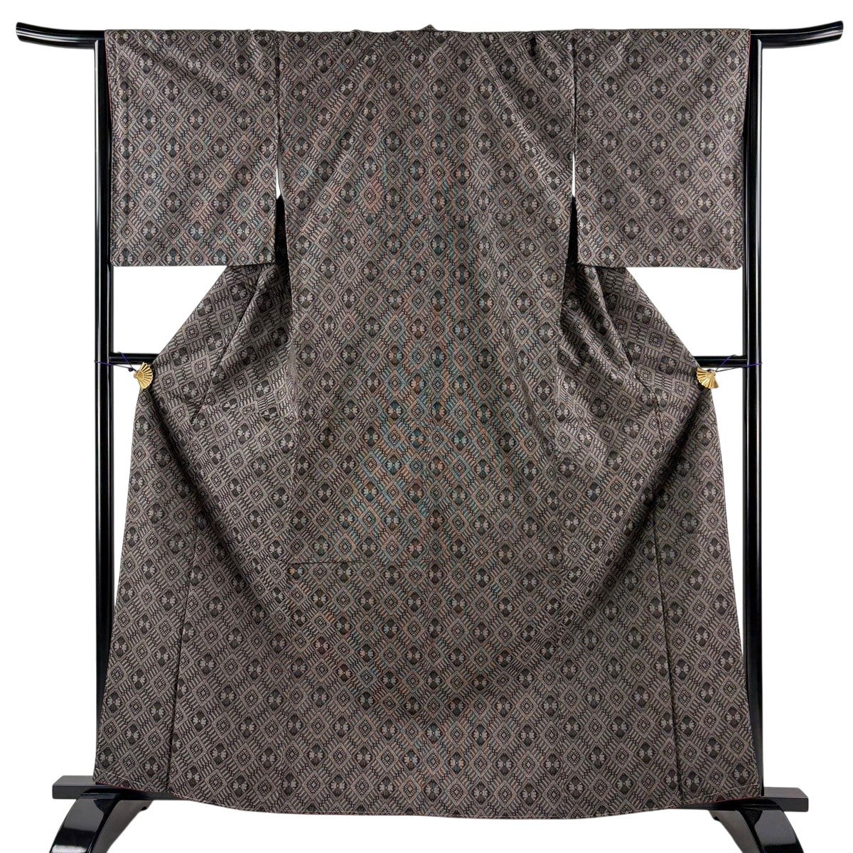 【美品】 大島紬 身丈163.5cm 裄丈66cm M 袷 ますいわ屋 証紙あり 菱 幾何学模様 焦茶色 正絹 名品