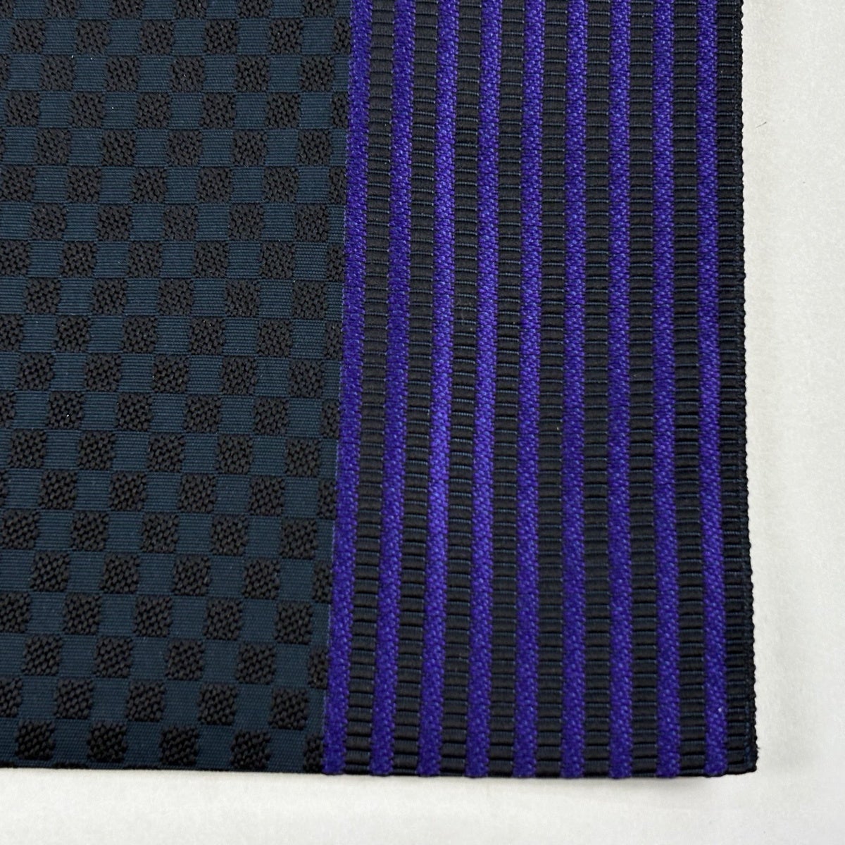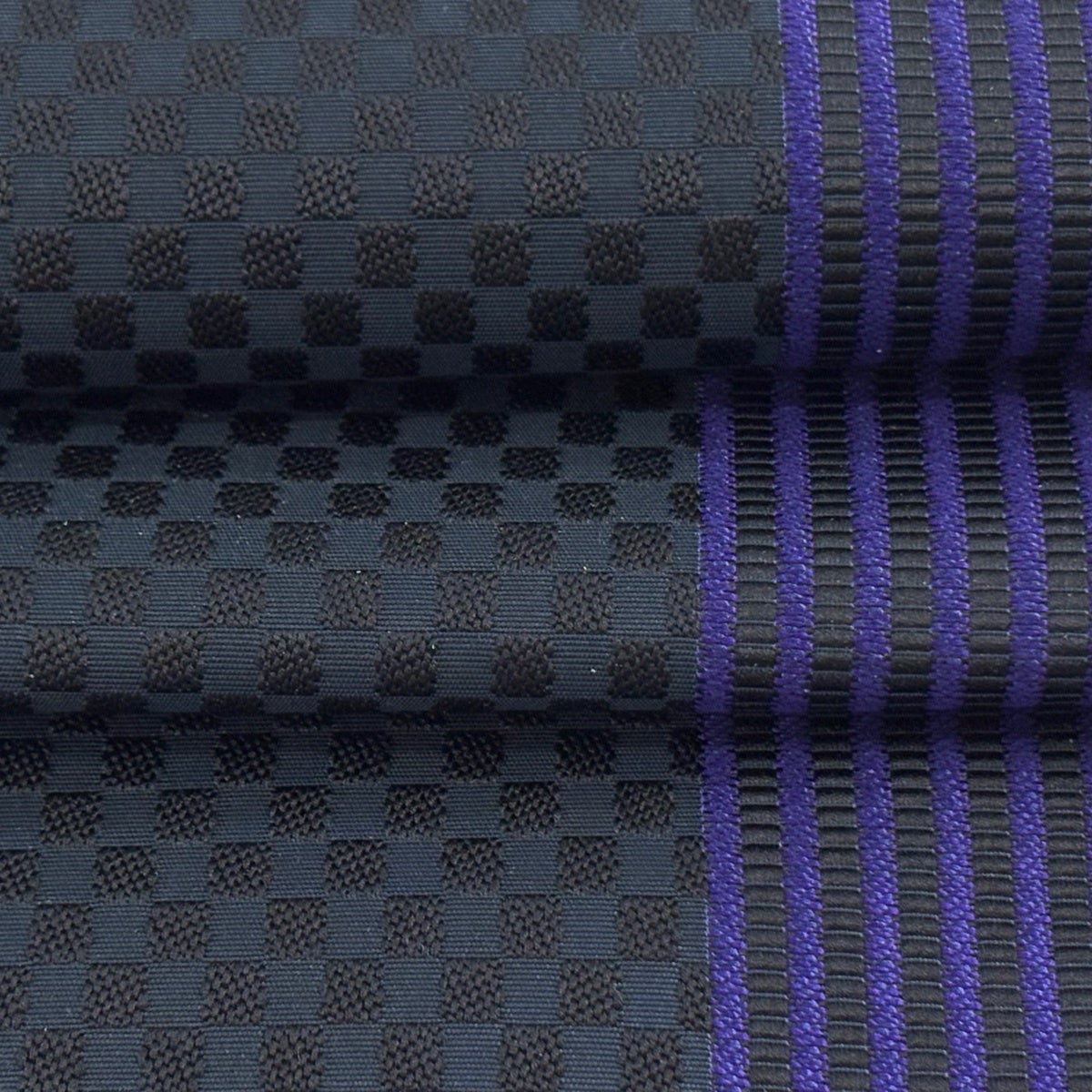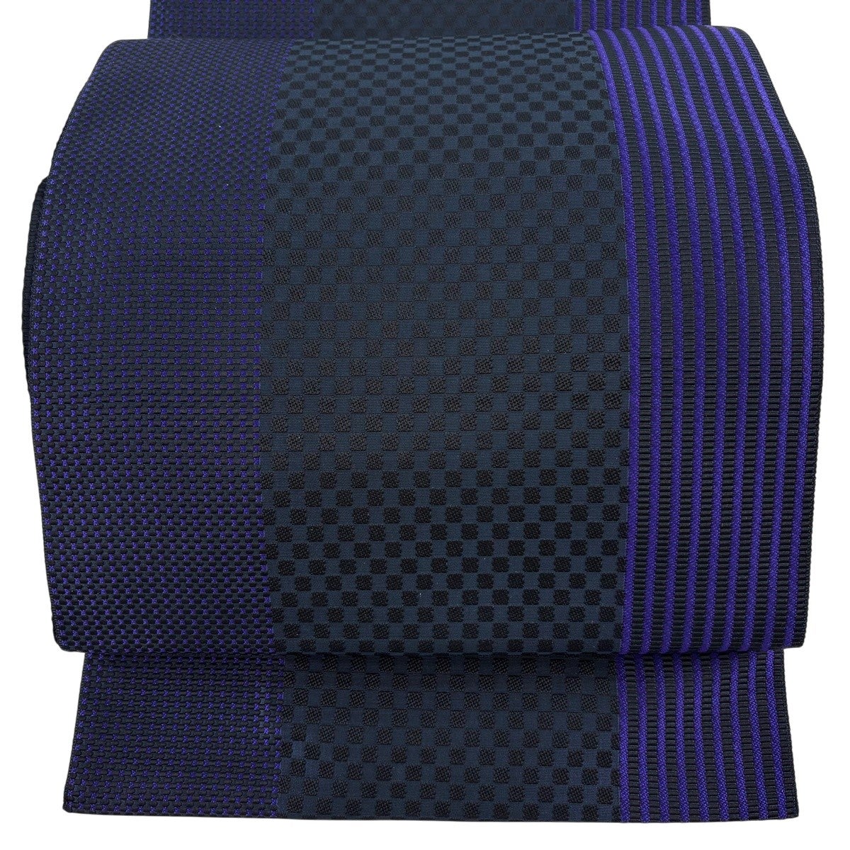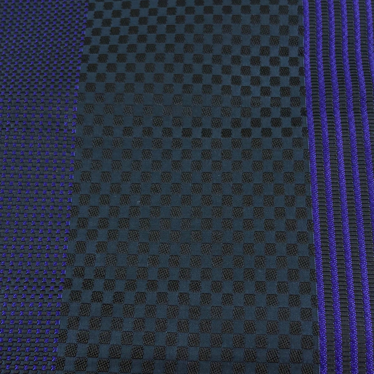 【美品】 名古屋帯 逸品 八寸名古屋帯 松葉仕立て やまと 市松模様 縞模様 紫 正絹