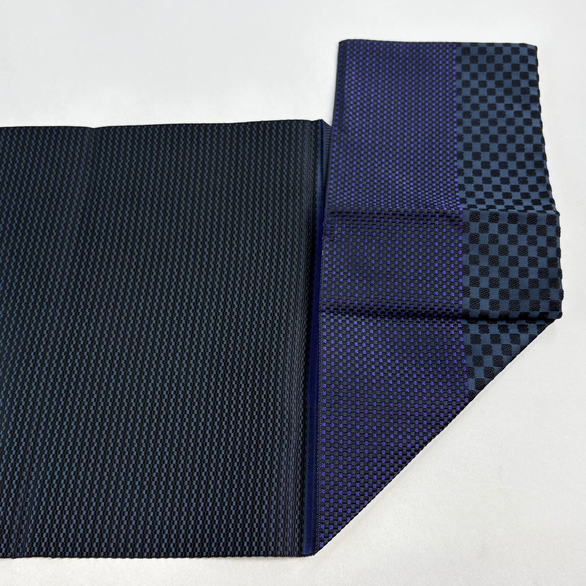 【美品】 開き名古屋帯 逸品 八寸名古屋帯 菱文 幾何学模様 濃紫 正絹