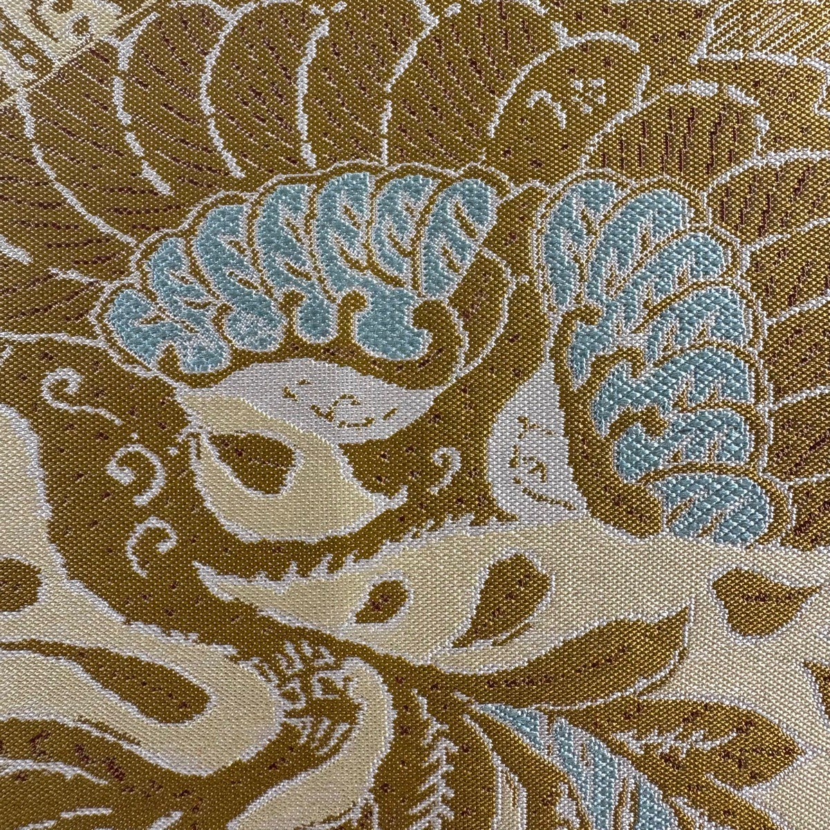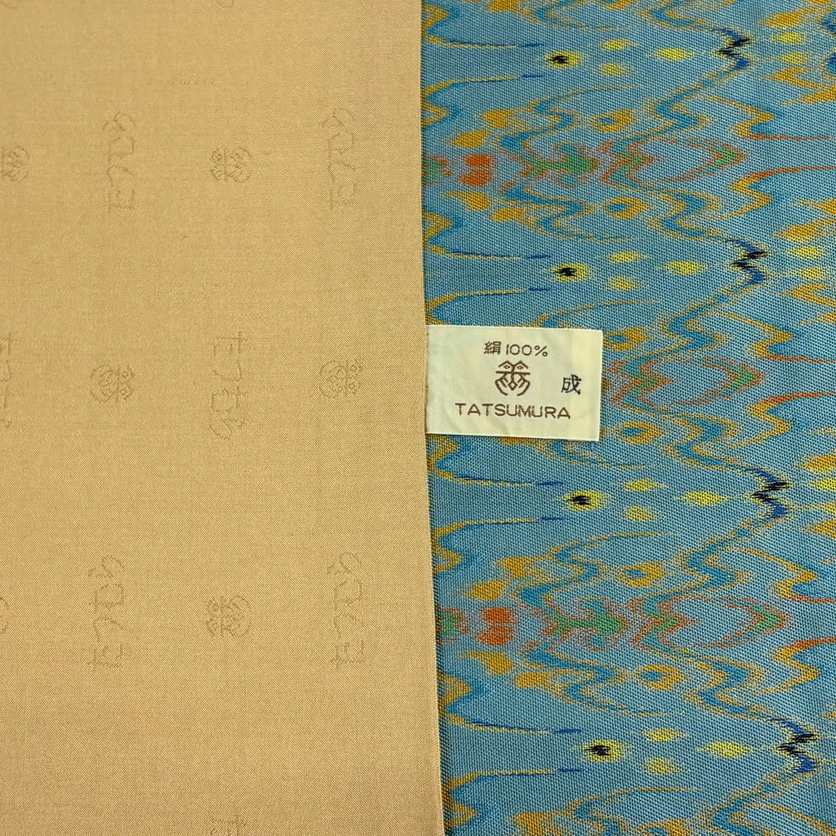 【美品】 開き名古屋帯 逸品 龍村美術織物 証紙あり 比翼仕立て 獅噛太子 水色 正絹