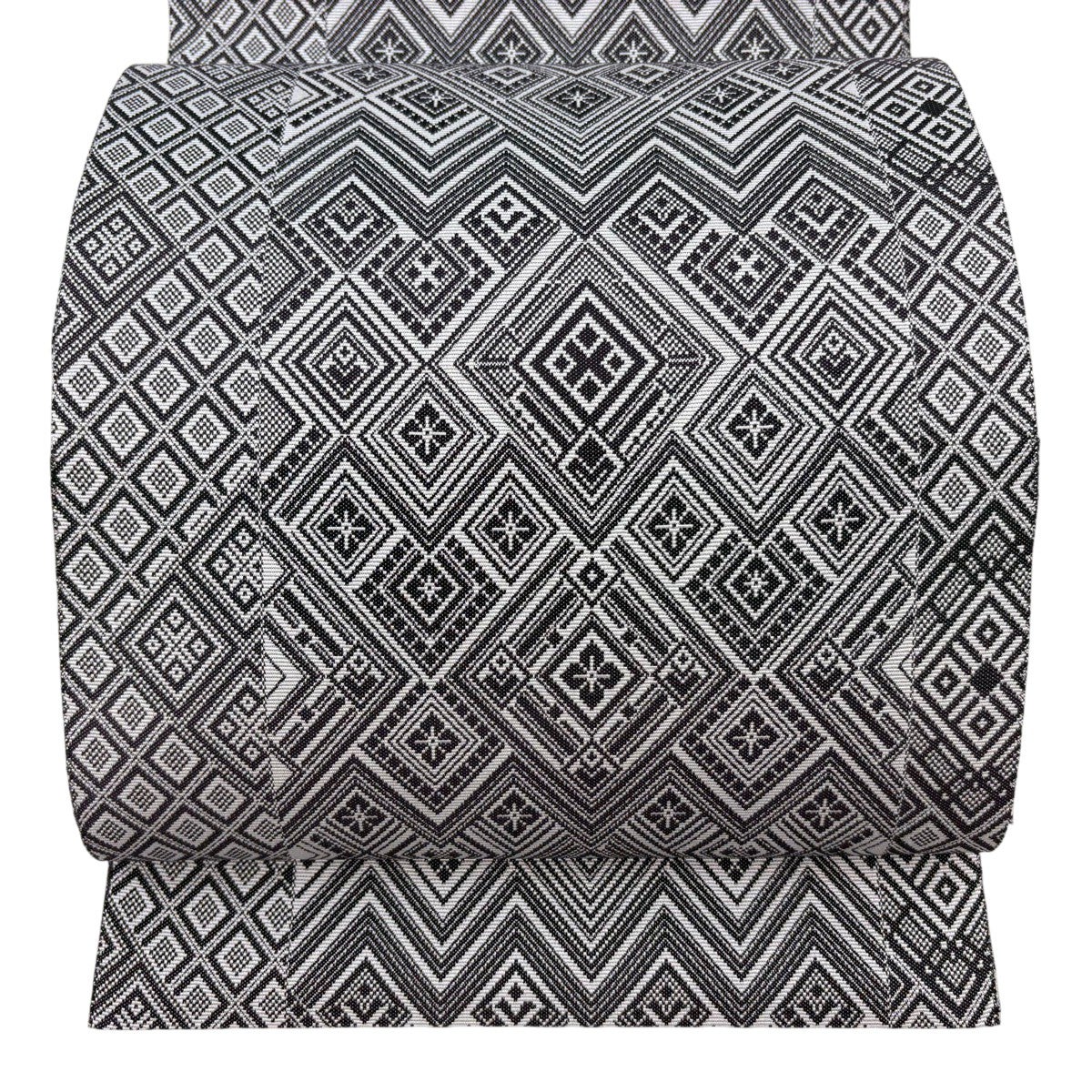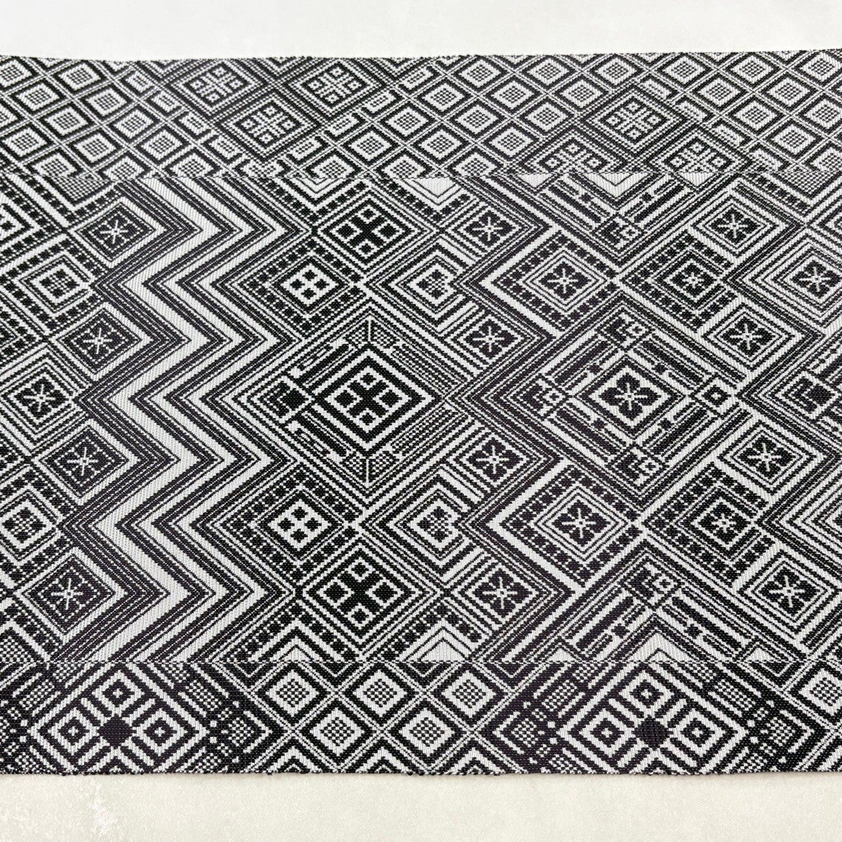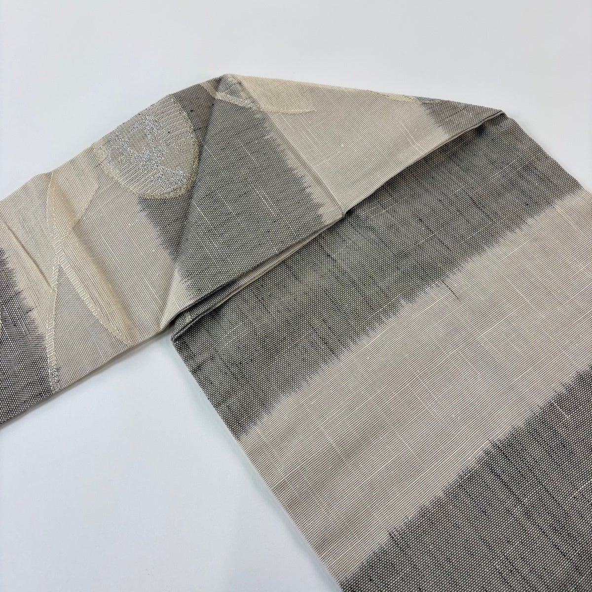 【美品】半幅帯 優品 鱗 縞 黒灰 化繊
