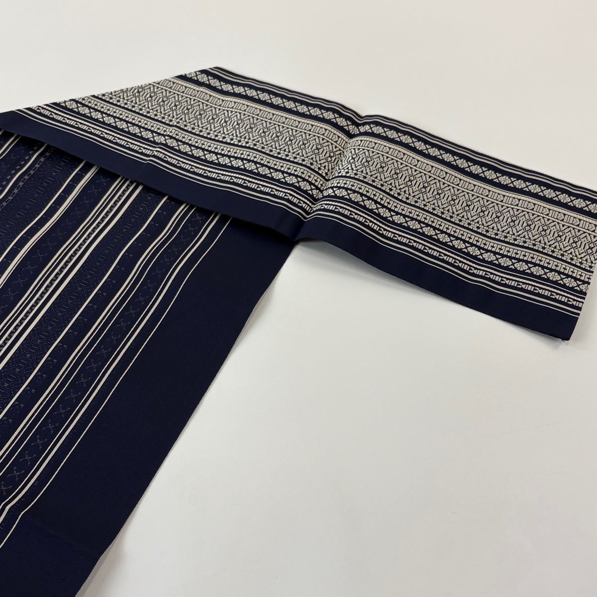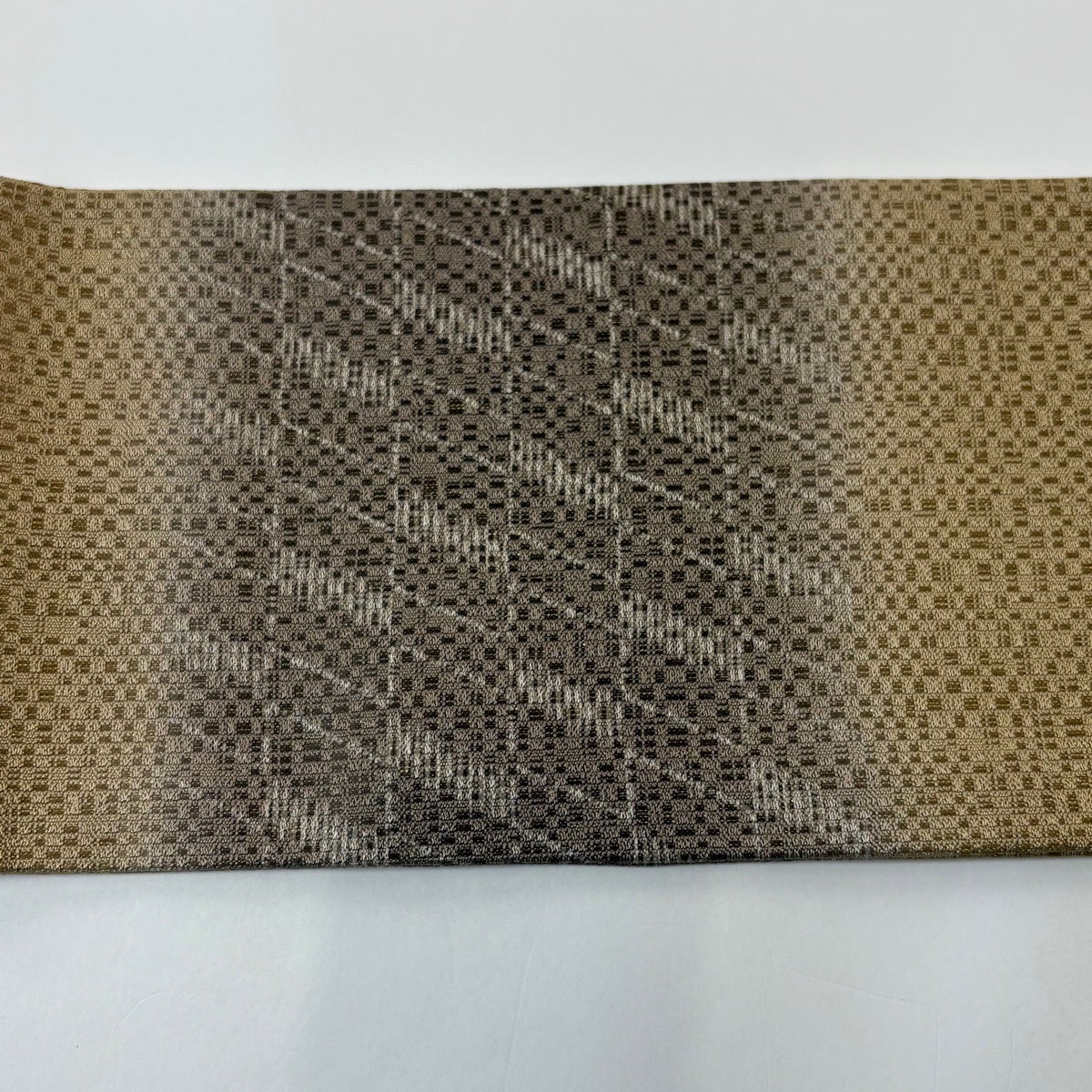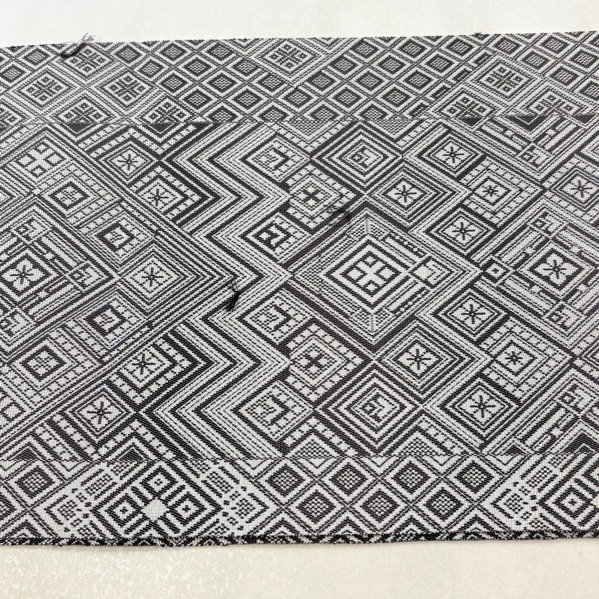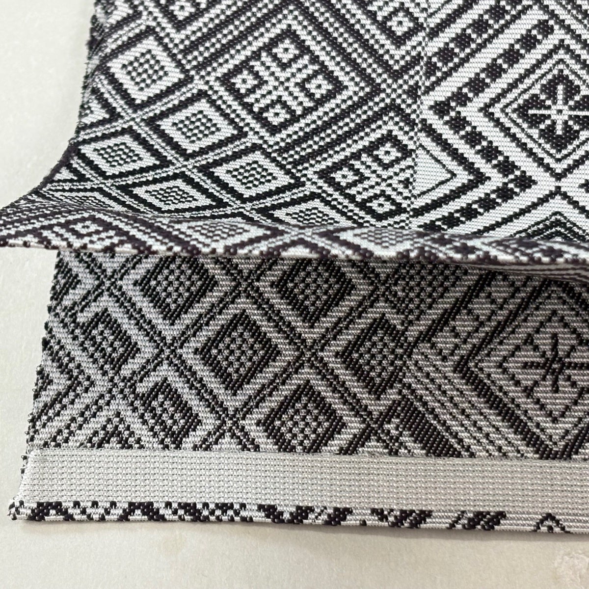 【美品】半幅帯 優品 鱗 縞 黒灰 化繊
