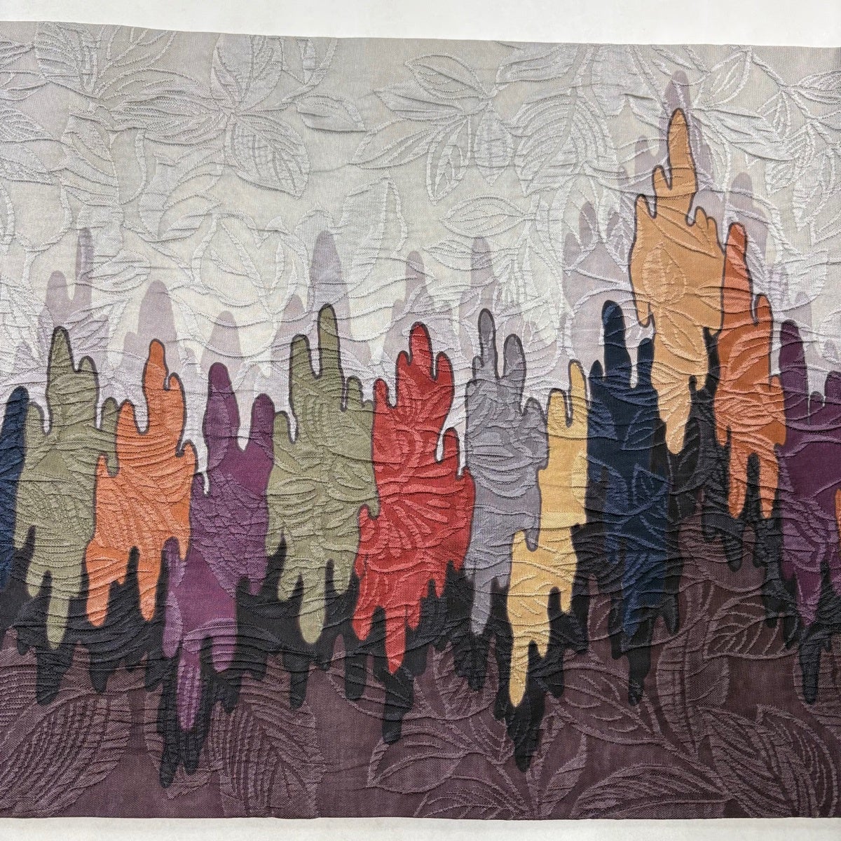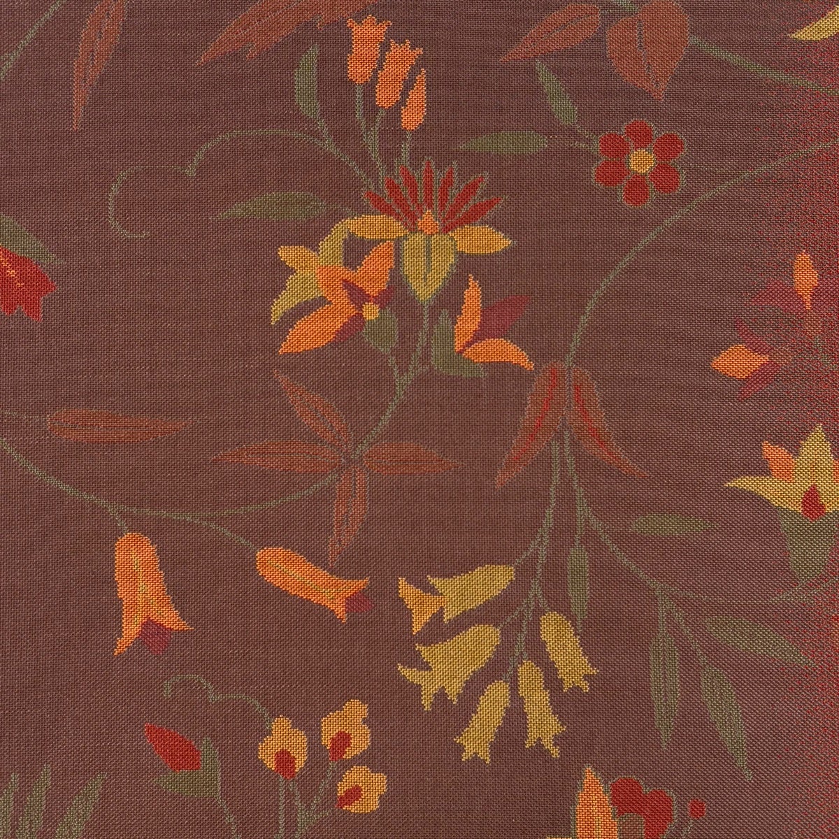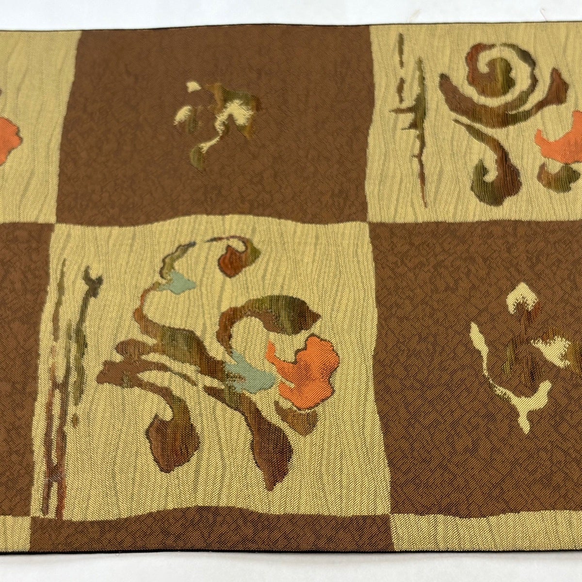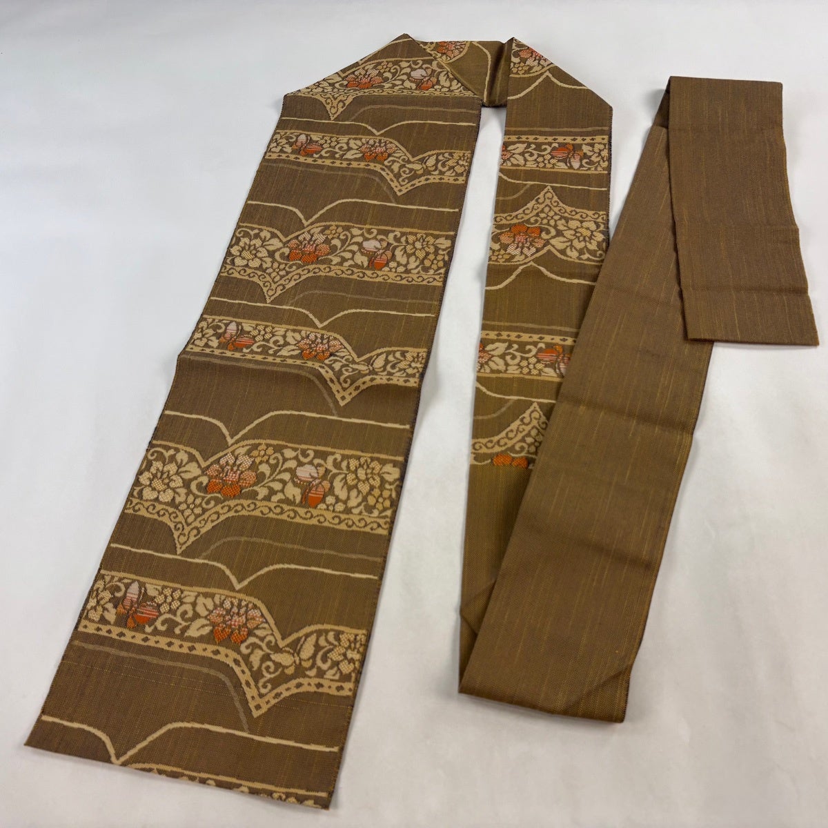 【美品】 袋帯 逸品 落款あり 牛首紬地 葉柄 シルエット 金彩 茶色 お太鼓柄 正絹