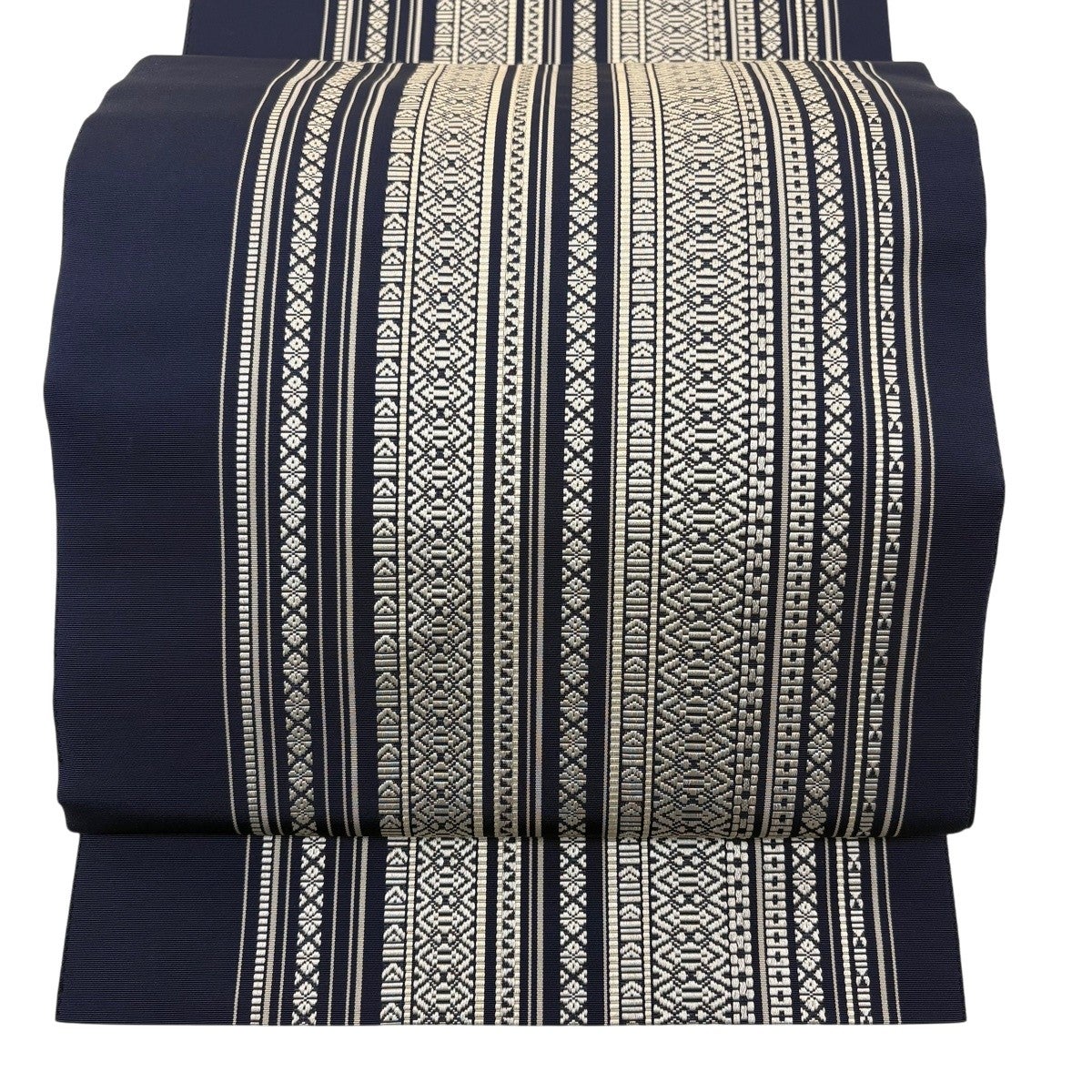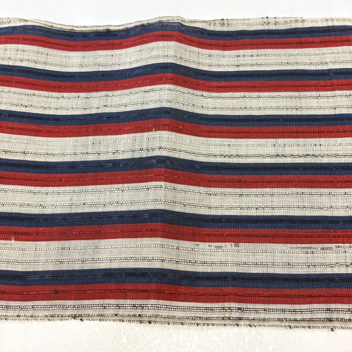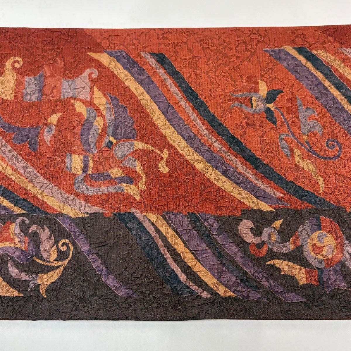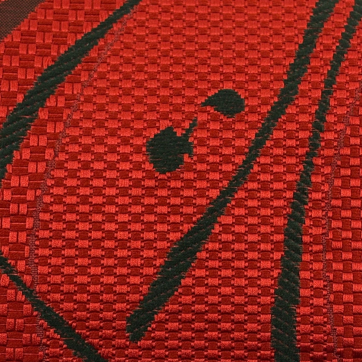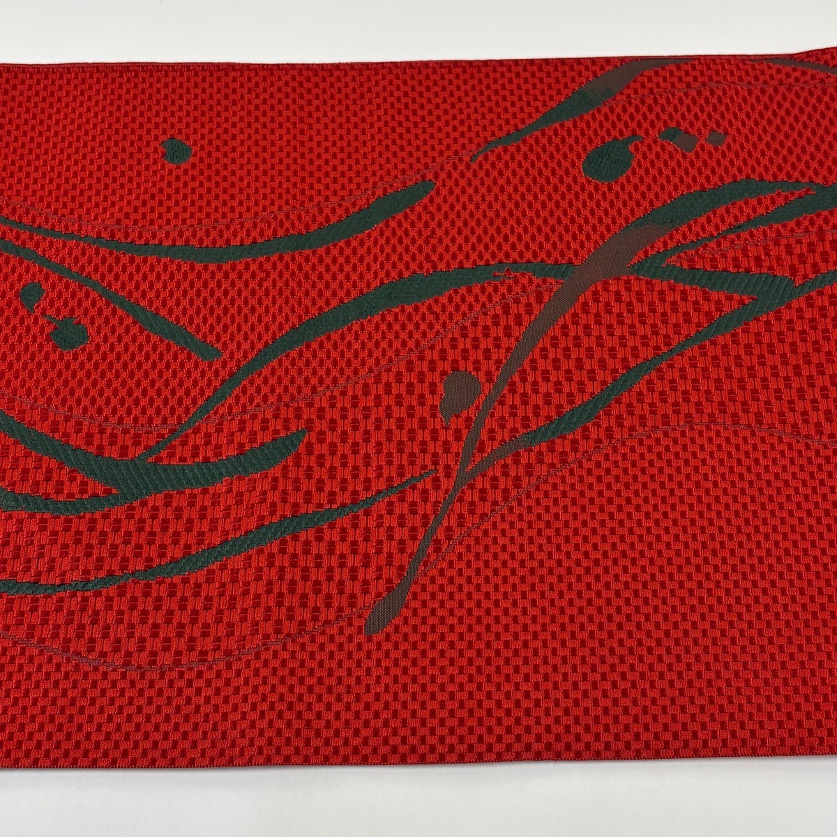 【美品】半幅帯 優品 縞 幾何学模様 えんじ色 化繊