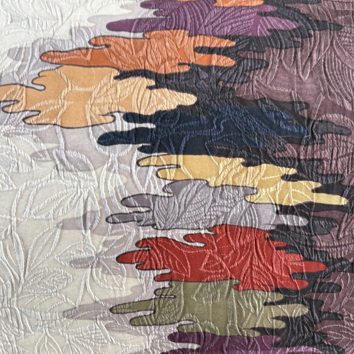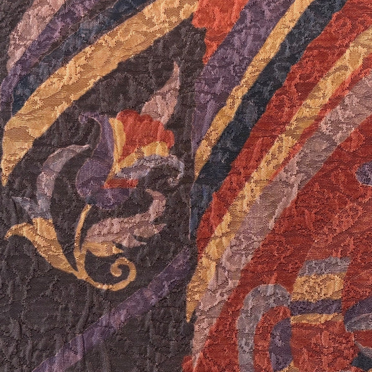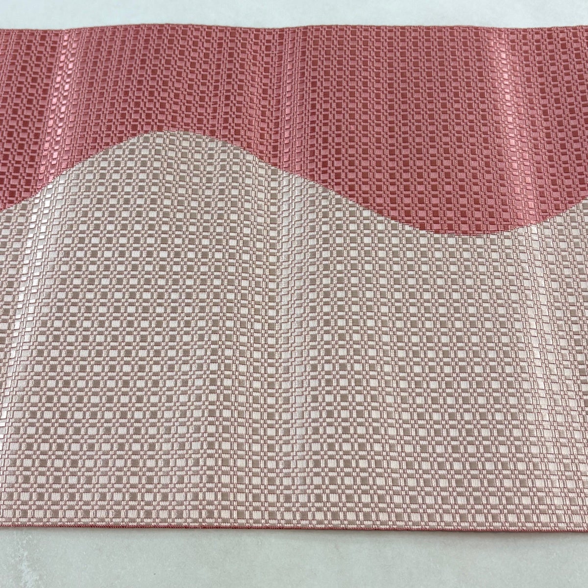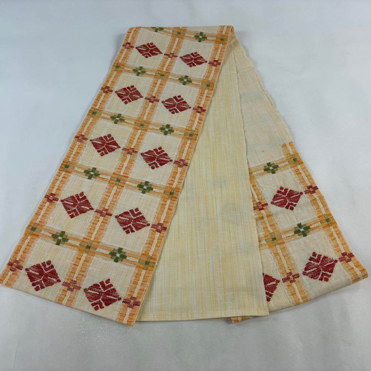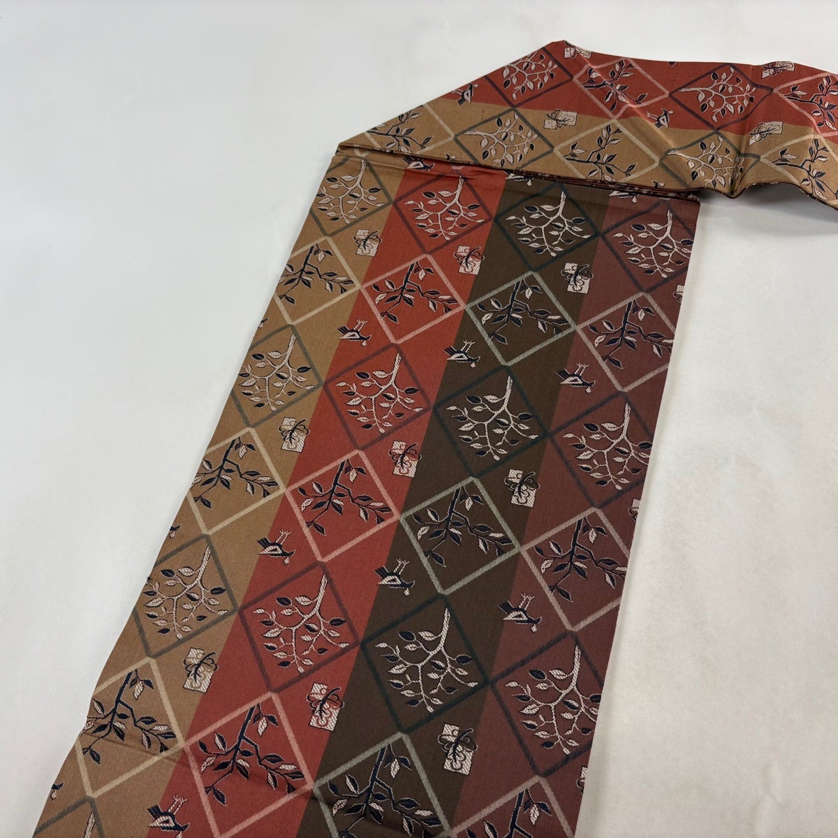 【美品】半幅帯 優品 縞 幾何学模様 えんじ色 化繊