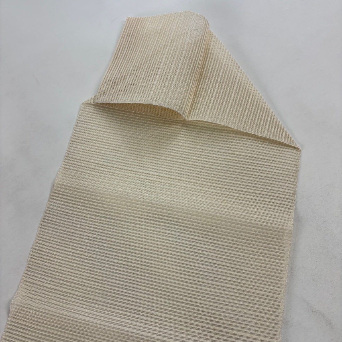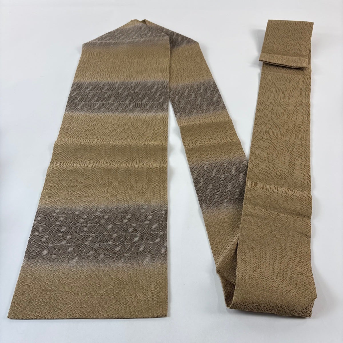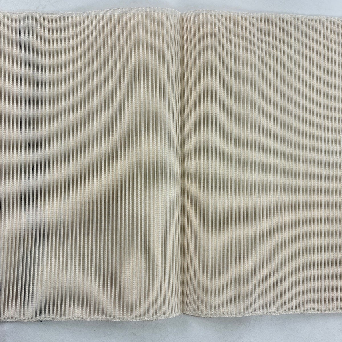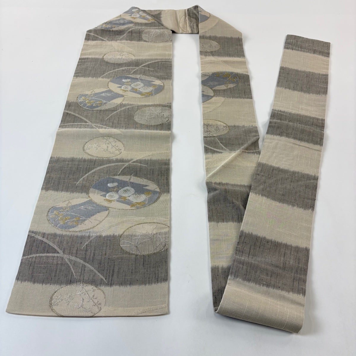【美品】半幅帯 優品 クローバー 縞 薄黄土色 化繊