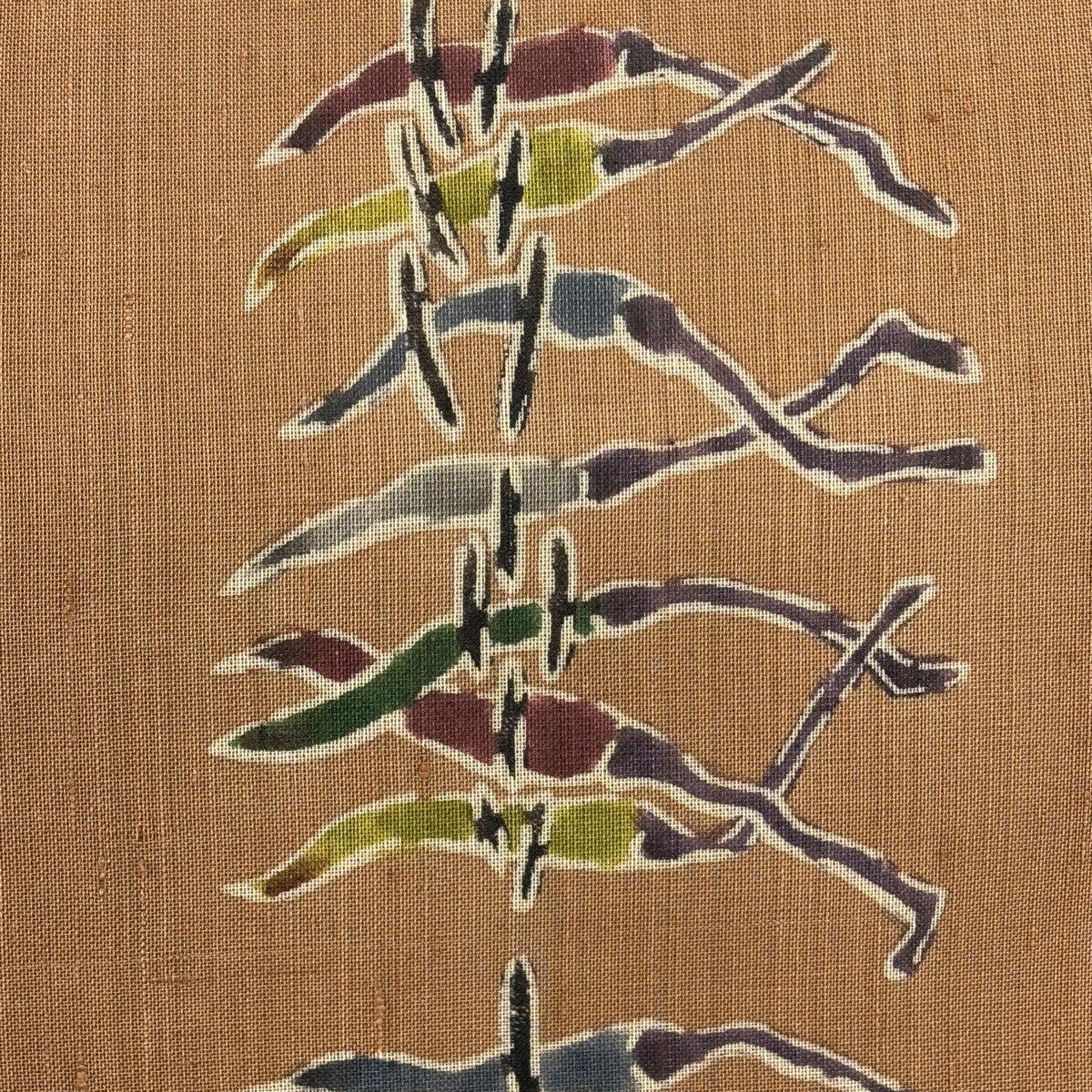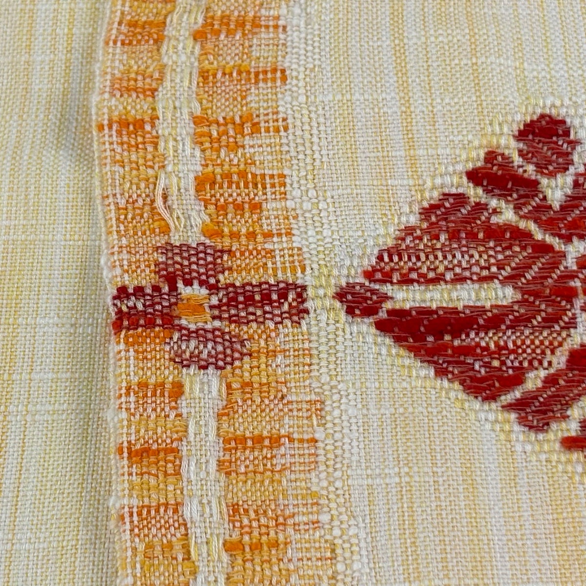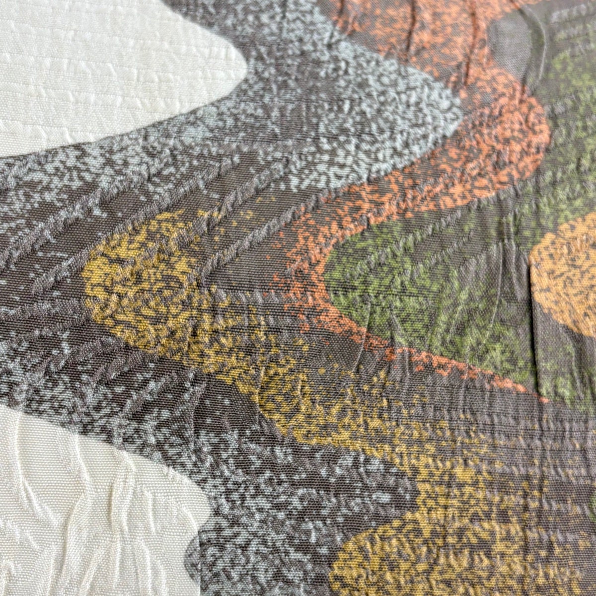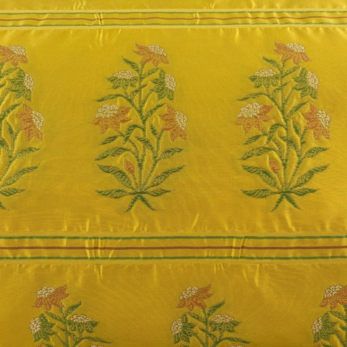 【美品】半幅帯 優品 クローバー 縞 薄黄土色 化繊