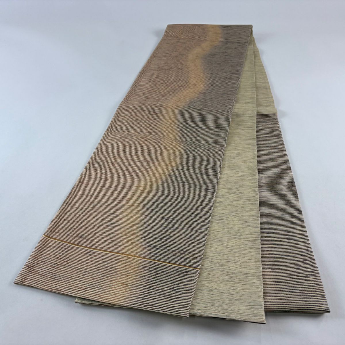 名古屋帯 秀品 落款あり 本郷大田子 渦巻き ぼかし 山吹茶色 正絹