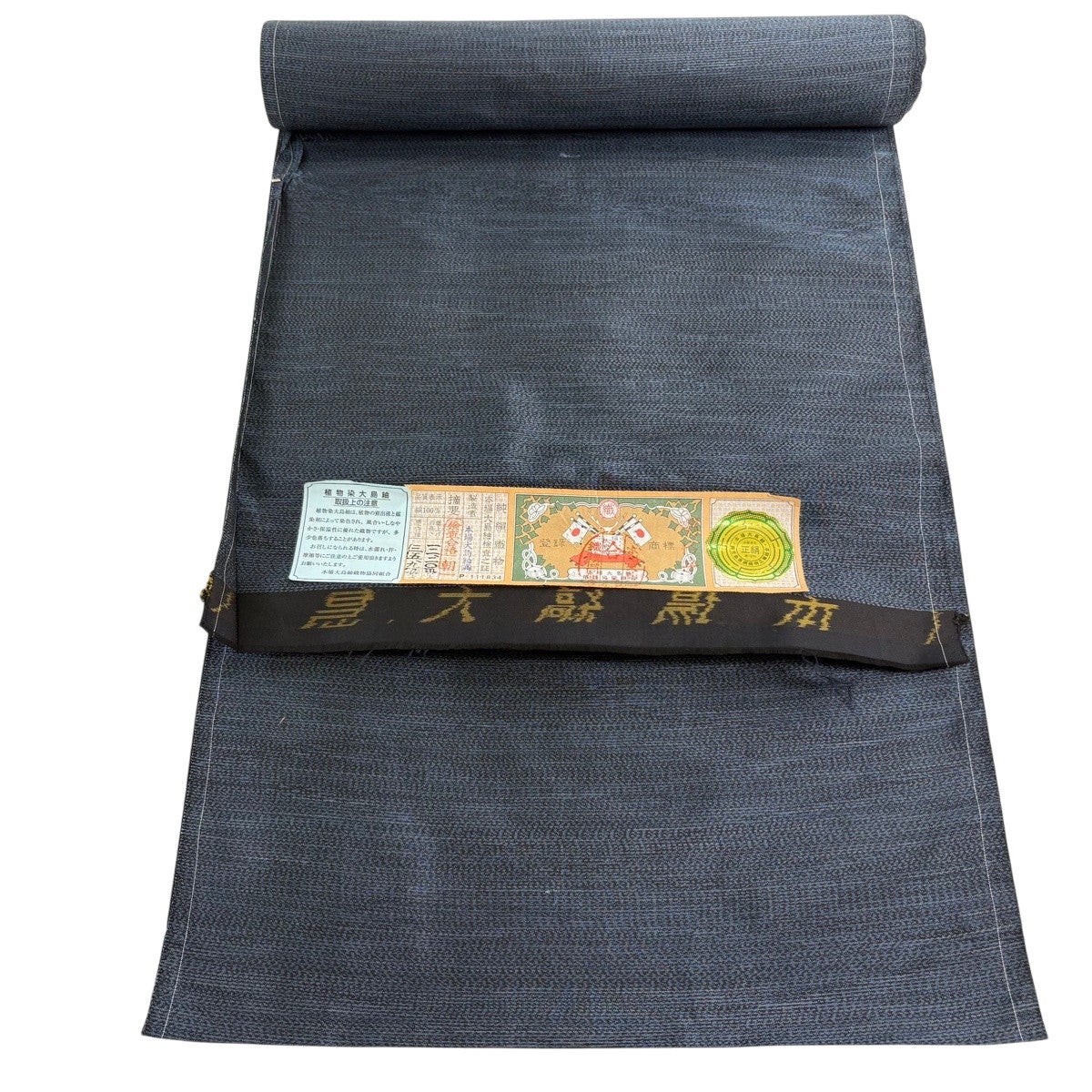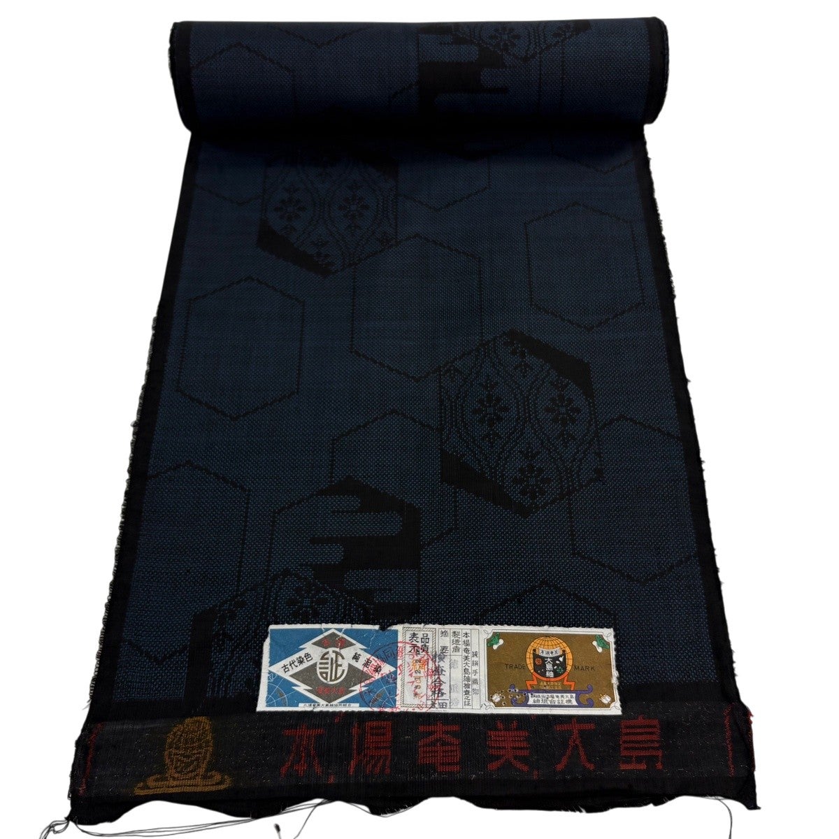 反物 秀品 大島紬 純泥染 証紙 亀甲 草花 紺色 正絹