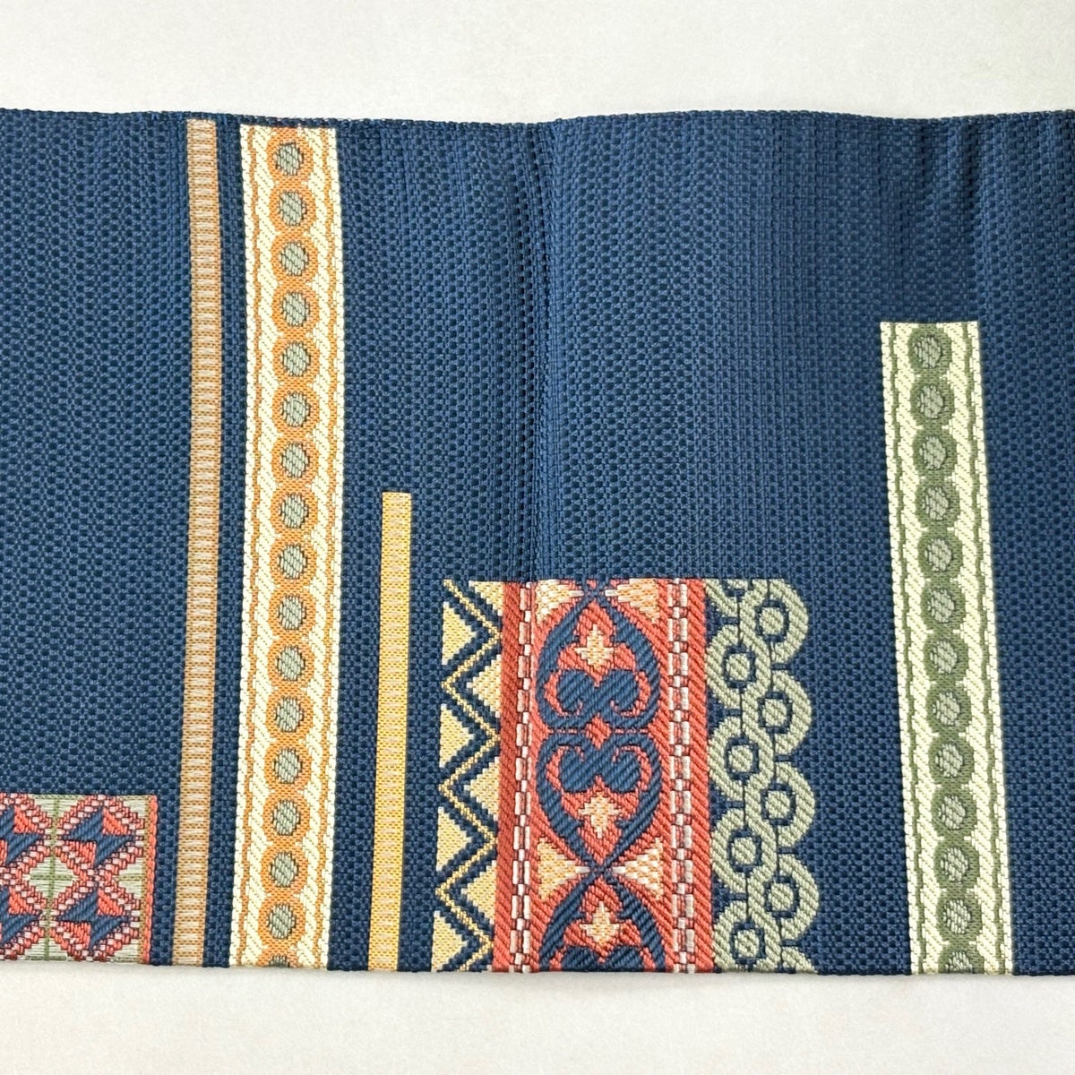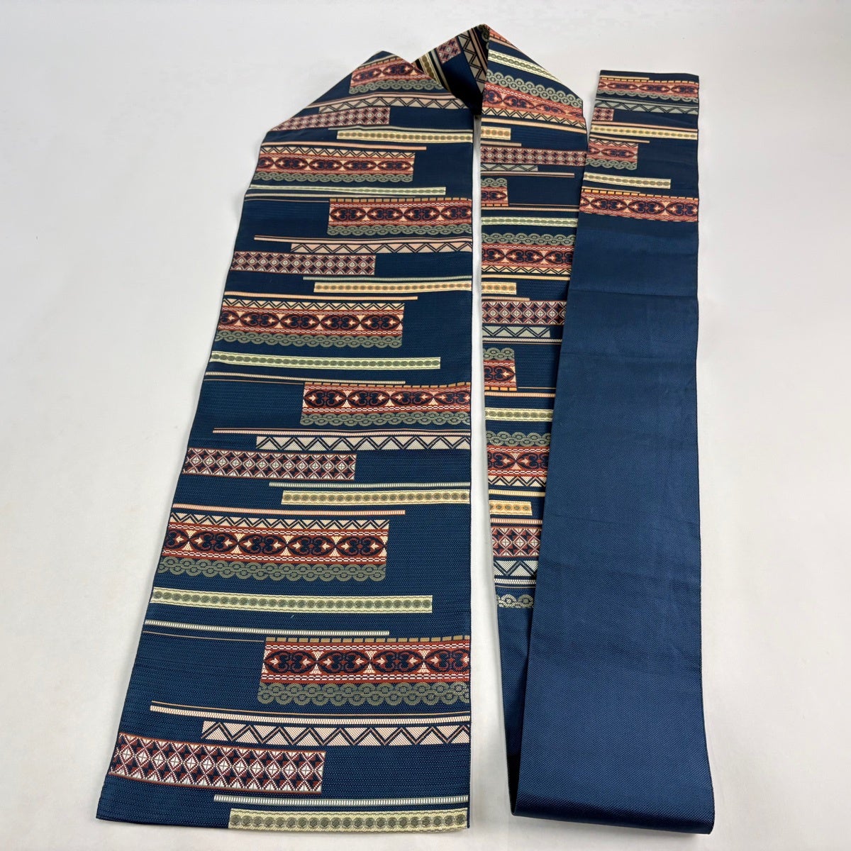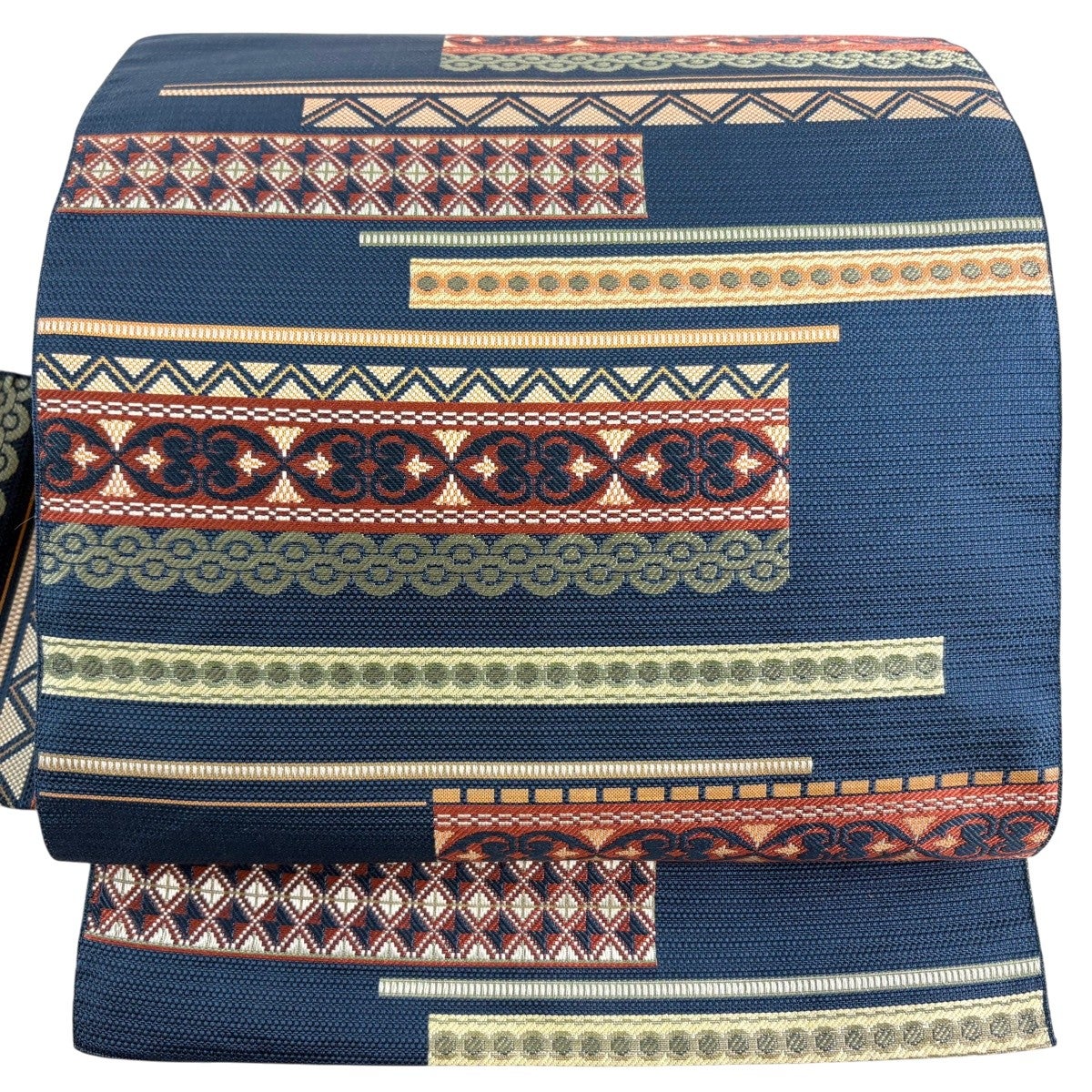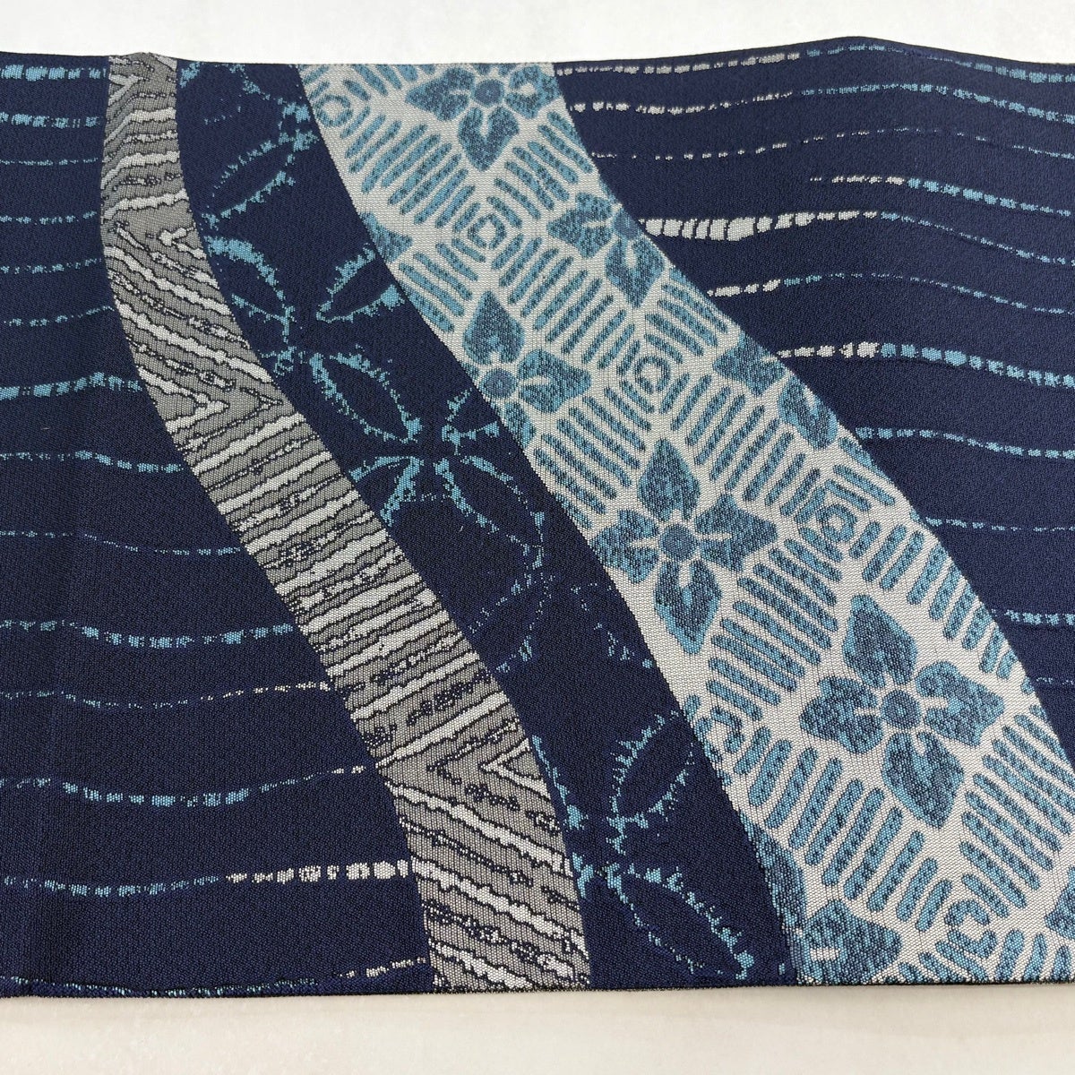 【美品】 名古屋帯 優品 八寸名古屋帯 幾何学模様 紺色 正絹