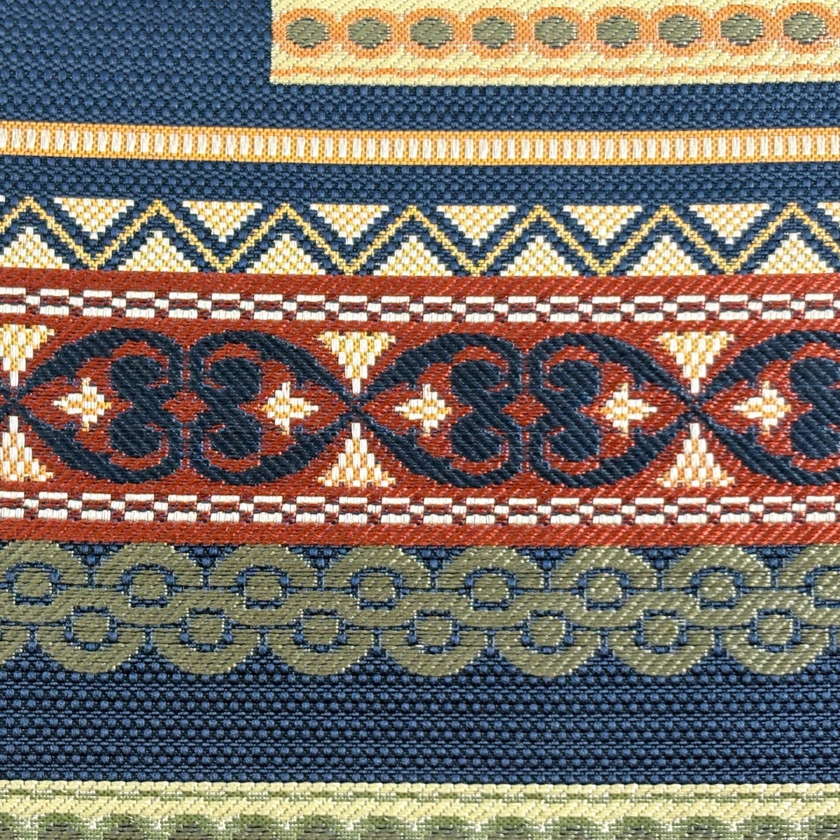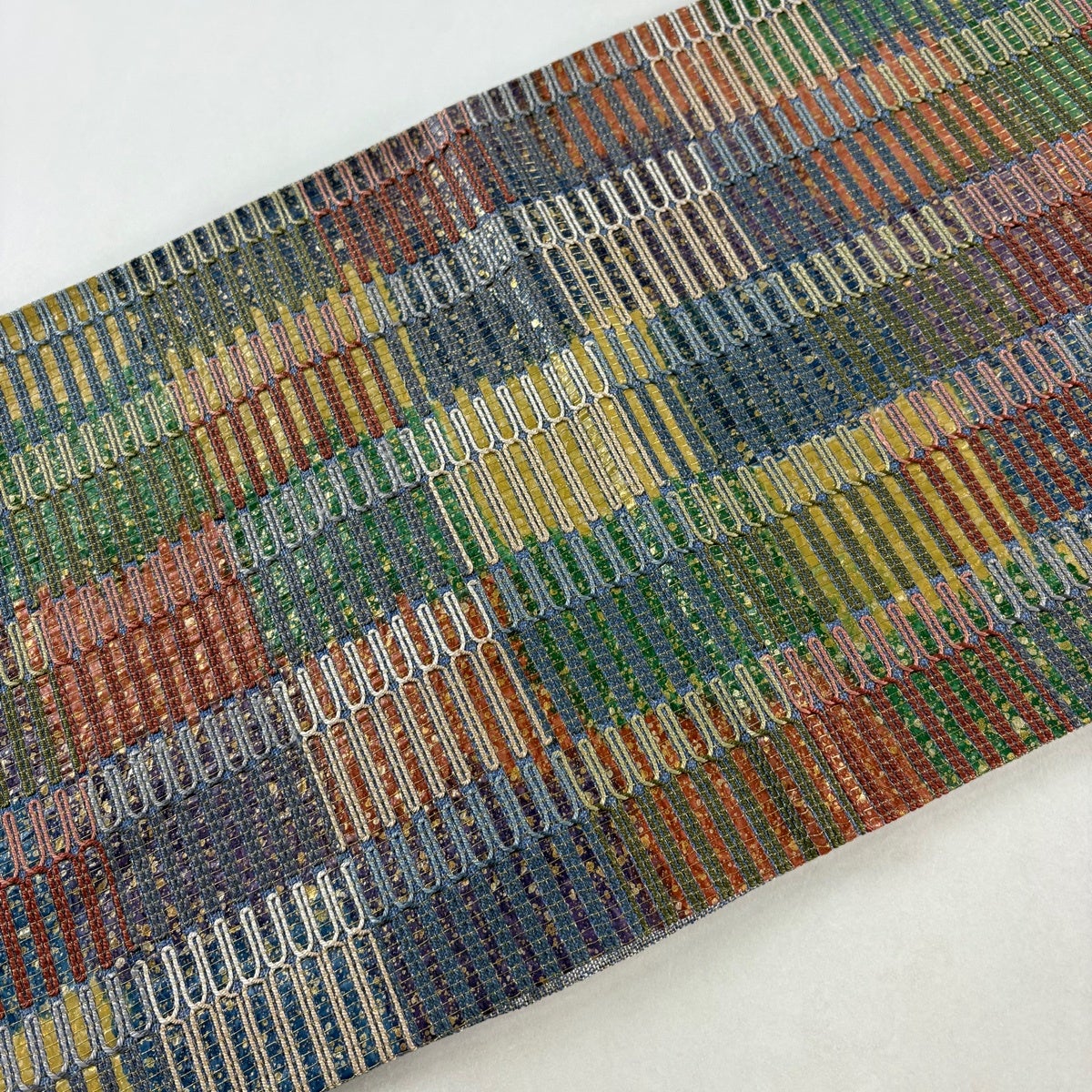 【美品】 袋帯 名品 縞 菱 金糸 紺色 お太鼓柄 正絹