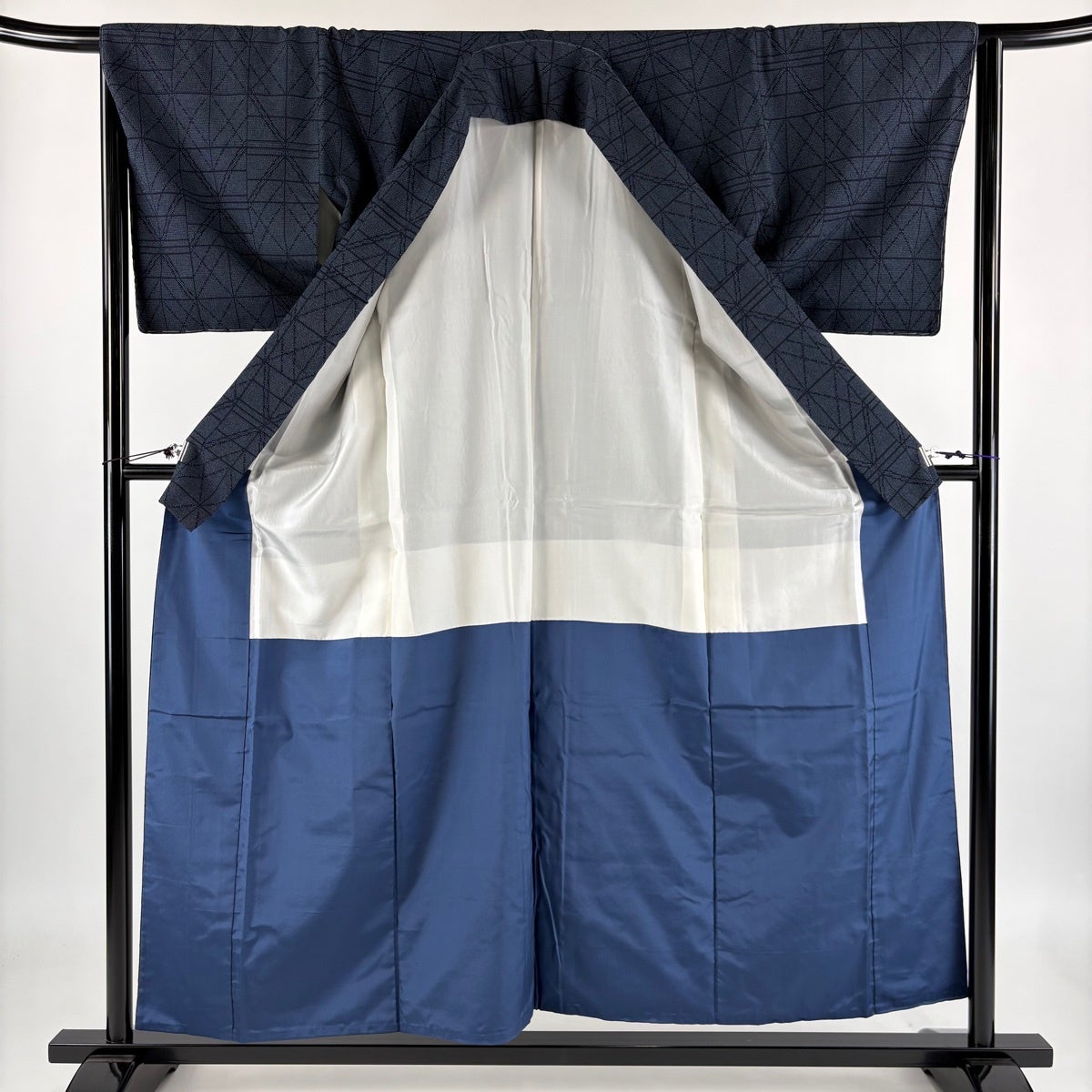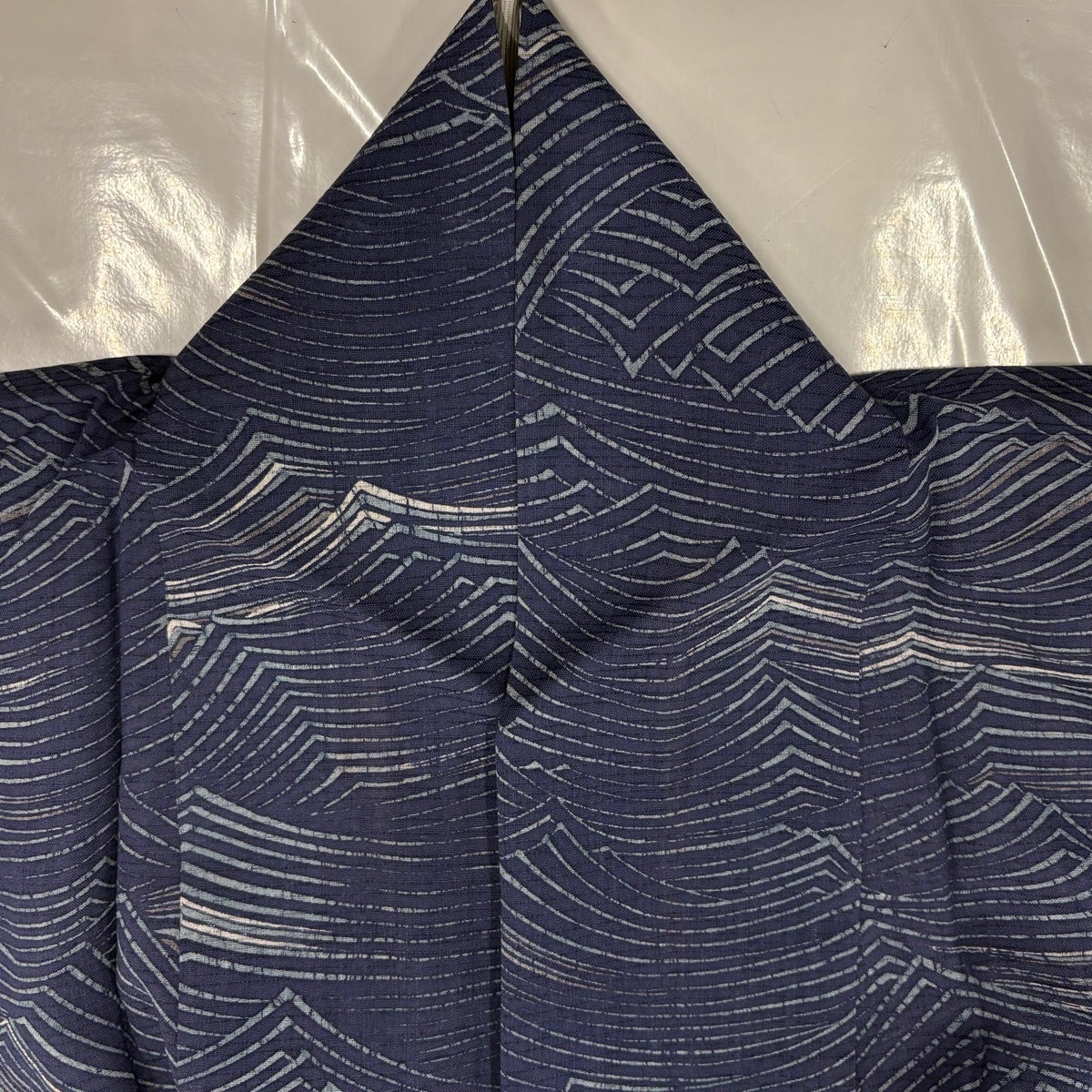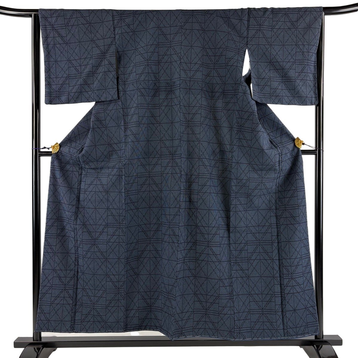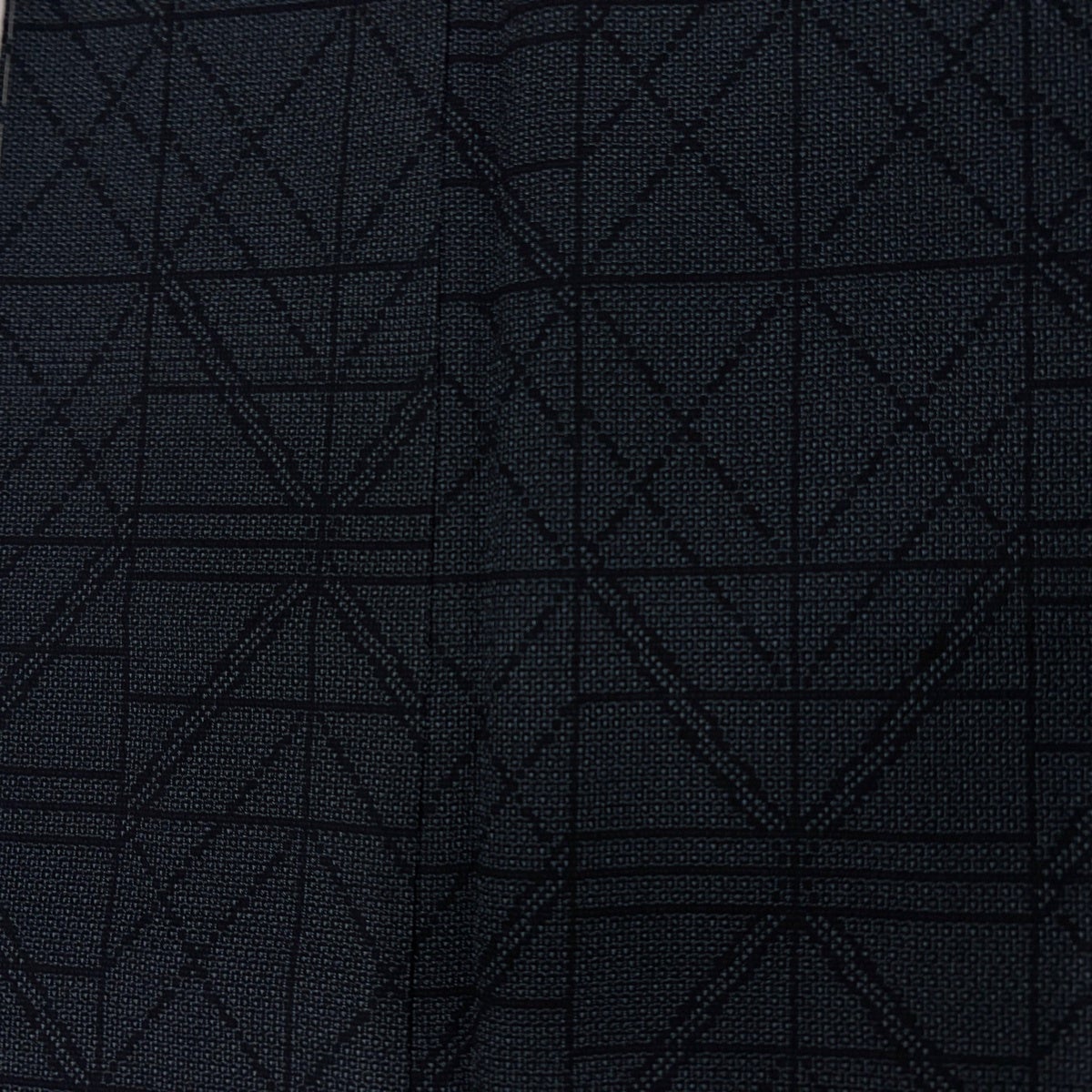【美品】 紬 身丈156cm 裄丈65.5cm M 袷 幾何学 紺色 正絹 秀品