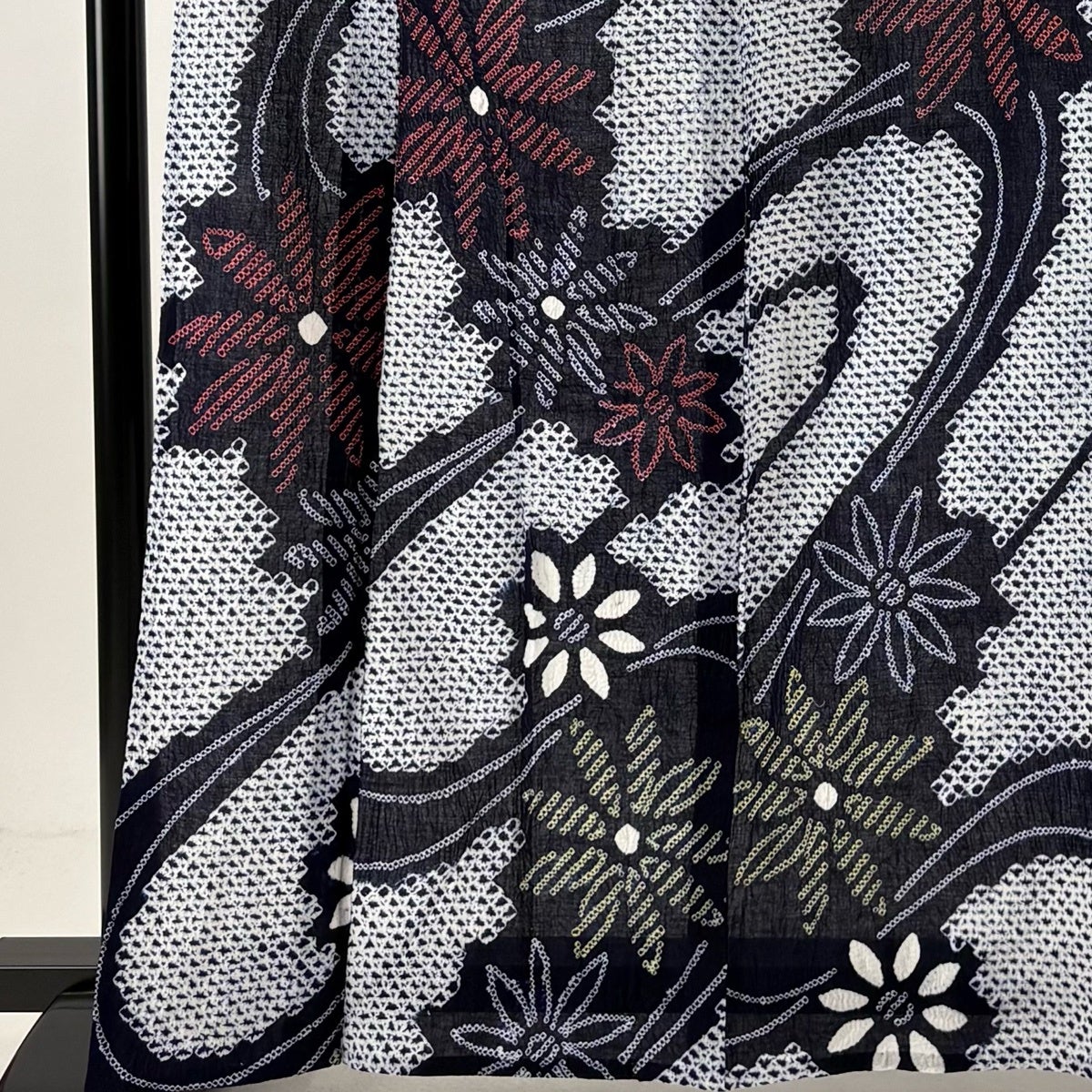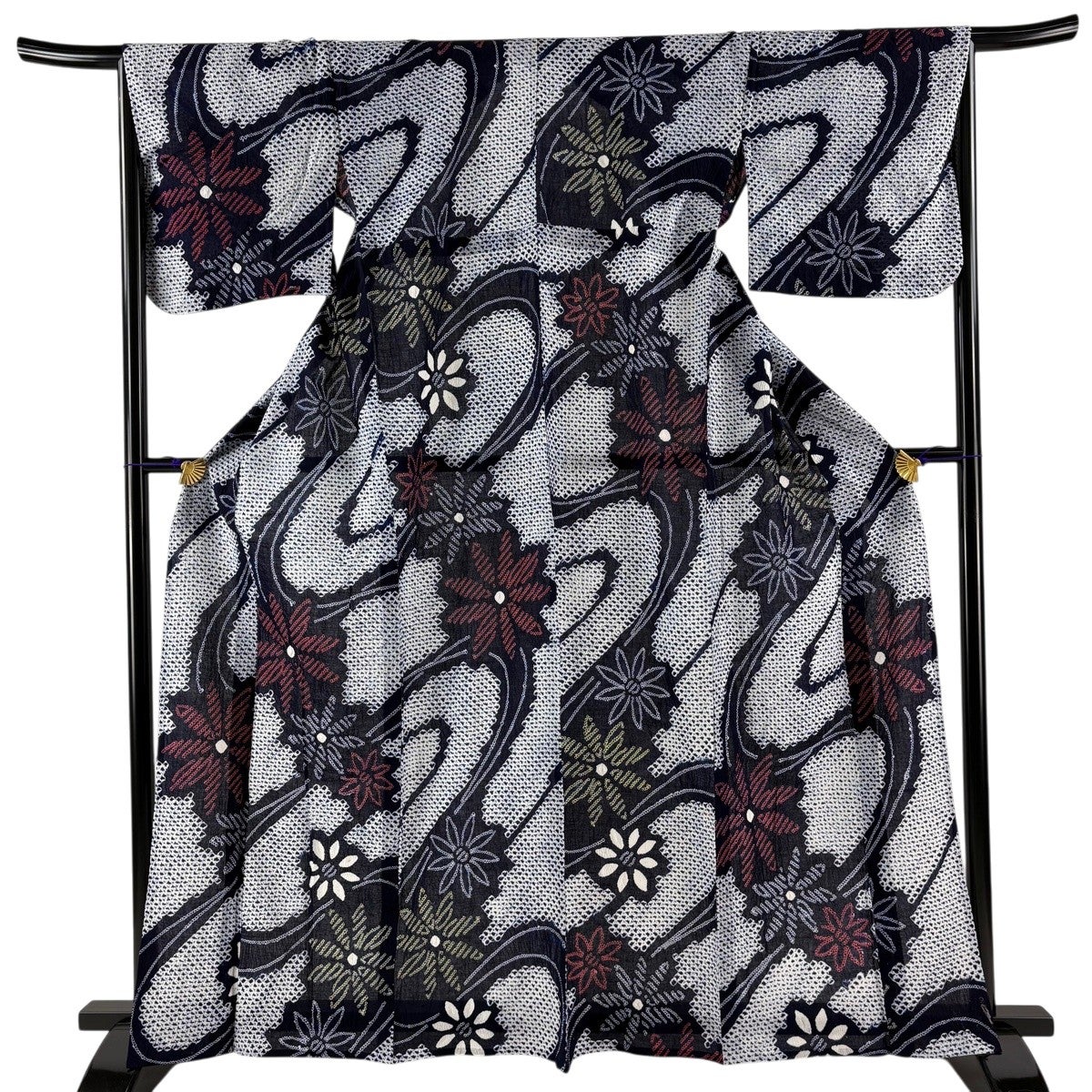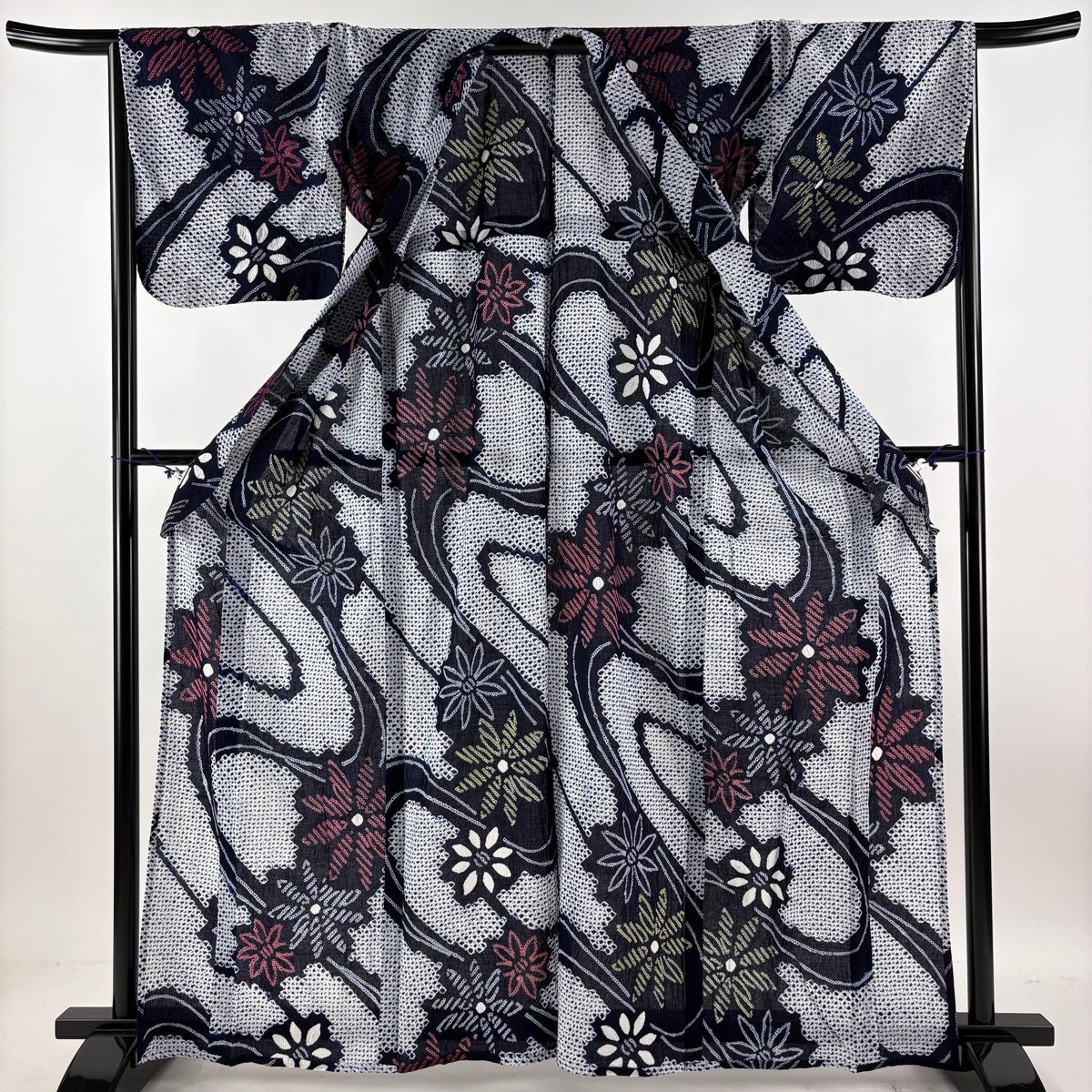 【美品】 浴衣 身丈160.5cm 裄丈67cm M 絞り浴衣 花 紺色 綿 名品