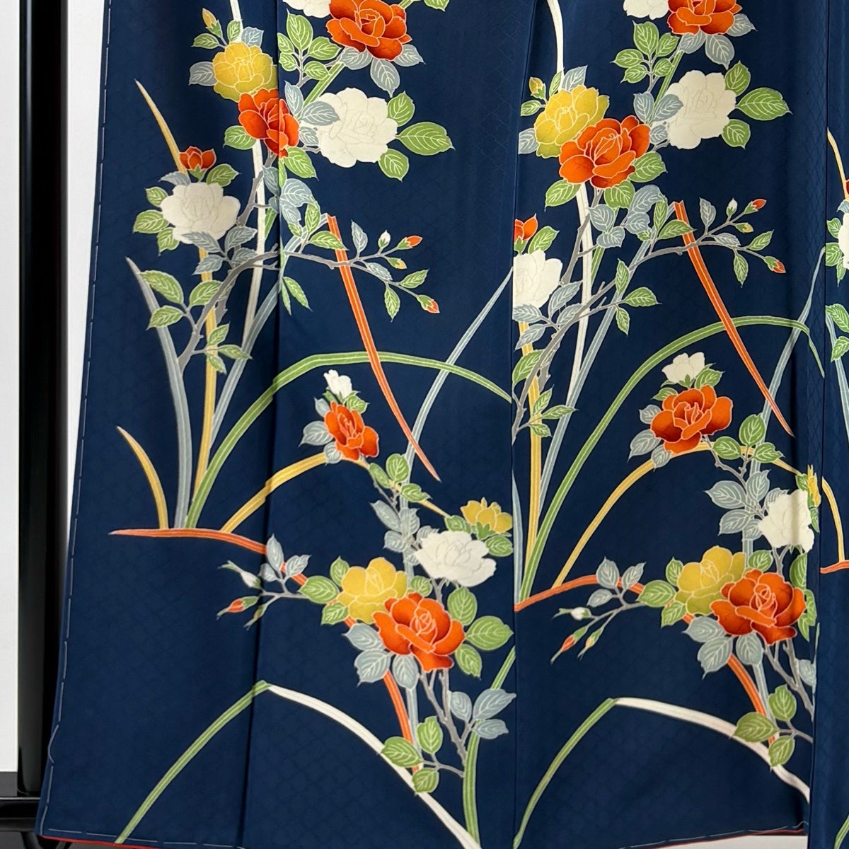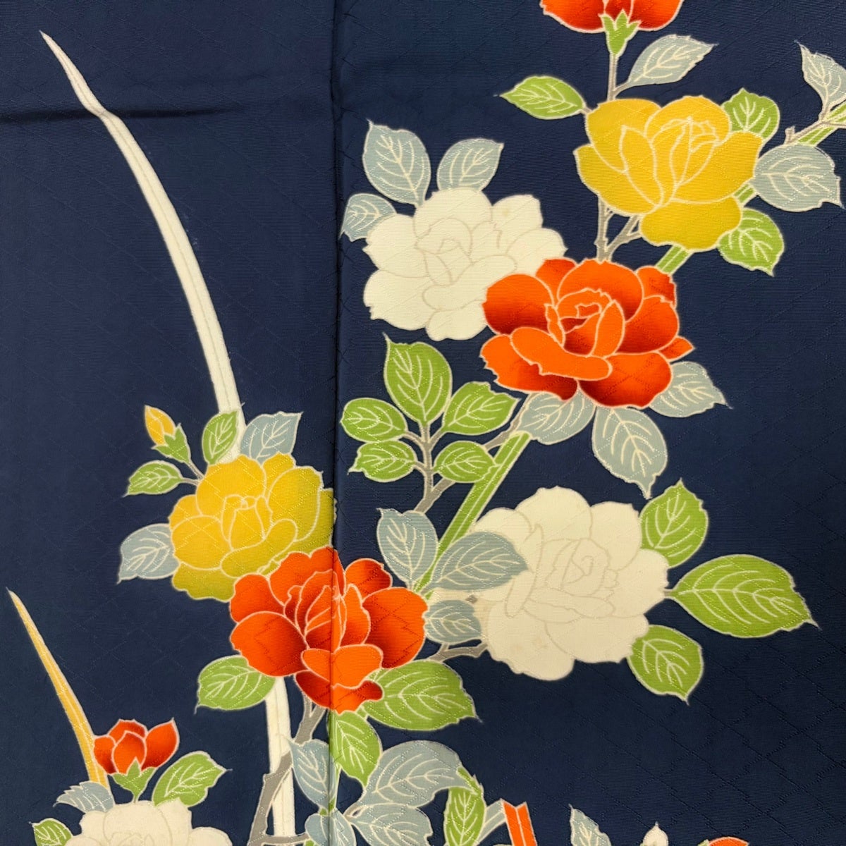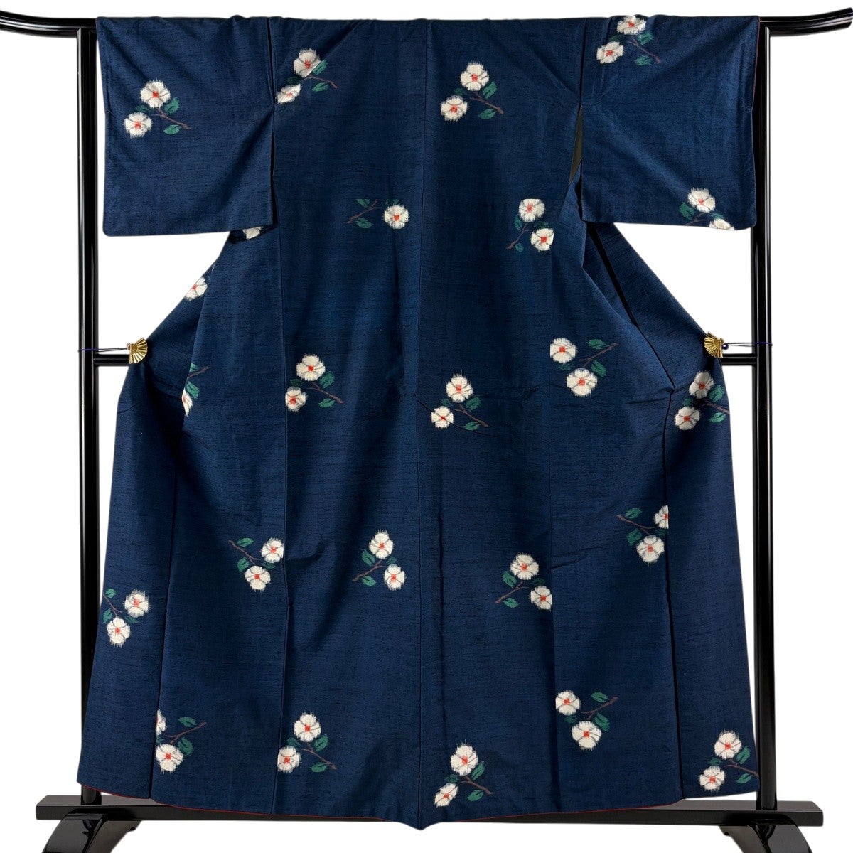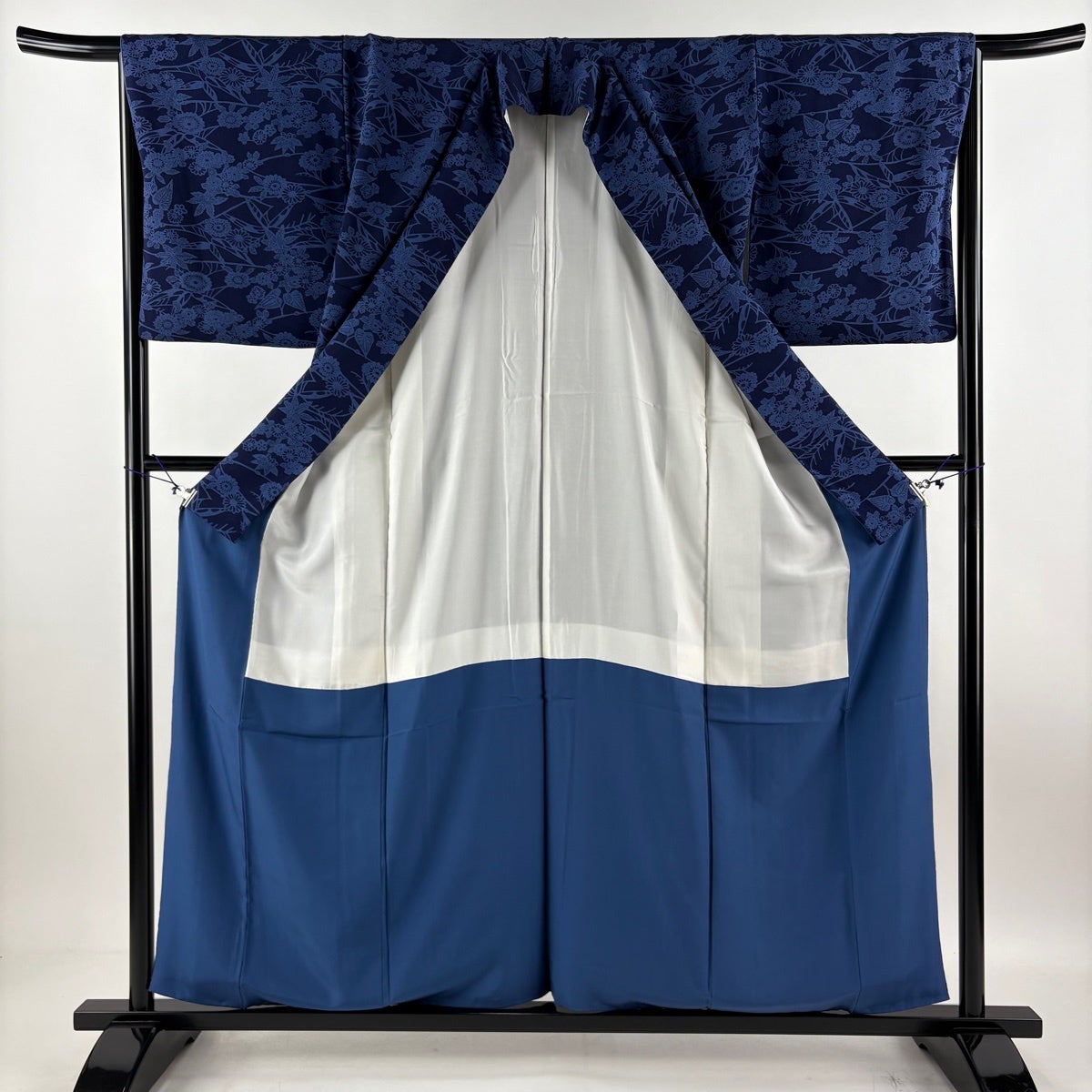 【美品】 浴衣 身丈160.5cm 裄丈67cm M 絞り浴衣 花 紺色 綿 名品