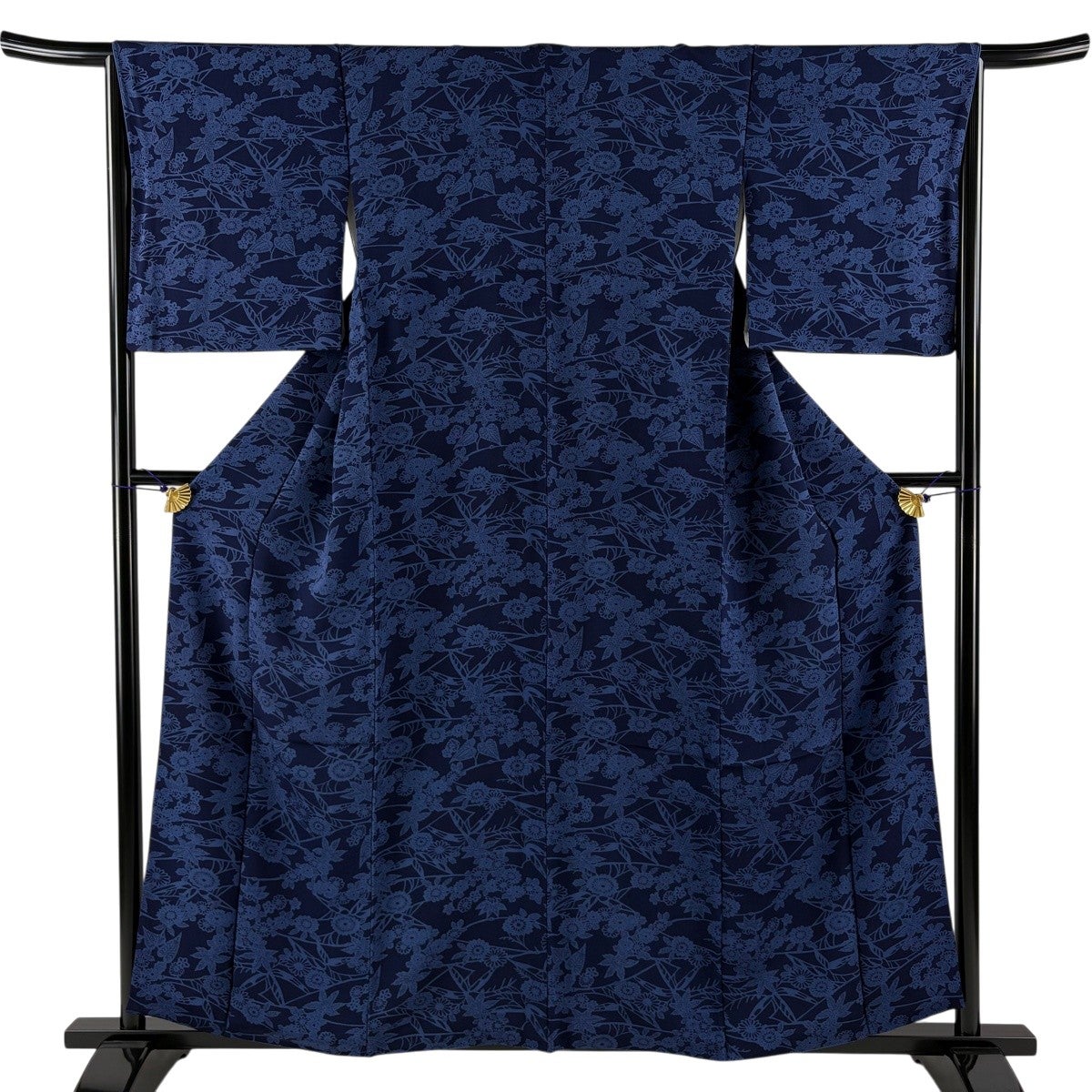 【美品】 浴衣 身丈155cm 裄丈61.5cm S 絞り浴衣 草花 紺色 綿 名品