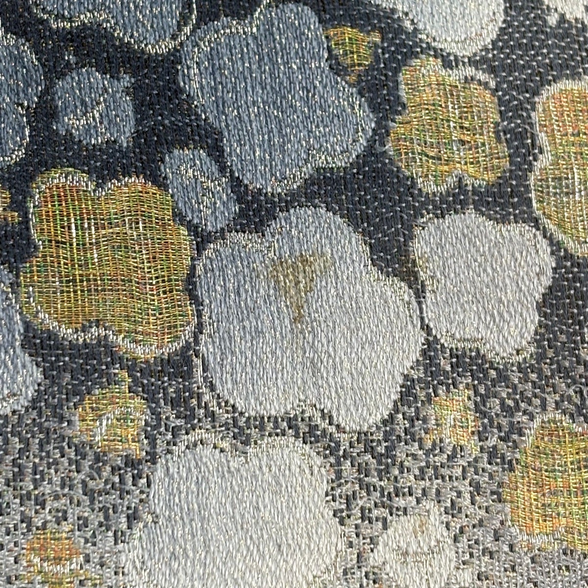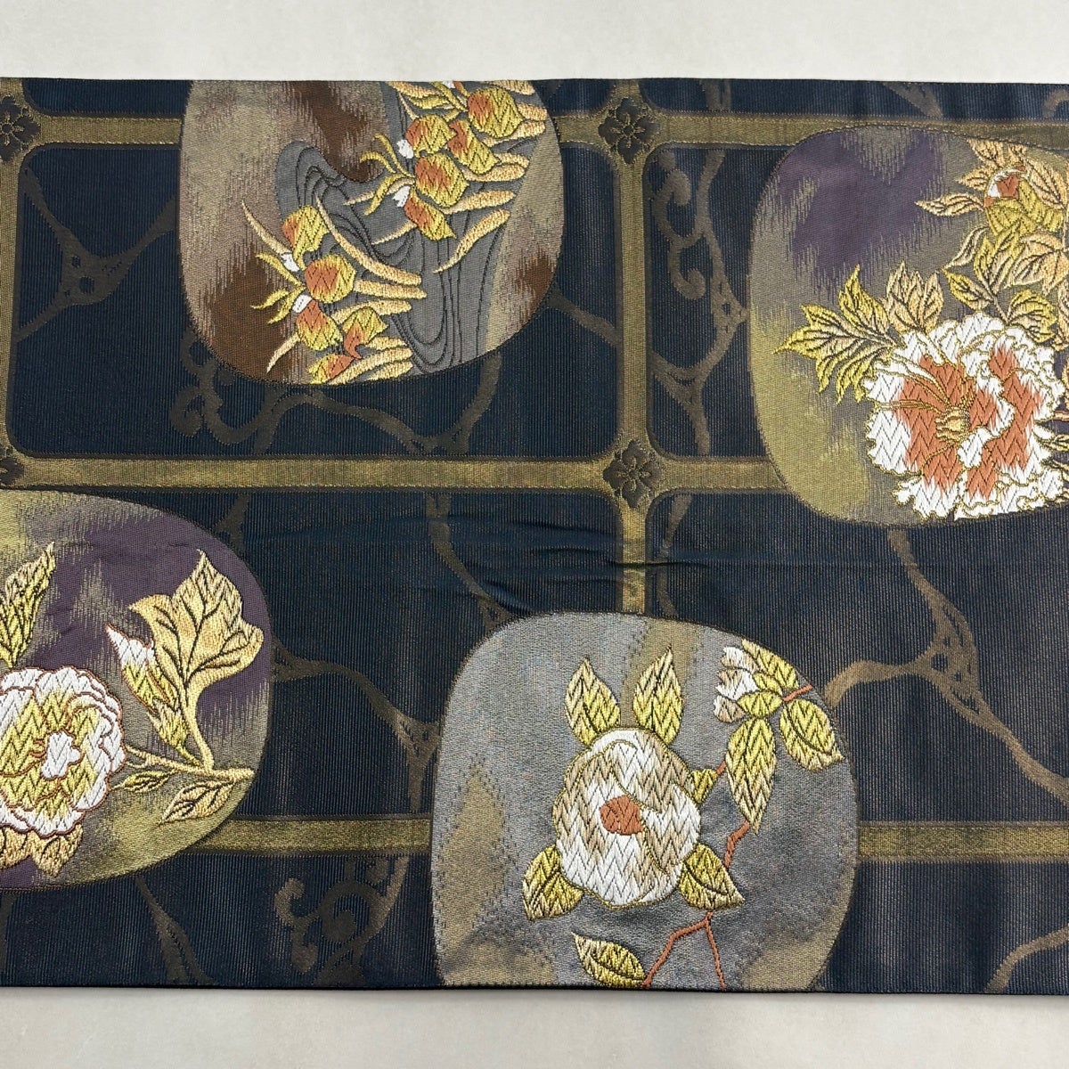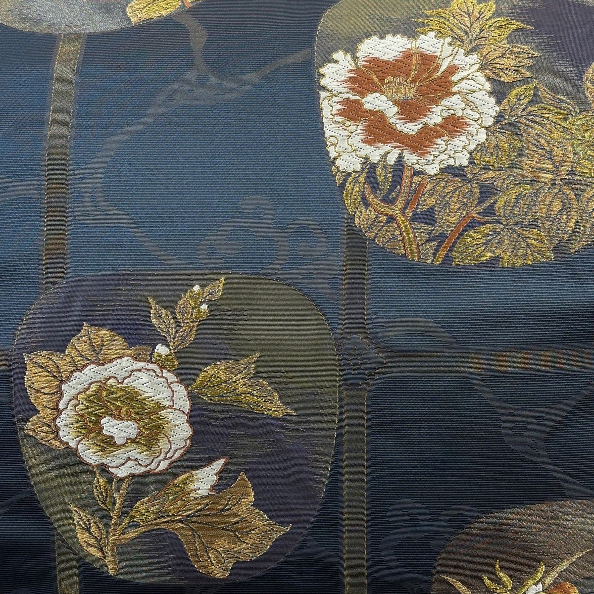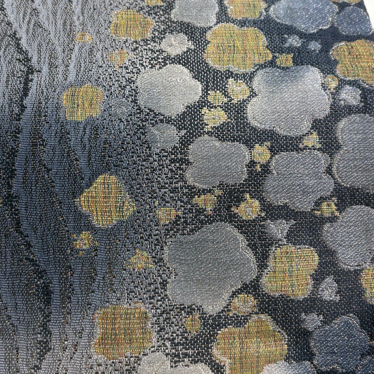 30%OFF 【美品】 袋帯 秀品 扇 桜 唐織 箔 紺色 六通 正絹 K30